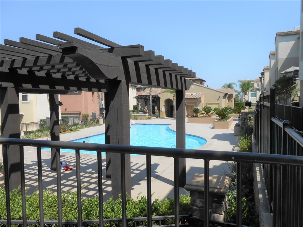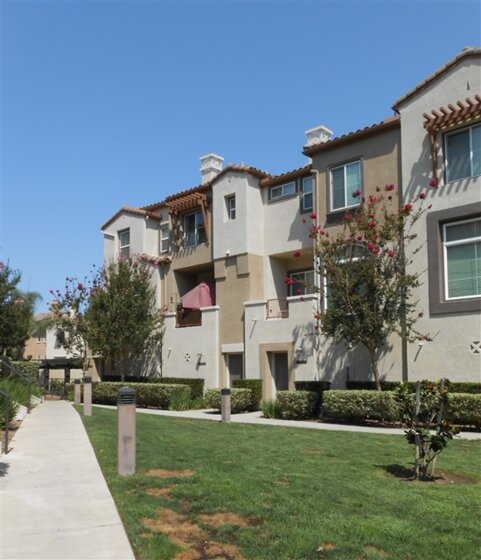 Prime location within easy access of playground, pool & community facilities! Granite counters, wood/laminate floors & fabulous built-in cabinetry in master bedroom. Each bedroom has own bathroom w/shower + half bath just off living room up stairs. There's 1 assigned parking space + single car garage that has deep sink & lots of storage cabinets and space. Tidy balcony patio is great for grilling or just enjoying outdoor space. Community has large pool, spa, fitness center, library, playground & more! [Supplement]: 1) The buildings were painted in 2019 2) Unit's deck resurfaced 6/2020 3) Roof repairs completed 8/2020 4) Home has newer refrigerator, micro & washer 5) Excellent rental 2 blocks from CSUSM w/rent potential up to $2,100 6) One of lowest HOF 92078 7) Pool relined 2019 8) Great fitness room, spa & pool 9) Subject home approximately 100' to amenities 10) Home is priced $12,000 lower than last closed model match. 11) Seller will look at serious offers!