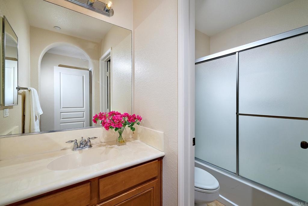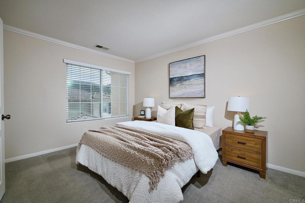 Beautiful turnkey property in the highly desirable gated community of Coronado Ranch! Fantastic floorplan offers an open concept great room highlighted by a center island kitchen with loads of cabinet space and granite countertops. The kitchen flows seamlessly into spacious dining and living areas highlighted by tile and wood floors. Just off the living room is the sunny balcony that makes the perfect spot to enjoy morning coffee. Upstairs is a fabulous primary suite with dual vanities and a large walk in closet. An additional “junior primary suite” offers an attached bathroom and a walk in closet. Other features of the home include an attached 2 car garage, washer and dryer, and central AC. Enjoy resort style amenities including a pool, spa, gym, and tot lot. Ideally located within walking distance to CSUSM, shopping, and dining, this home places you in the heart on San Marcos’ booming development. Explore the vibrant scene at North City with diverse eateries and breweries or take advantage of nearby hiking and biking trails at Double Peak and Discovery Lake. Top rated San Marcos schools. Just a short drive to sandy beaches. Truly the perfect place to call home!