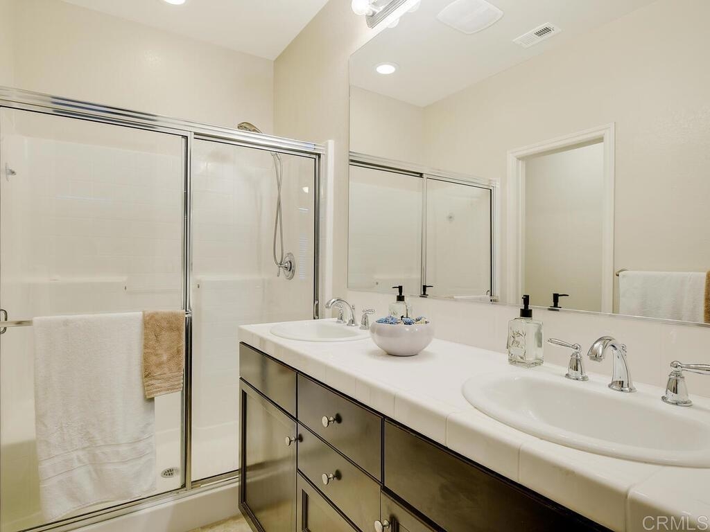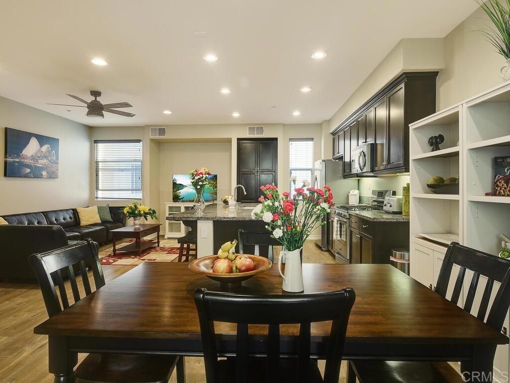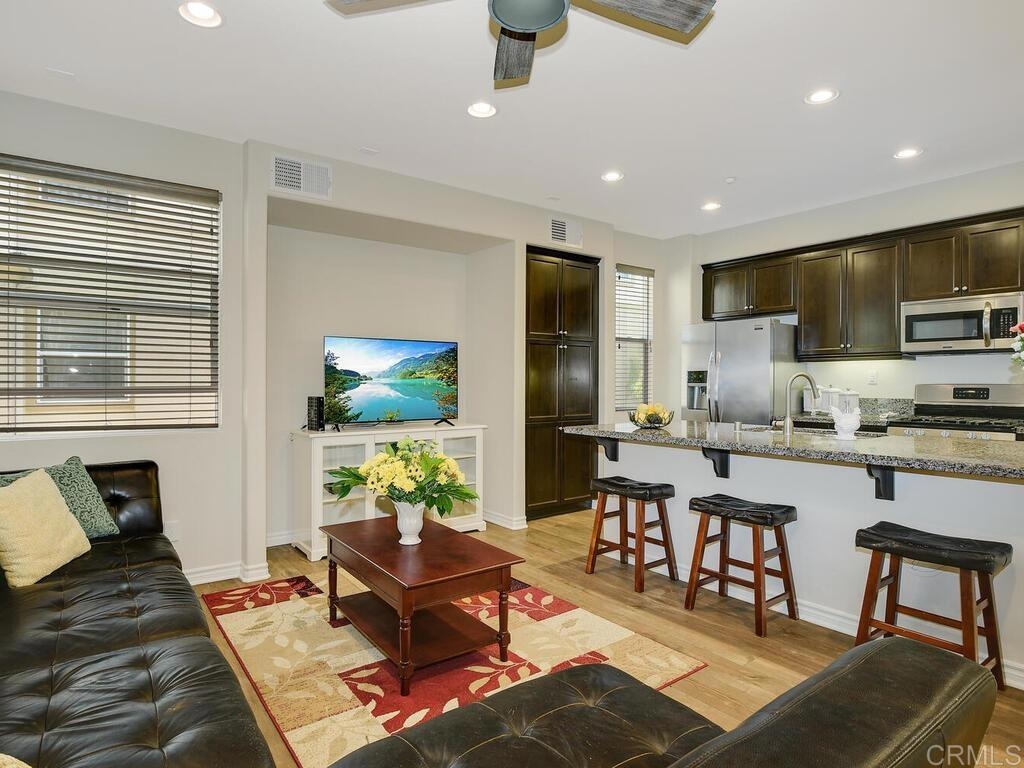 Accepting Back Up Offers! Prime San Diego location Near the LA COSTA RESORT & SPA. Less than 10 miles to Carlsbad Beaches and Village. 3bedrooms + Bonus room, 2.5 baths. Generous kitchen with ISLAND/BREAKFAST BAR, living and dining area, Covered Lanai and 1/2 guest bath on main living, 2nd floor. Indoor laundry conveniently located on the top floor, near bedrooms. Primary en-suite is spacious with decorative SLIDING BARN DOOR separating the primary bathroom. The 2 Guest Bedrooms are bright and roomy! The 2nd full bathroom nearby has tub/shower. 2car attached garage with ceiling racks offering extra storage. BONUSROOM/OFFICE on 1st floor accessing entry and garage. Freshly painted and ready for the next owners to create their perfect environment. The Magnolia community offers a POOL/SPA, picnic & BBQ area. Tropical landscaping and ocean breezes allows you to enjoy what Southern California is all about.