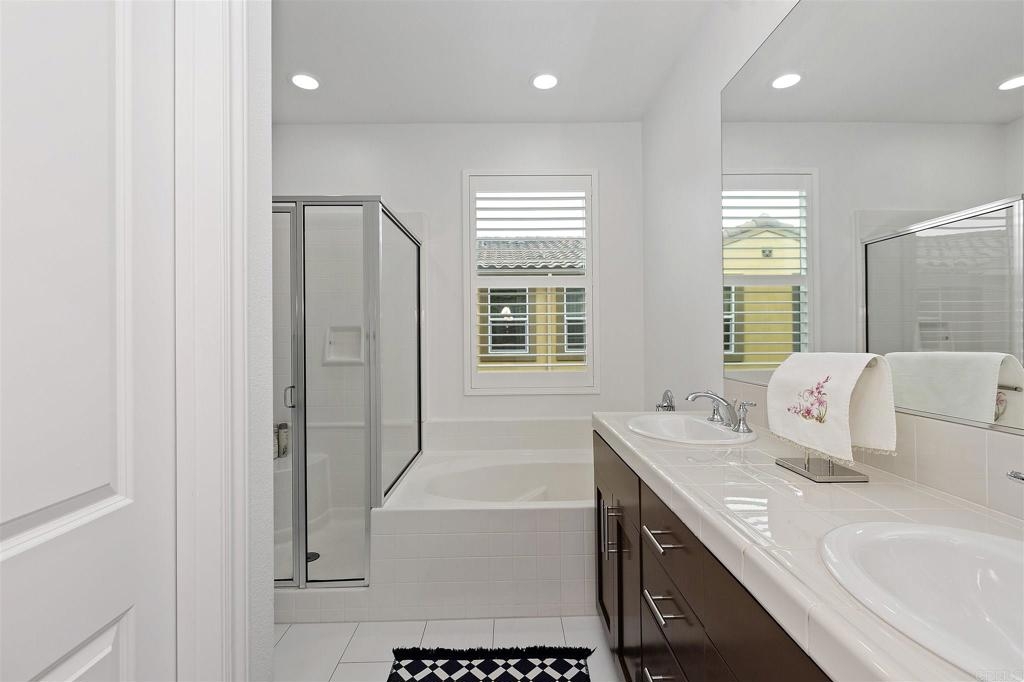 Immaculate, truly turnkey end unit with top upgrades! This popular Plan 9 is the largest floor plan in Magnolia @ Old Creek Ranch (1649 est sq ft) with highly desirable, private location. Featuring 3Bd +Office (opt. 4th Bed), 2 full Baths, 2 half & beautiful upgrades incl. gourmet kitchen w/upgraded cabinetry, granite countertops, large center island, walk-in pantry, covered balcony, tile & premium carpet flooring, ceiling fans and plantation shutters. This property has a two car garage with extension for extra storage, A/C, newer fridge as well as washer and dryer, and the HOA includes water! Move in ready! The Magnolia community offers resort-style amenities including pool, spa, playground, covered bbq area with tables & more, with a central location close to shopping and restaurants, and is zoned for top schools including Carrillo Elementary, San Elijo Middle School and San Marcos High School. Enjoy the local community trails for biking and hiking! Room dimensions & sq footage are approximate, per builder & assessor`s record. Mello-roos is estimated. All MLS & marketing info is approximate & not guaranteed.
