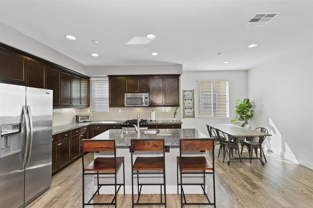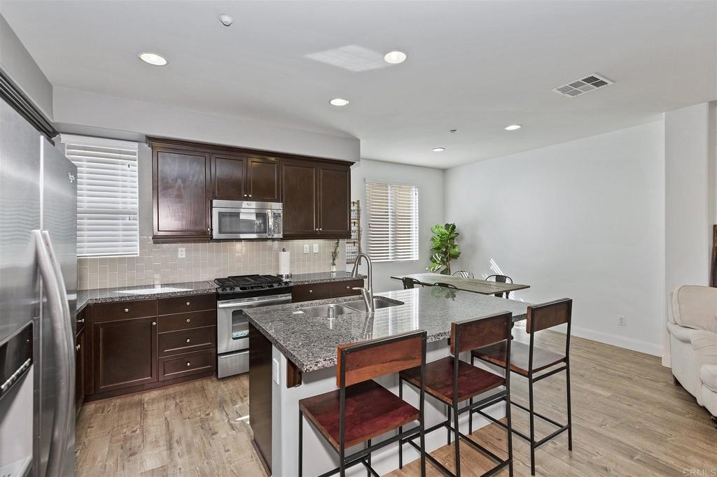 Welcome to Magnolia at Old Creek Ranch. This beautiful townhome offers a 1st floor bonus room (Den? Office? Exercise Room?) & 2-car attached garage with electric car hook-up. You'll love entertaining & relaxing in the spacious open-plan living area & on the covered balcony. The kitchen offers a large island, granite counters, beautiful dark-wood cabinetry & stainless appliances. All 3 bedrooms are on the top floor with a 2nd full bath & laundry; main bedroom has walk-in closet, ensuite bath with dual sinks & walk-in shower. Enjoy the pool, spa & BBQ area nearby or head to the Carlsbad beaches. You'll find plenty of shopping & dining options in both San Marcos & Carlsbad.