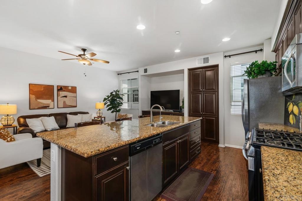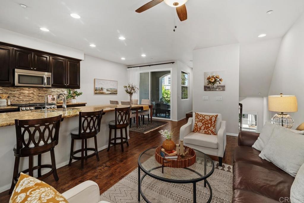 Located on the border of San Marcos & Carlsbad, this beautifully maintained three-story condo offers 1,419 square feet of modern living space, including three bedrooms, two and a half bathrooms, and a flexible bonus room on the entry level—ideal for a home office, gym, or guest space. The main living level features stunning laminate flooring with a warm, wood-look finish that complements the open-concept design. At the heart of the home is a spacious, upgraded kitchen with sleek cabinetry, generous counter space, newer appliances, and a large center island with bar seating. The kitchen flows seamlessly into the dining and living areas, with access to a private balcony—perfect for enjoying morning coffee or relaxing at the end of the day. Upstairs, you’ll find three well-appointed bedrooms with upgraded premium carpet, a comfortable primary suite, as well as an upstairs laundry area for added convenience. The home features an attached two-car garage with additional storage space. Not just a home, this lovely neighborhood is a true community where you can enjoy resort-style amenities including a pool, spa, BBQ area, firepit, and park-like green spaces. With easy access to major freeways, top-rated schools, shopping, and just a short drive to several beaches, this home offers comfort, convenience, and exceptional value in one of North County’s most desirable neighborhoods.