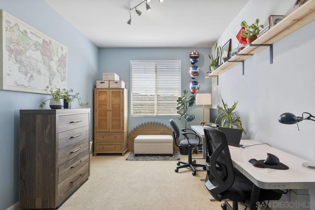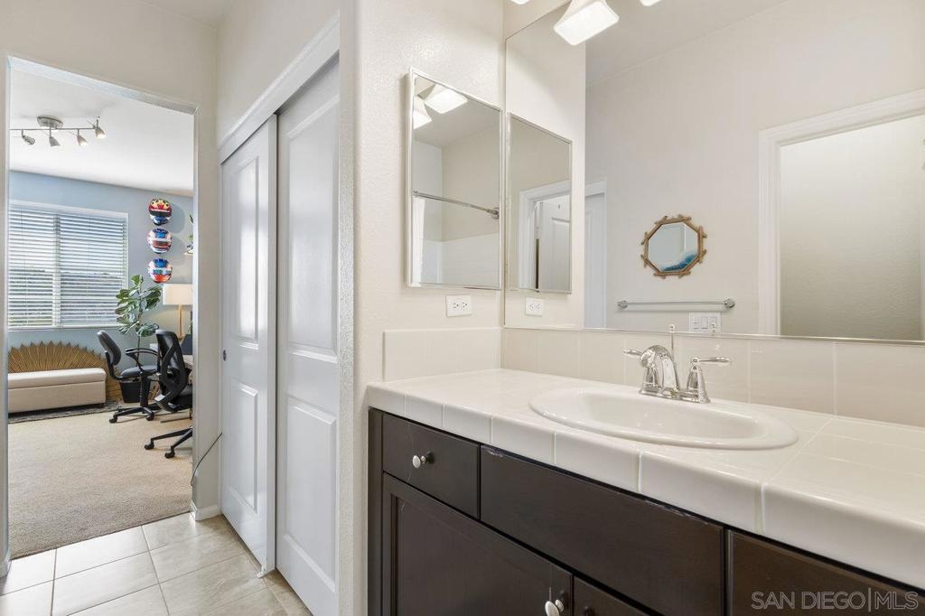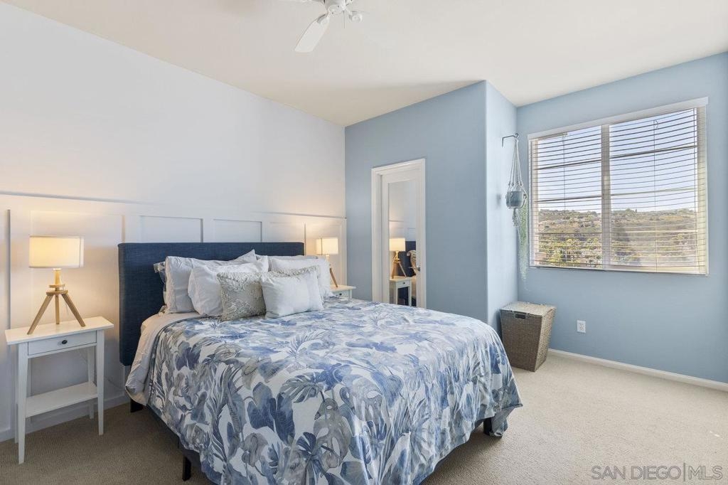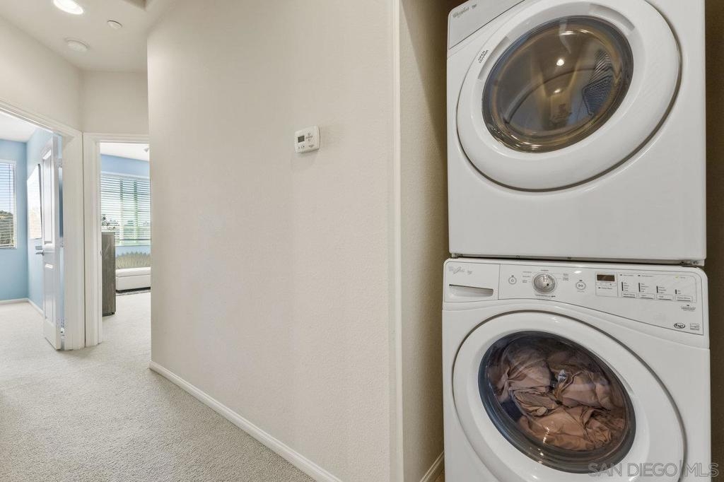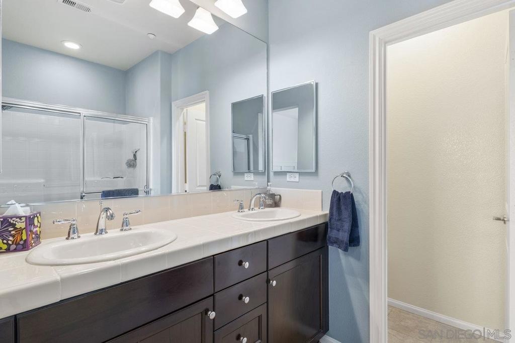 Welcome to 2513 Antlers Way, a beautifully upgraded 2-bedroom, 2.5-bathroom townhome in the desirable Magnolia community of Old Creek Ranch, San Marcos. This rarely available, exterior perimeter location within the community offers a west-facing unit that provides privacy, abundant natural light, and stunning sunset views. With 1,173 square feet of open living space, the home features a modern kitchen with granite countertops, stainless steel appliances, and a breakfast bar, all flowing into the spacious living area. The private balcony is perfect for enjoying evening sunsets. Upstairs, both bedrooms have their own ensuite bathrooms, and the in-unit washer and dryer are conveniently located on the same level. Additional features include tile flooring, recessed lighting, and central air conditioning. The attached two-car garage offers plenty of storage space. Enjoy resort-style amenities, including a pool, spa, BBQ area, playground, and walking trails. The HOA covers water. Located just minutes from San Elijo Hills Town Center, award-winning schools, parks, local trails, and with easy access to major freeways and some of the best beaches in Southern California. Don’t miss the opportunity to own one of the best-located homes in the community!