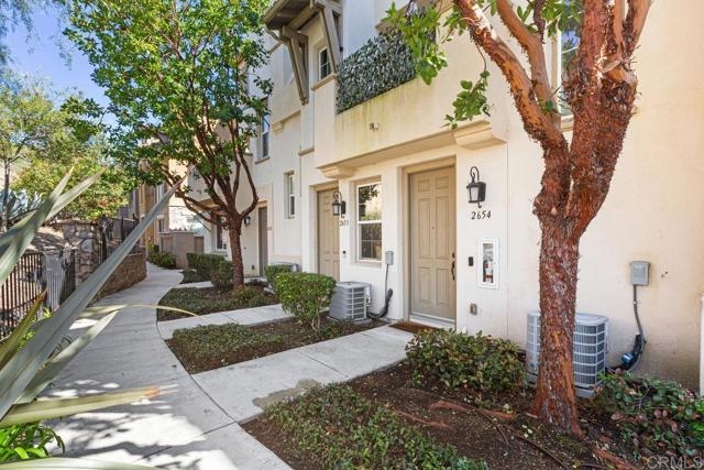 The newer community of Magnolia at Old Creek Ranch is a clean, convenient, and contemporary one with resort-style amenities. Located right on the San Marcos / Carlsbad corridor, Magnolia is centrally located near several quality dining and shopping center options. This neighborhood is defined by its beautiful heated lap pool and spa, mature tropical landscaping, and a modern building exterior. This home features two primary bedrooms, each with their own ensuite full bathrooms upstairs. Neutral colors and soft tones throughout. The main living area flows well with 9' ceilings and solid laminate wood flooring. Kitchen has a large peninsula with seating, a useful pantry area, and stainless Whirlpool appliances. The area flows well to the outdoor 10' x 5' patio balcony. No housing directly across, so this location offers some view of the local natural terrain and wildlife. Huge tandem 2 car garage measures 43' deep! No one above or below this unit. This entire area is surrounded by scenic walking/running trails and is zoned for award winning schools. With a location that's tough to beat, come put your own touches here to make this your perfect home.