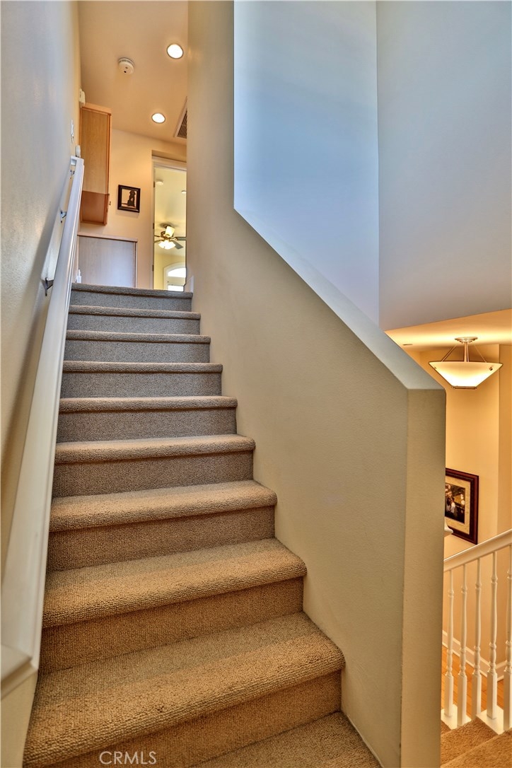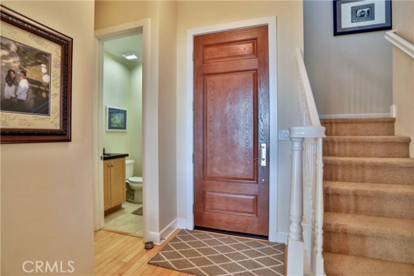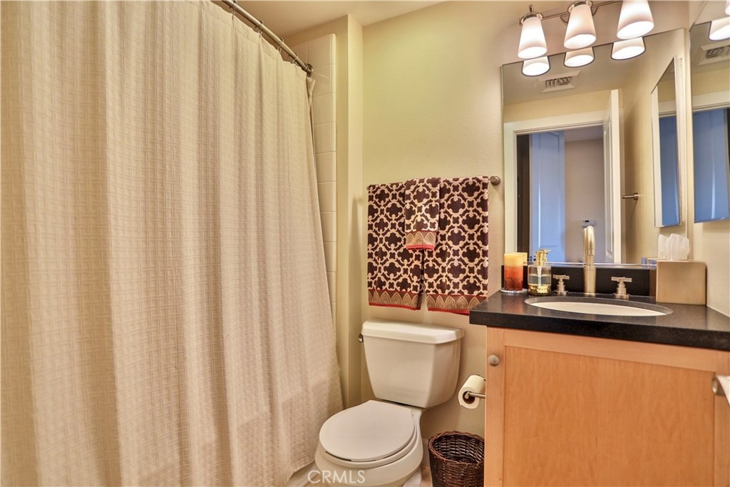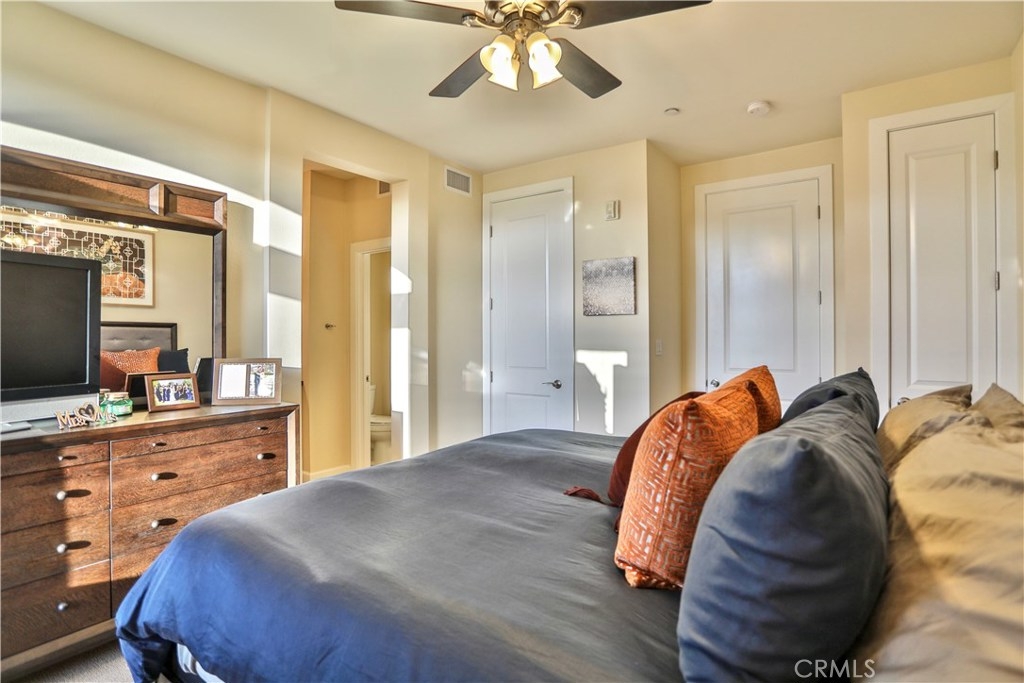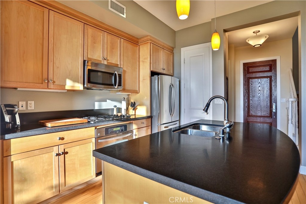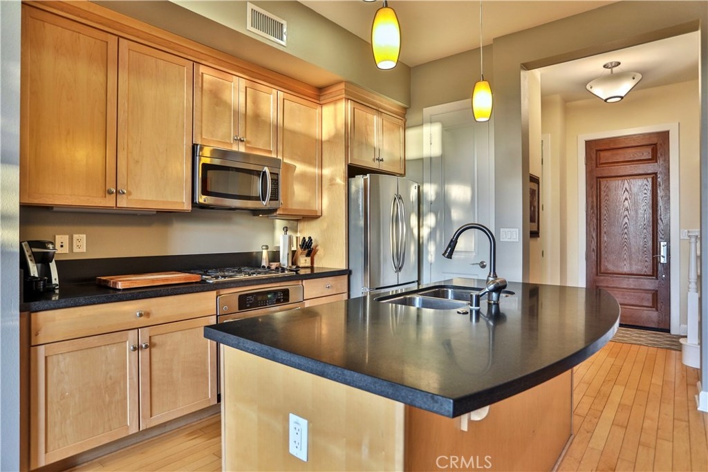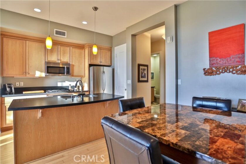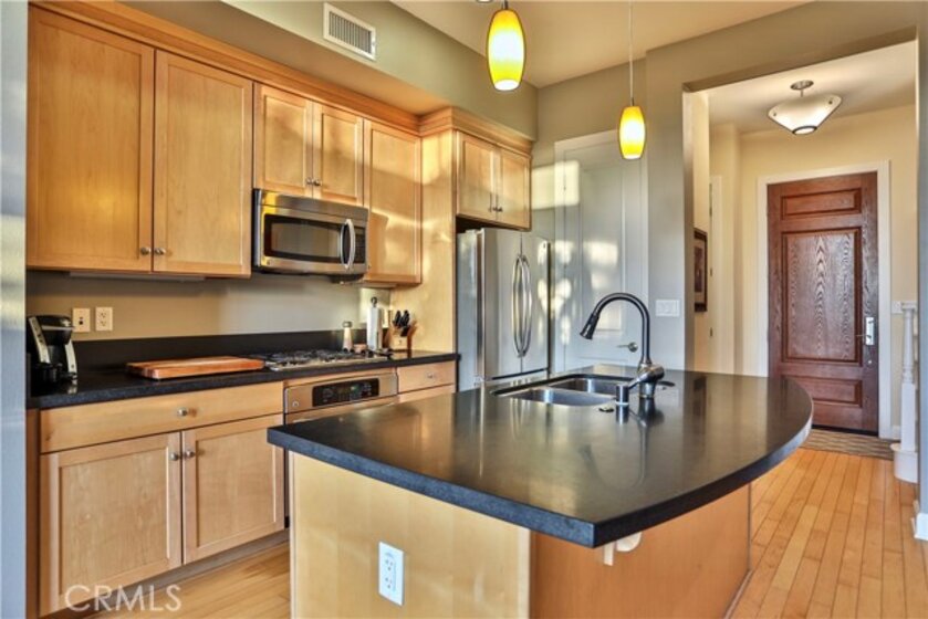 Rarely available 2 bdr. condo at MarketWalk! Centrally located at the heart of San Elijo town center, a short walk downstairs to dining, shopping, the park, and other amenities. Residence features include stone counter tops, stainless steel appliances, hardwood flooring, upgraded designer carpeting, and Central Air and Heat. The main floor living area offers an open layout, gourmet kitchen w/spacious island, dining and living room with elegant french doors exiting to a private balcony affording a view to some beautiful sunsets. The upper level features a master suite and guest bdr with full bath and balcony. There is also the added convenience of an upstairs washer and dryer area. This is a unique property in an exceptional location. Come see it today!