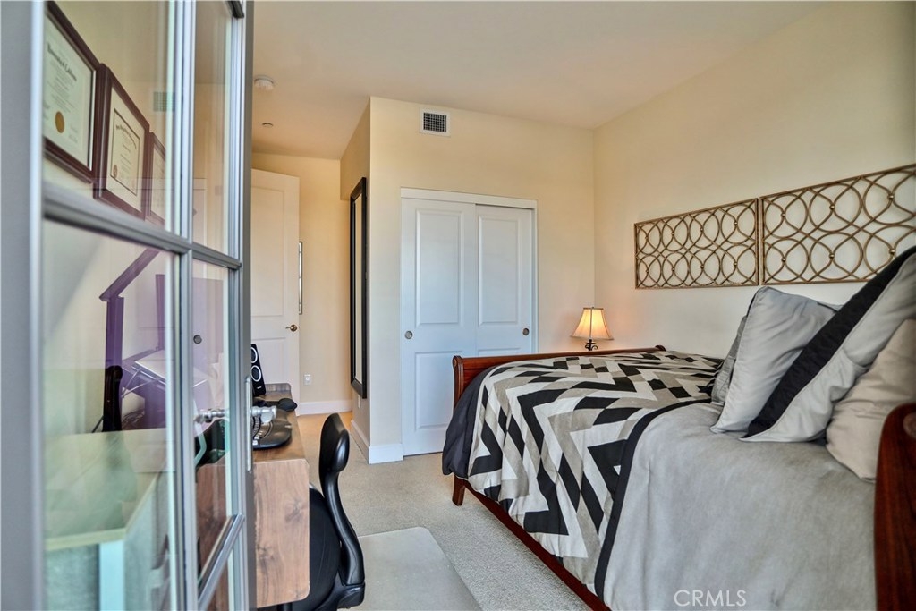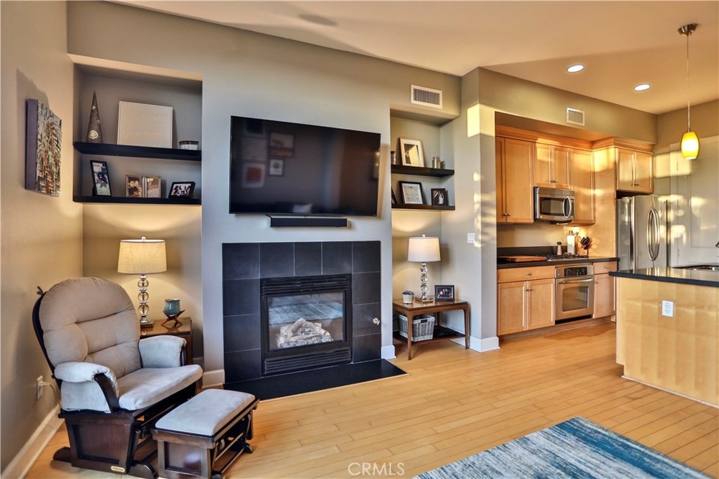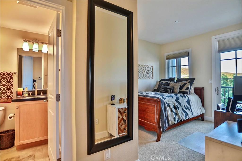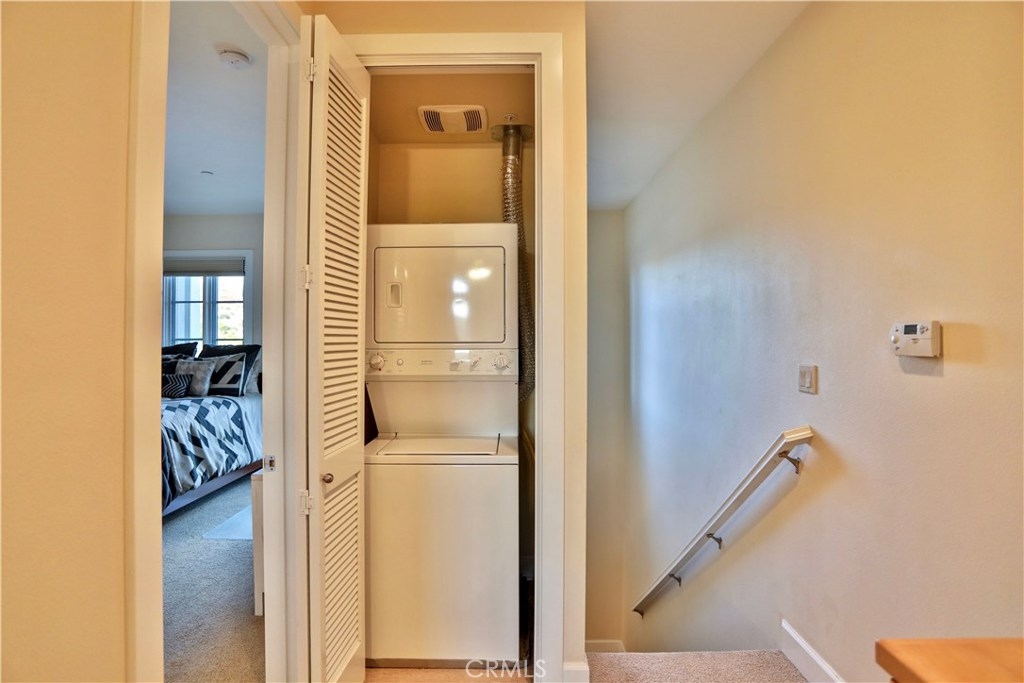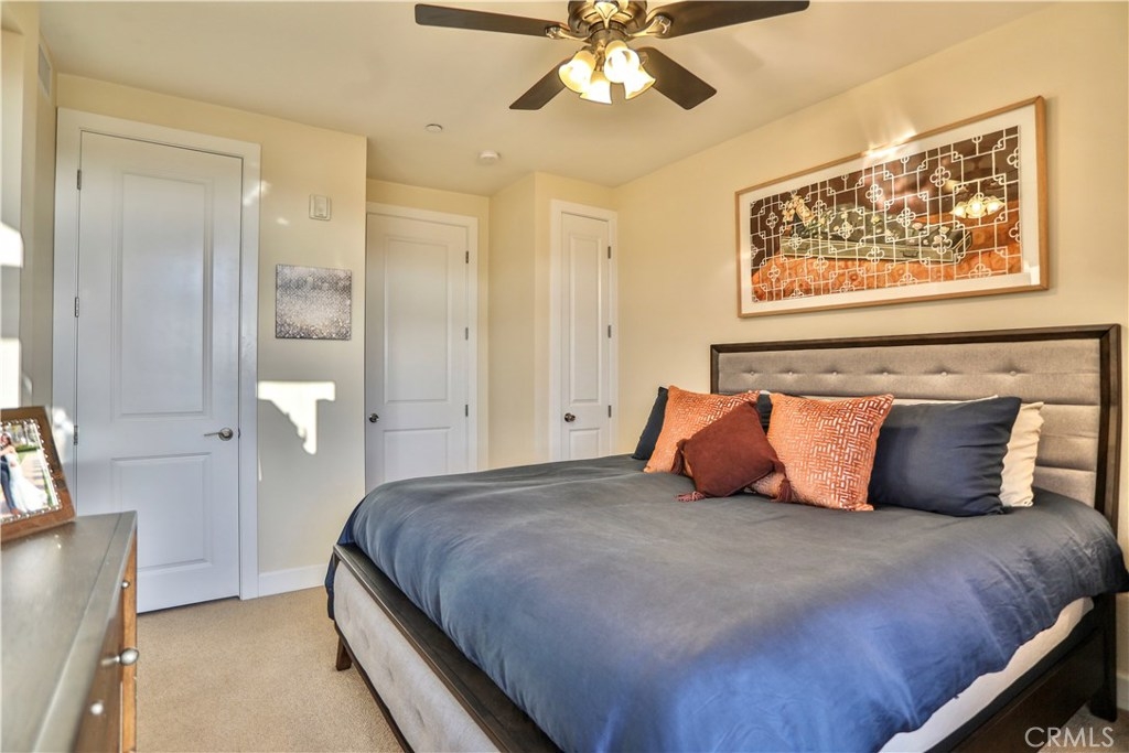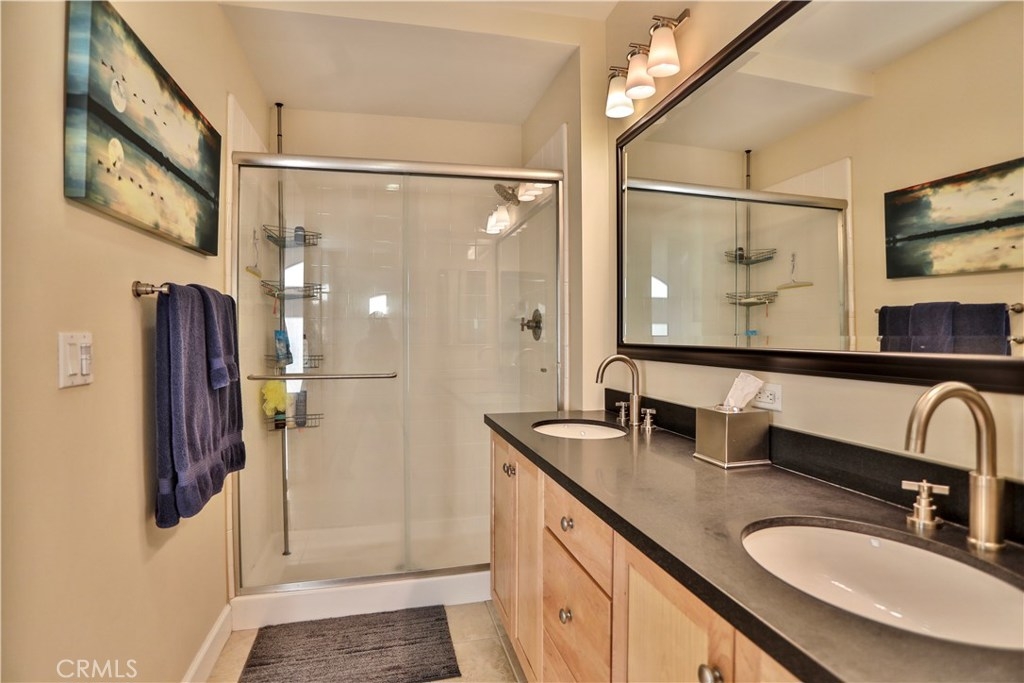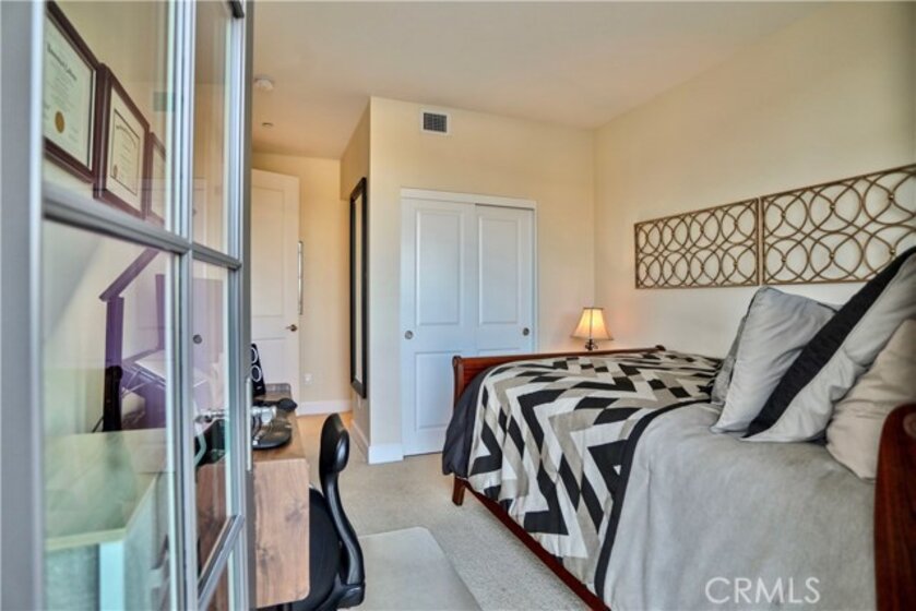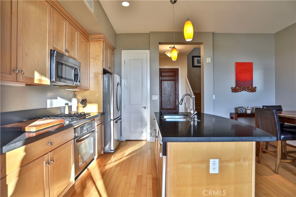 Rarely available 2 bdr. condo at MarketWalk! Centrally located at the heart of San Elijo town center, a short walk downstairs to dining, shopping, the park, and other amenities. Residence features include stone counter tops, stainless steel appliances, hardwood flooring, upgraded designer carpeting, and Central Air and Heat. The main floor living area offers an open layout, gourmet kitchen w/spacious island, dining and living room with elegant french doors exiting to a private balcony affording a view to some beautiful sunsets. The upper level features a master suite and guest bdr with full bath and balcony. There is also the added convenience of an upstairs washer and dryer area. This is a unique property in an exceptional location. Come see it today!