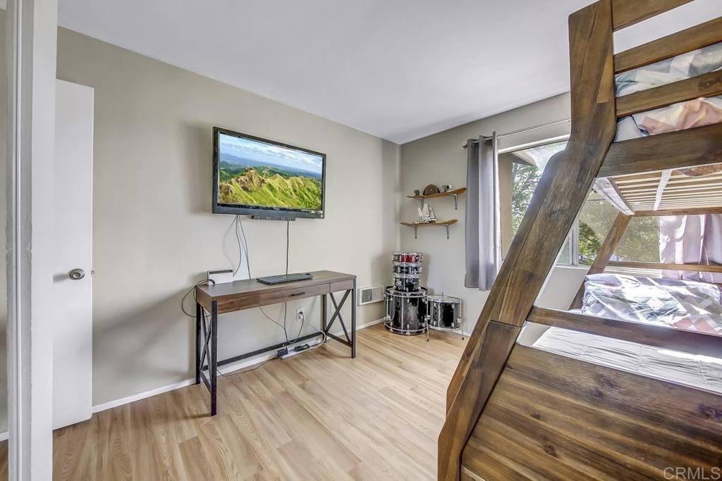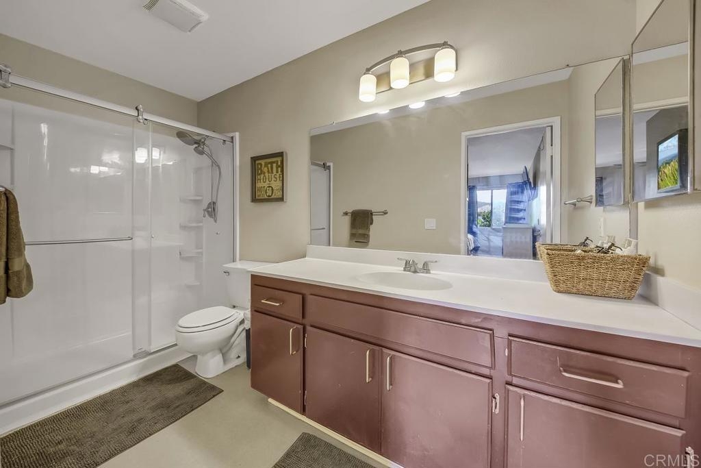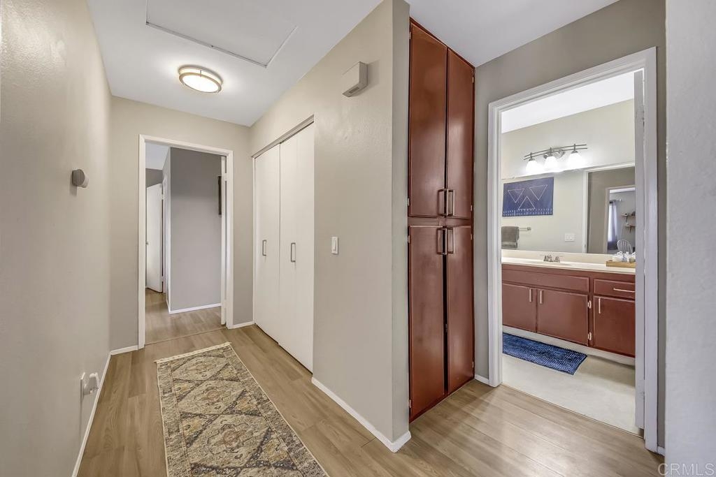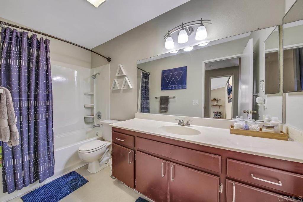 Just in time to fall in love! Welcome to Mission Park. Come settle into this top-floor 2 bedroom 2 bath condo in the heart of San Marcos and make it your own. It's easy to appreciate the easy-flow floor plan with a large living room with private covered balcony, dining space immediately adjacent to the kitchen, and nicely sized bedrooms, each with its own bathroom. Enjoy a generous amenity list that includes (full sized!) in-home laundry, community club house, gym, tennis courts, pool, spa, play areas, and abundant parking for guests. This home is conveniently located just a few minutes off of 78, 15 miles to north county beaches, 2 miles to CSU San Marcos, and within 7 miles to just about all major retail shopping amenities. Springboard into homeownership, or add to your investment portfolio with this incredible opportunity!