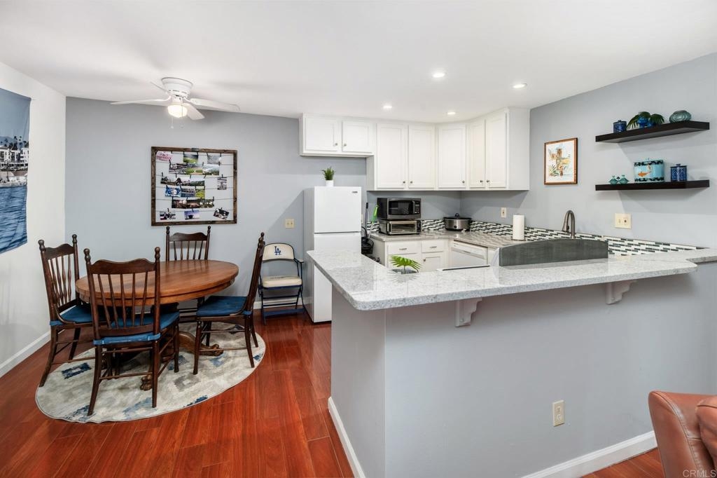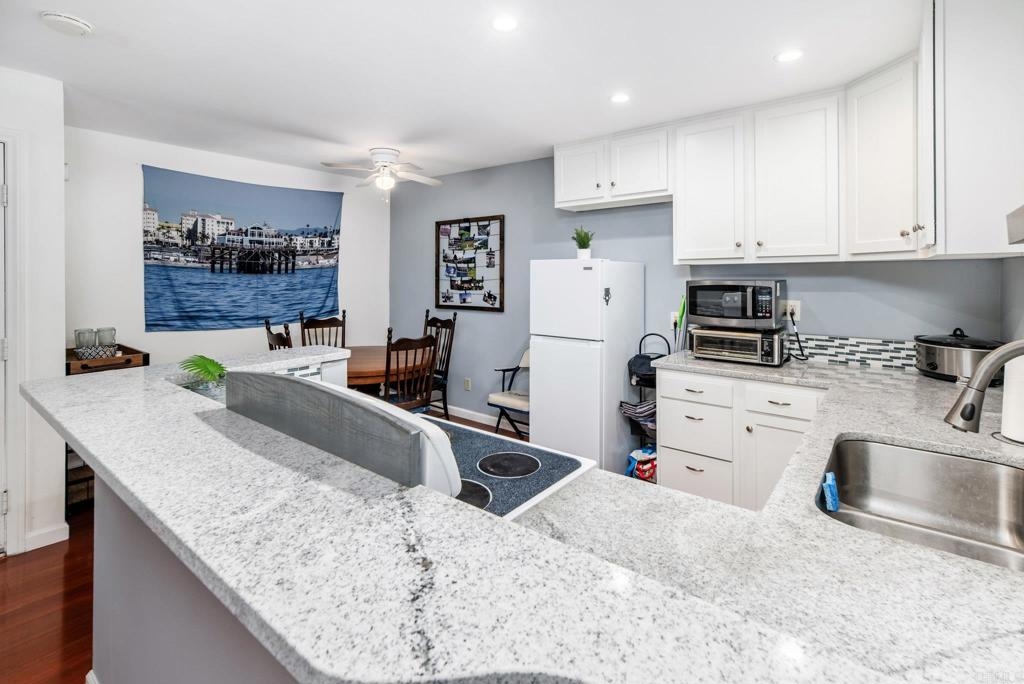 Seller offering either 5k toward closing cost credit or a 2/1 buy down with a full price offer! Don’t miss this opportunity! It doesn't get any better than this upper Corner Unit in Mission Park with Updated Kitchen, baths and many upgrades through out. Welcome to this bright and airy 2-bedroom, 2-bath upper-level corner unit in the desirable Mission Park community. This 940 SF condo features a freshly renovated kitchen that’s been opened up for seamless flow into the living room, complete with hardwood flooring in the kitchen, dining, and living areas. Fresh tile in both bathrooms. Newer dual pane windows! A cozy fireplace (unknown condition) and private balcony add charm and comfort. The remodeled kitchen features newer cabinetry, raised ceiling, granite countertops, tile backsplash, updated sink and faucet. Both spacious bedrooms are filled with natural light and feature plush carpet, which continues into the hallway for added comfort. The primary bathroom includes a newer toilet, tile flooring, and updated plumbing connections. Both bathrooms feature reglazed tubs, and the secondary bath will have brand-new tile installed prior to close of escrow. Additional highlights include ceiling fans in the dining area and both bedrooms, full-size in-unit laundry, and a generously sized balcony with a storage closet. Enjoy resort-style living with community amenities including a swimming pool, gym, BBQ area, electric vehicle charging stations, and well-maintained grounds. HOA dues also cover exterior maintenance, insurance, pest control and water, sewer and trash Conveniently located near shopping, dining, and freeway access—this move-in ready home offers comfort, style, and value.