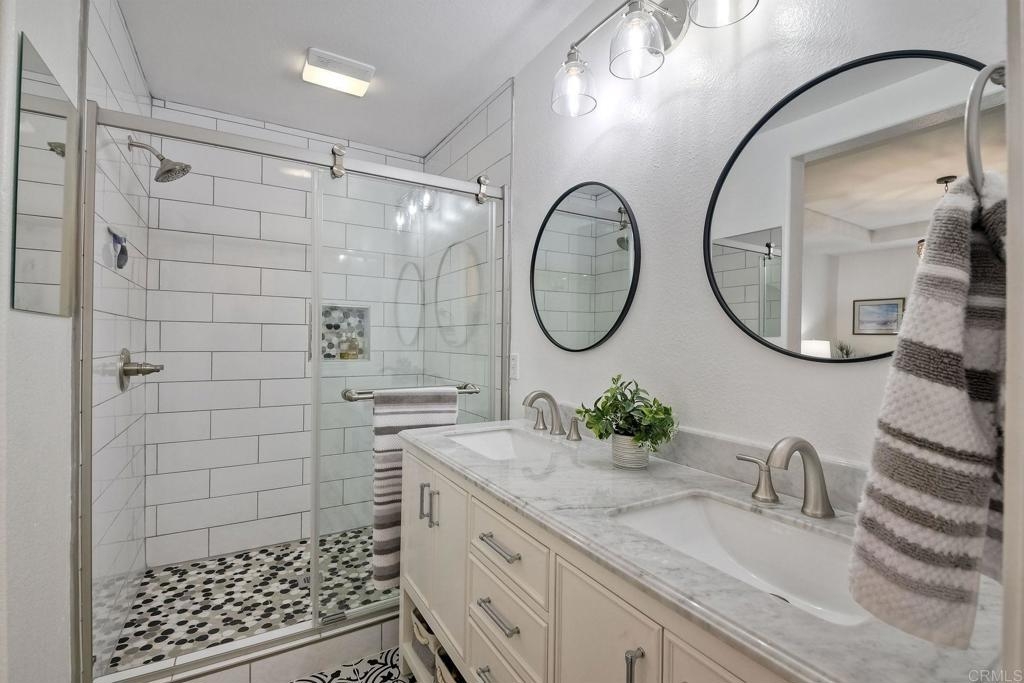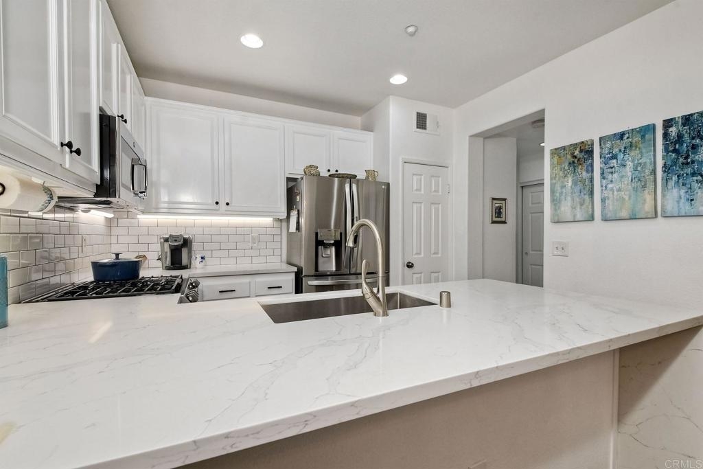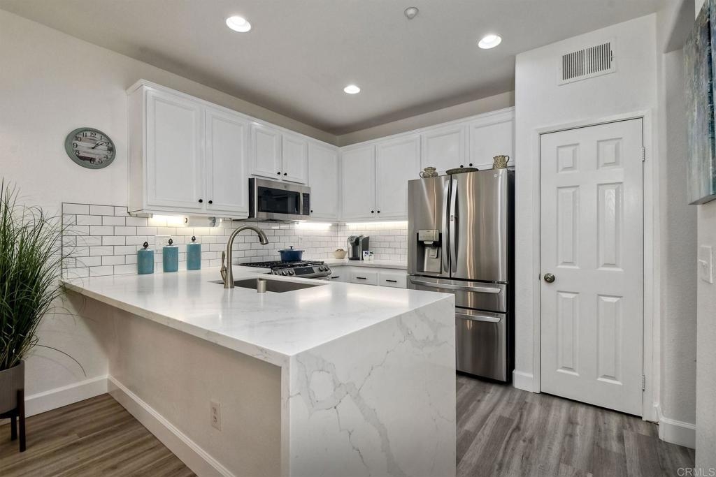 Welcome to San Elijo Hills in Beautiful San Diego California! This townhome is located in the highly desired community of Morgan's Corner and has been remodeled and is move in ready! This 3 bed, 4 bath home has a third floor bedroom with full bathroom! Owner just purchased a new oven, New AC/HVAC system with Nest thermometer, and New Washer & Dryer. All other appliances are less than 2 years old. Kitchen is gorgeous with a Calcutta Classico Quartz Waterfall counter top, tile backsplash, custom lighting, huge stainless steel sink and Luxury vinyl plank flooring. Seller put in custom shelving for additional storage and an additional shelf above the indoor washer and dryer. All Bathrooms have been renovated, and the primary bathroom has a large step in shower. Custom blinds throughout home. One of the nicest townhomes in Morgan's Corner-Owner is meticulous! Great location.... minutes from the village, but quiet location set back with no road noise. 2 car attached garage, with plenty of room for additional storage. Community pool, guest parking, just steps away from 18 miles of hiking/biking and walking trails, restaurants, park, coffee shop and grocery stores. This townhome is located in one of the best and most sought after school districts in San Diego. Seller will entertain offers between $779,000.00-$829,000.00