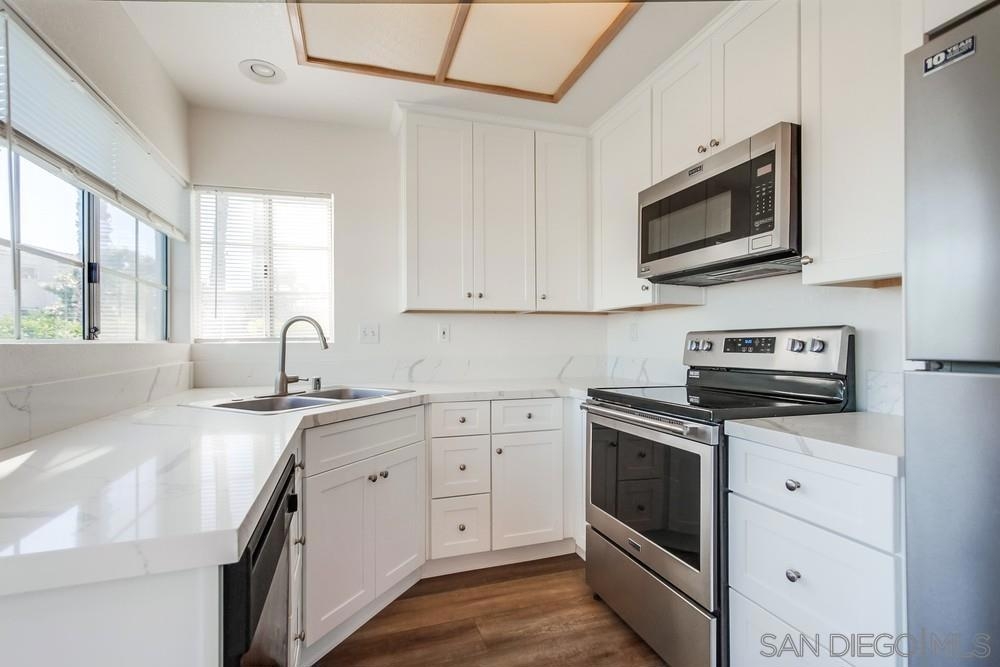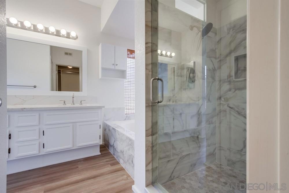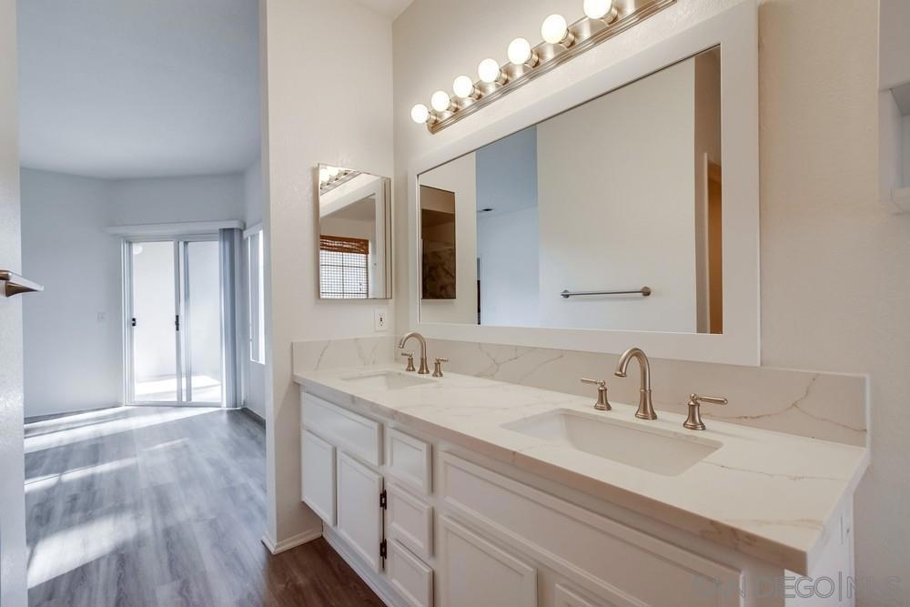 Beautiful corner unit in Lake San Marcos with panoramic lake and mountain views. This recently remodeled ground floor condo has 2 Bedrooms PLUS a full size room for an office or studio, 2 garages with ample storage, 2 Patios to Soak in the Scenery, one off the living room and one with access from both the the Master bedroom and dining room, Natural Light with Open Floorplan. Big living room with fireplace, separate dining area, double front door entry. Enjoy the pool and spa on a warm summer day. Have the family over while entertaining at the clubhouse for a BBQ. HOA includes water, trash, 24 hr patroled security and the Lake membership.You can also enjoy two golf courses and restaurants all wihtin walking distance. Come see this lovely home in peaceful Lake San Marcos