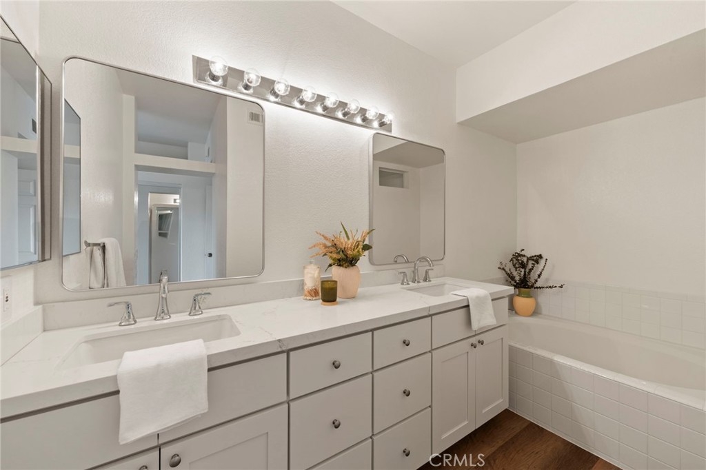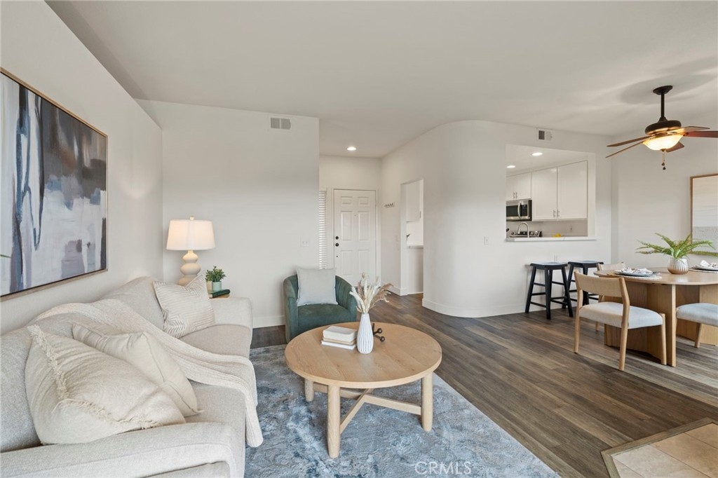 From the moment you step inside, the breathtaking lake and hillside views will captivate you, setting the stage for this beautifully updated single-level home that perfectly blends comfort, style, and convenience. Serene, picturesque lake views from the living room, dining room, and primary bedroom infuse the home with a sense of tranquility and natural beauty. Step outside through the sliding glass doors in the living room or primary bedroom to a spacious double-wide patio—perfect for sipping your morning coffee or hosting sunset gatherings. The stunning scenery provides an idyllic backdrop for both quiet mornings and evening relaxation. The heart of the home is a stunning, newly designed kitchen featuring sleek stainless steel appliances, elegant quartz countertops, and custom cabinetry with soft-close drawers, doors, and gliding shelves. As a bonus, the expansive kitchen offers a breakfast nook bathed in natural light from the oversized windows. The luxurious ensuite primary bedroom boasts a wall of closets, breathtaking views, and direct patio access. The spa-like bathroom is adorned with new cabinetry, quartz countertop, dual sinks, a spacious soaking tub, a separate shower and water closet. Designed for seamless indoor-outdoor living, this lower-level home features vinyl plank flooring and plush carpeting in the bedrooms, creating a perfect balance of elegance and comfort. Additional updates include a new security front door to welcome refreshing lake breezes, ceiling fans, energy-efficient LED lighting and a convenient indoor laundry closet with storage. An inviting gas fireplace and elegant window treatments add charm and functionality. With two garages, convenient guest parking directly across from the garages, this home covers all your practical needs. Enjoy the Lake’s lifestyle and easy access to the community's lake and facilities, all within a secure neighborhood with regular security patrols. The Panorama community offers exclusive amenities, including a private pool, spa, and recreation room. Residents also enjoy access to the Lake San Marcos community center, which features two additional pools, tennis and pickleball courts, and a vibrant social calendar. In addition, you will find The Lakehouse Resort, restaurants, two golf courses, boat & kayak rentals and community events year-round. This home is more than just a place to live—it's a serene retreat offering an unparalleled lifestyle. Don’t let this opportunity pass you by!