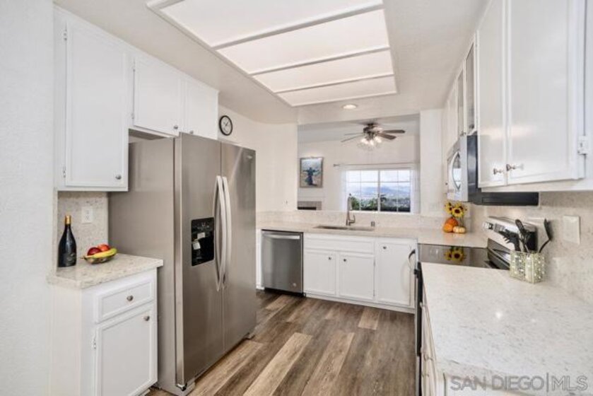 The BEST view in Lake San Marcos! Pictures do this property no justice. Make every day feel like a vacation. Located at the peak of the community sits this gorgeous condo with sit down, panoramic views of Lake San Marcos and out to the mountains. Clean as a whistle and tastefully upgraded, this open-concept condo features an oversized patio with spectacular views to enjoy year-round, detached two-car garage, and resort style amenities. Prime location at the top of the hill provides a perfect ocean breeze. Adjacent to guest parking with views of the Pacific. Come see why Lake San Marcos is north county’s best kept secret. Just a short stroll to the lake, restaurants, golf, boating, tennis, pickleball, and much more. Please see supplement. Enter through the front door and you’ll immediately see how special the views are from this home. Foyer leads to your living room with cozy fireplace and an attached dining area that leads out to a spacious patio. Open to the living room is an updated kitchen that features quartz countertops, stainless steel appliances, plenty of cabinet space and a casual dining area. Down the hallway is a laundry closet with full size washer & dryer. Off the rear of this wing is your primary bedroom suite with more views of the lake and slider that leads out to the private patio. Primary bath features dual sink vanity, glass-enclosed shower and a large soaking tub. Secondary bedroom and hall bath with shower-tub combo is also located down the hall at the front of the condo. Enjoy resort style living for all ages at Lake San Marcos. Panorama has it’s own private community pool & spa, but residents also have access to the Lake San Marcos community center, which features two pools as well as tennis & pickleball courts. Also by the lake you’ll find The Lakehouse Resort, restaurants, two golf courses, boat & kayak rentals and community events year-round. Come see for yourself what makes this such a special place to call home.