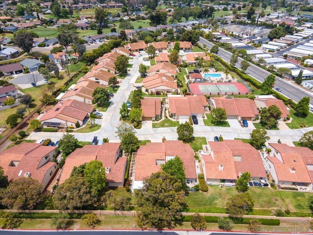 Single level 3 bedroom 2 bath twin home located in the Lake Marcos area of south San Marcos. The homeowners association takes really good care of the common areas: the grounds, a large pool, spa and tennis court. The entry and living area has tons of natural light thru a giant skylight. The kitchen opens well to dining area and large great room. The great room features vaulted ceilings and a fireplace. The back patio opens to a grassy area and green belt. Large 2 car garage with tons of storage. Complex Features: , Sewer: Sewer Connected Topography: LL