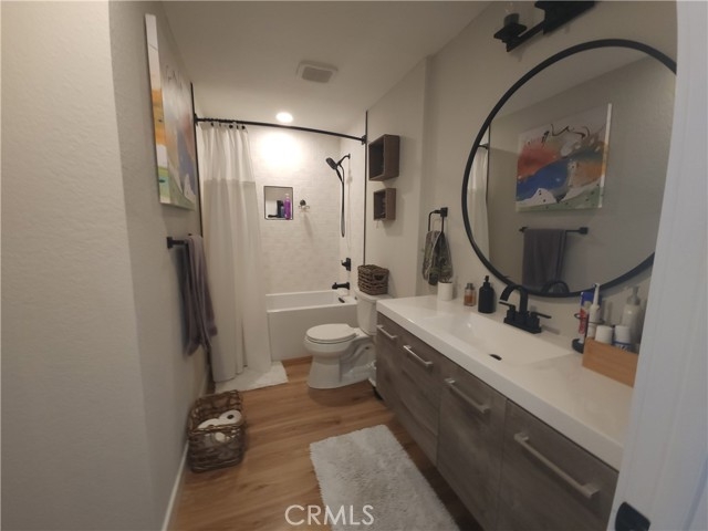 Look no further, this is the one! Rarely for sale, single story open floor plan, 3 bed, 2 full bath, 2 car attached garage, twin home condo! This 1500 sq. Ft. home (buyer to verify sq footage) with vaulted ceilings, has had every inch beautifully remodeled and is truly move-in ready! Too many upgrades to list but to start; Plumbing was completely repiped in 2021 with 20 yr warranty; Brand new, energy efficient heat pump AC with new ducting installed in 2022 along with new 3.6 kW Sunrun solar panels; Brand new energy efficient Low E windows and doors in 2021; Custom tiled gas fireplace; Luxury top of the line vinyl plank flooring throughout entire house with lifetime warranty; All new interior doors with black hardware and 6" baseboards; Custom Bali blinds; Completely remodeled master bath with dual vanity and quartz countertop, huge Designer tiled shower with Moen dual shower heads and glass door; all new plumbing fixtures and toilets throughout house; all new Decora outlets, light switches and custom lighting throughout; Remodeled guest bath with deep Kohler soaking tub, designer tile and floating vanity; and finally, a professionally designed, huge kitchen with custom Italian made cabinets, pull out pantry, pull out spice racks, glass cabinets with interior lighting, quartz countertops, under cabinet lighting, huge island with attached kitchen table, a ridiculous amount of storage space and top of the line, black stainless steel LG appliances! Beautifully landscaped private patio in back of home and spacious, fenced patio on side of house with front door entry. And to top that off, a humongous storage attic with electric retractable stairs that could even be turned into a loft/gym and more living area! Neighborhood has its own private pool, spa and tennis courts. Located within walking distance of Lake San Marcos, Discovery Elementary and award-winning San Marcos High School. Also close to Palomar Community College and Cal State San Marcos and the famous Restaurant Row and across the street from future planned San Marcos Creek preserve and park. Hurry because this will go fast!