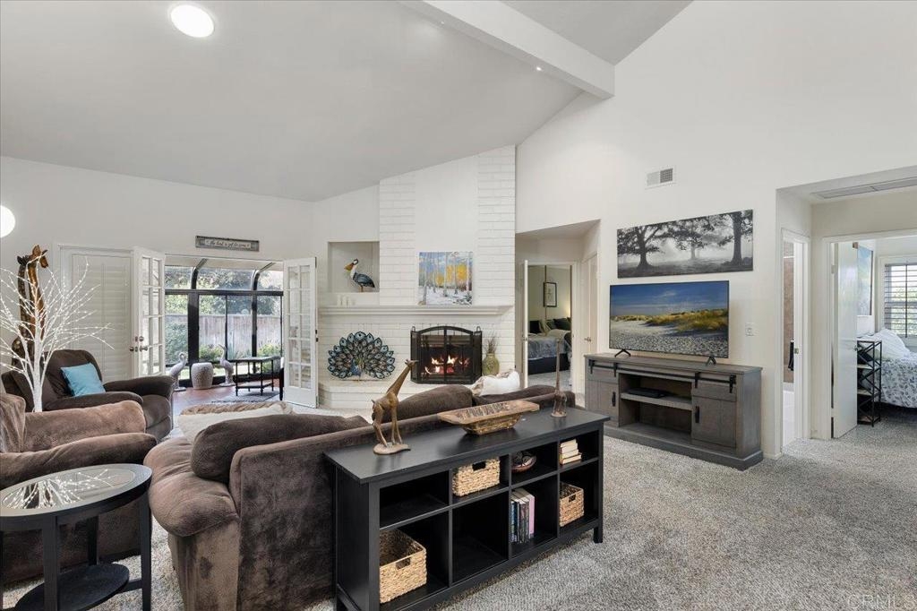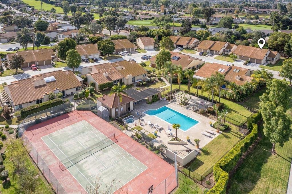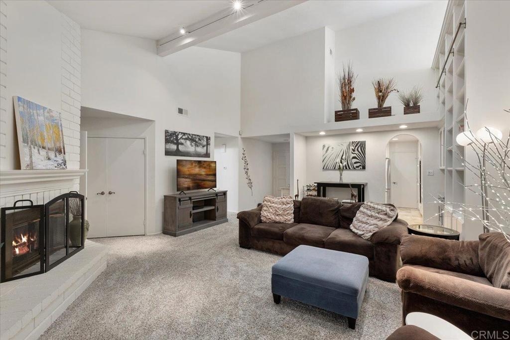 Discover an extraordinary gem: a single-story, 2-bedroom, 2-bathroom townhome boasting a spacious courtyard and a 2-car attached garage. Situated within the prestigious "Quail Country Villas" community bordering Lake San Marcos, this impeccably maintained residence offers unmatched comfort and convenience, along with ample storage space. Nestled privately, the home's living area features an inviting open floor plan highlighted by a cozy fireplace, soaring ceilings and stunning floor-to-ceiling bookshelves complete with an elegant brass ladder. Natural light floods the interior through solar tubes, while French doors beckon you to additional living space in the expansive sunroom. The surrounding greenbelt adds to the tranquility of the setting. Recent updates for the pristinely kept home include a new water heater (installed in 2020), updated LED lighting in the primary bathroom, and regular maintenance by a termite company. Convenience meets community in this prime location, within walking distance of Discovery Elementary and San Marcos High School, both highly acclaimed schools. Enjoy easy access to Lake San Marcos, Amalfi, the Dockside Restaurants, and the Lynx Golf Course, with the option to join Lake San Marcos amenities. Nearby, the San Marcos Creekside Preserve, currently under development, promises miles of creek habitat, a neighborhood park, and scenic trails perfect for outdoor enthusiasts. San Marcos serves as the vibrant hub of North County San Diego, offering proximity to shopping, dining, entertainment, and major freeways. Just eight miles from the Pacific Ocean, residents can indulge in coastal living while relishing in the city's upcoming projects, including the innovative 10.5-acre Restaurant Row known as "The Rolling Plaza." With parks, pickleball courts, a stage for events, and more, this development underscores the city's commitment to providing exceptional amenities for residents of all ages. Ranked #20 by Fortune magazine for its outstanding amenities catering to families and individuals alike, the City of San Marcos offers an unparalleled quality of life. Don't miss the opportunity to make this exceptional townhome your own and experience the best of Southern California living.