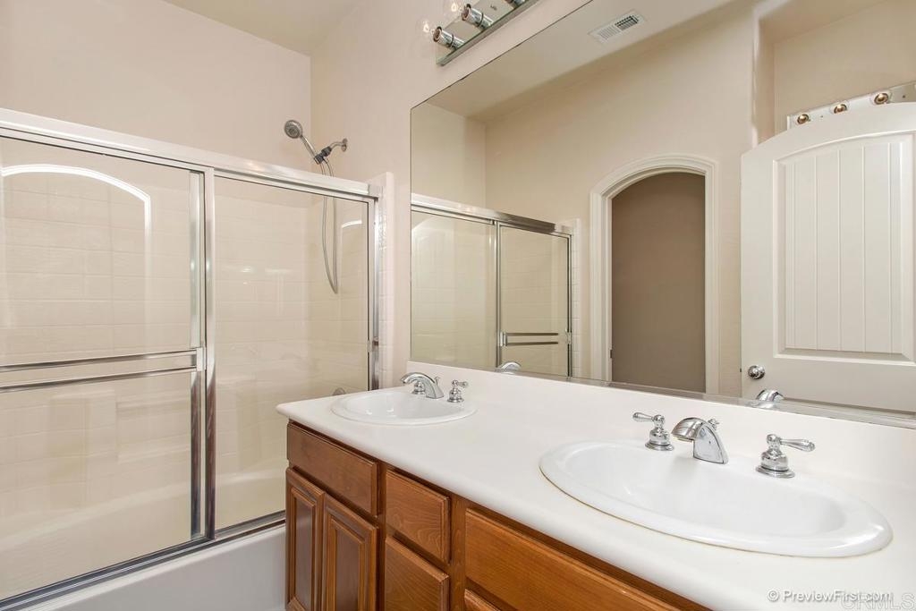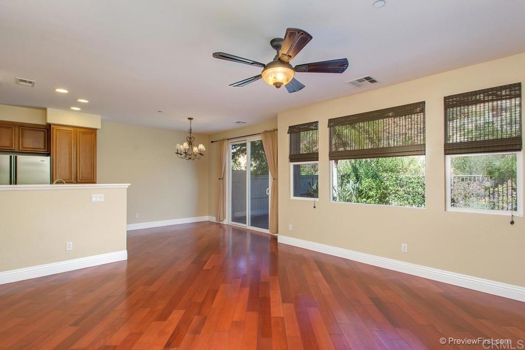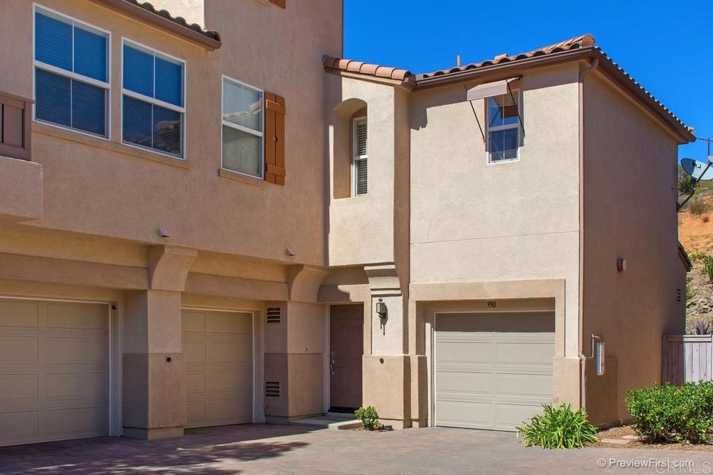 2-story corner unit townhome located in the gated community of Savona (between San Elijo Hills and Cal State University San Marcos) offers 3 bedrooms, 2.5 bathrooms in a quiet location. Enjoy a large private backyard. This home has a functional floorplan with all living spaces downstairs and all the bedrooms upstairs. The living room boasts hardwood flooring, a fireplace & a ceiling fan with remote. Adjacent is the dining room with an elegant chandelier, overlooking the garden in the backyard. The kitchen features granite countertops & backsplash, 4-burner gas cooktop, a built-in microwave, side-by-side refrigerator, & ample wood cabinetry for storage. The master bedroom suite has a large walk-in closet, a master bathroom with dual sinks plus a separate makeup vanity, and a shower & tub combo. The two secondary bedrooms are light & bright and the secondary bathroom is spacious. This home comes with 2 one car attached garages with epoxy coating. Laundry is in one of the garage bays. Community amenities include a pool, spa, playground & lots of extra parking for guests. Walk to dining, shopping and more. Minutes to cinemas & the beach. Near fwy access.