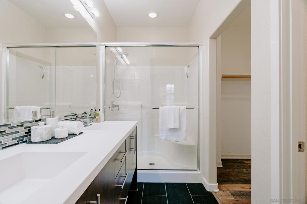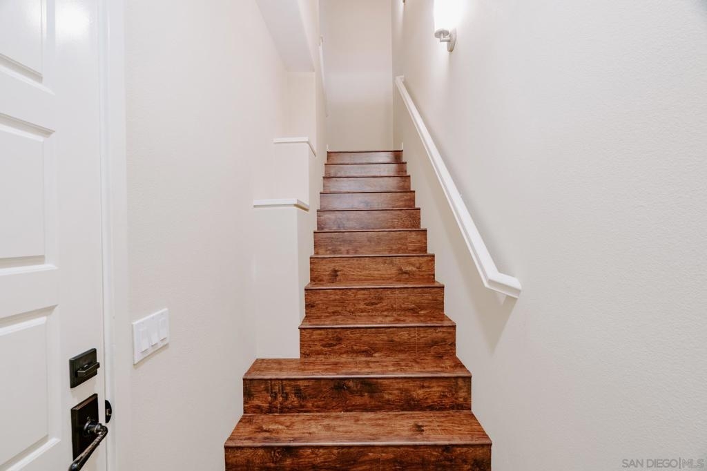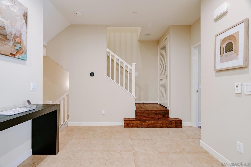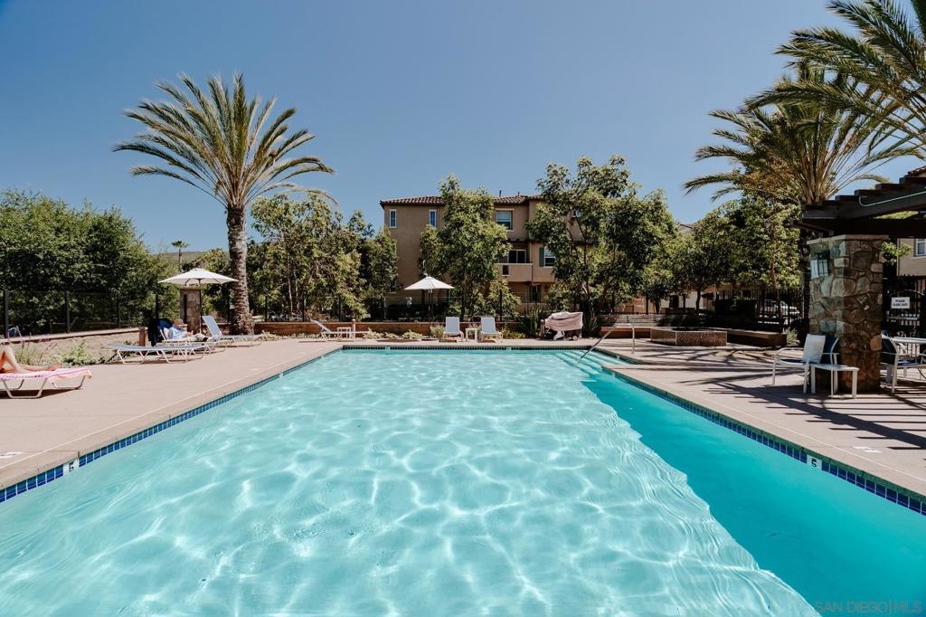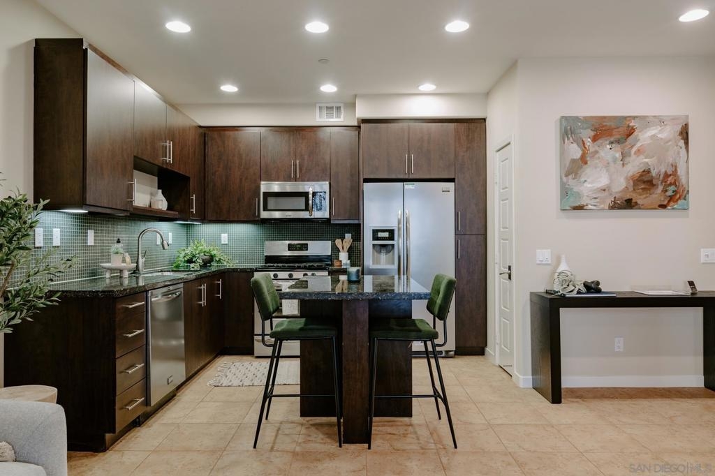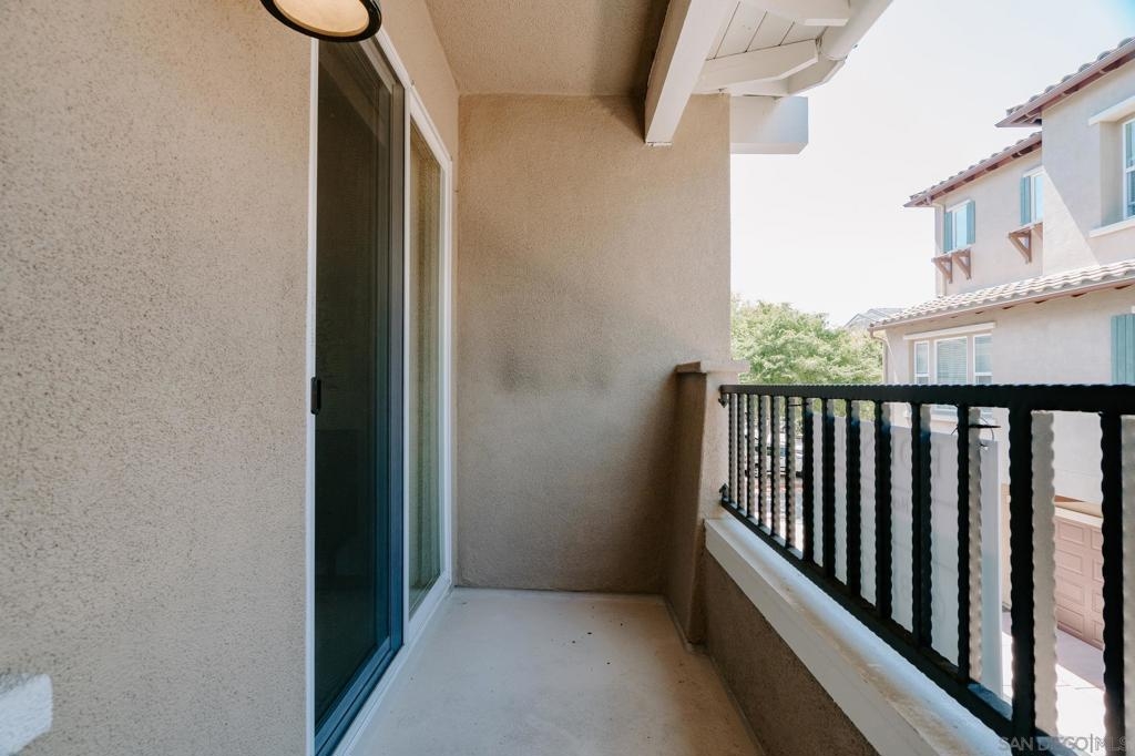 HUGE PRICE IMPROVEMENT! Welcome home to this beautifully maintained 3 bedroom 2.5 bathroom, 2 car garage townhome in San Elijo Hills neighborhood of San Marcos, California. The Solaire community is the best of urban and suburban living with gorgeous mature tree-lined streets, while being less than half a mile from grocery, shops, and dining! This floor plan features your front door right next to your garage. As you walk up from your entry on beautiful wood laminate floors, you arrive on the 2nd floor living area. Featuring open concept living, dining, and cooking, along with a half bathroom, and the perfect bedroom with closet to turn into your office...because we all know we need our home offices right by the kitchen to grab a quick snack ;) . Stainless steel appliances in the kitchen, gorgeous granite countertops, with full tiled backsplash and stainless hardware throughout flows directly into a cozy dining area and living area. Your living area is ready with in ceiling speakers to set up your own home theatre, while your balcony is just steps away. On the way upstairs is your in-unit laundry area, appliances will stay! The 3rd floor features your large, spacious primary bedroom with ceiling fan and en-suite bathroom. The bathroom has double sinks and a large walk-in closet! In the hallway is another full bathroom and bedroom with ceiling fan already in place. This home features a smart thermostat, smart keypad, and video doorbell as well. Flooring in bedrooms and baths recently replaced! What an amazing opportunity to own in the San Elijo Hills neighborhood! Sewer: Sewer Connected Topography: GSL