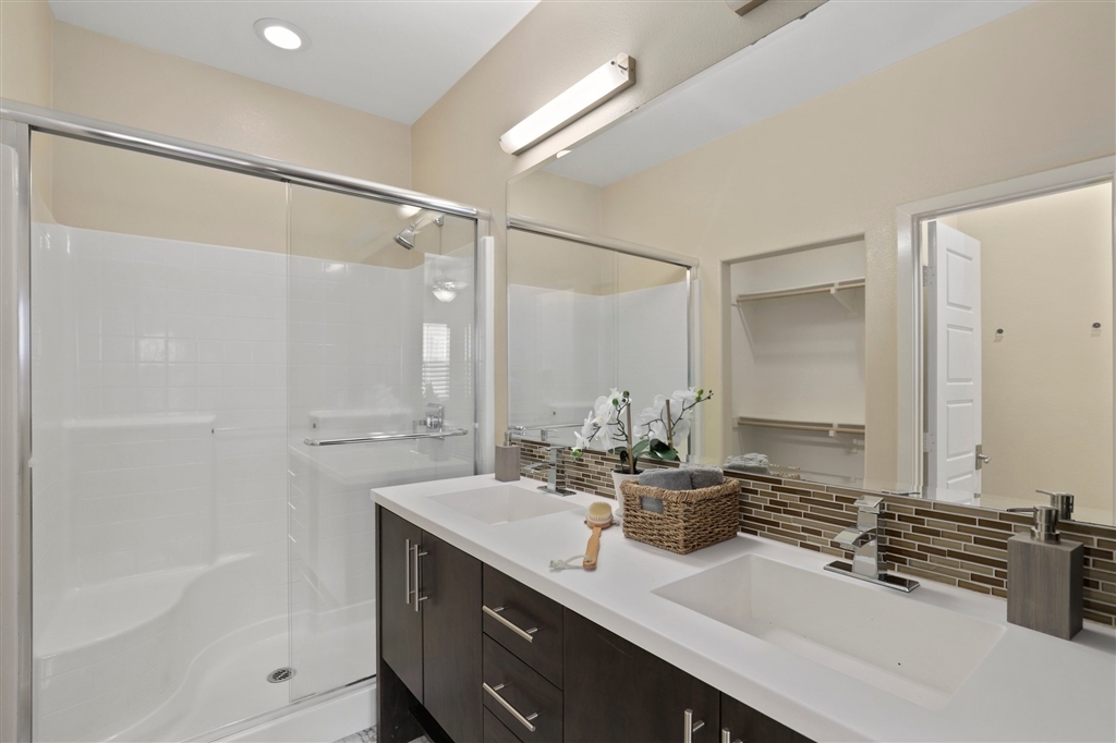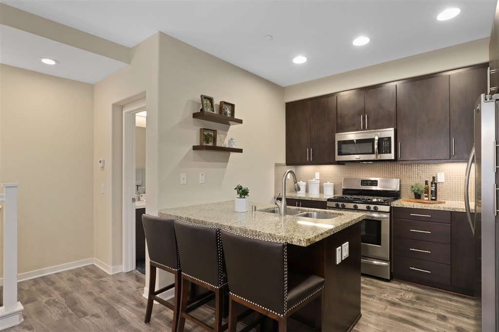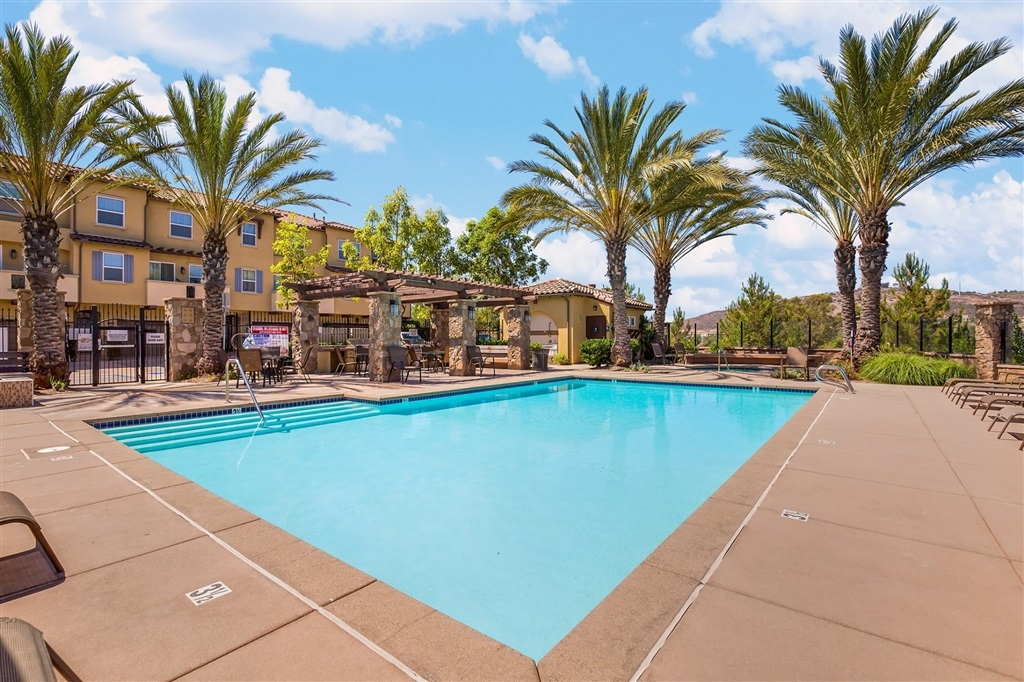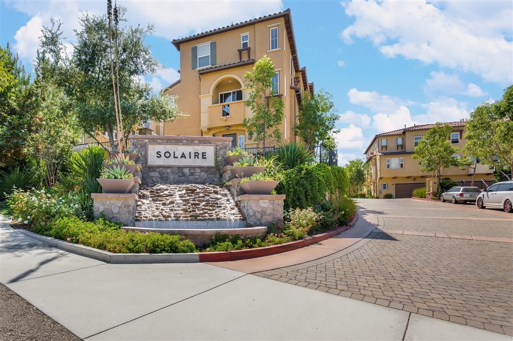 Move-in-ready 3 bed, 3 bath, end-unit townhome in the wonderful Solaire Community including a pool, spa, BBQ facilities, & gas fireplace! This light-filled townhome has 9-foot ceilings, an open layout on the main floor, beautiful wood laminate flooring, recessed lighting, plantation shutters, & ceiling fans in all bedrooms! Kitchen has granite counters, glass tile backsplash, modern fixtures, & SS appliances! Enjoy a balcony off the dining area. One bedroom on the main floor. Upstairs you'll find the 2nd bedroom with an ensuite bathroom and the master bedroom boasting a gorgeous ensuite bathroom with dual sinks, tons of cabinets space, & a walk-in closet. Attached 2 car garage & stacked in-unit washer and dryer! Keyless entry and smart 4 control technology.. Neighborhoods: San Elijo Complex Features: , Equipment: Dryer, Washer Other Fees: 0 Sewer: Sewer Connected Topography: LL