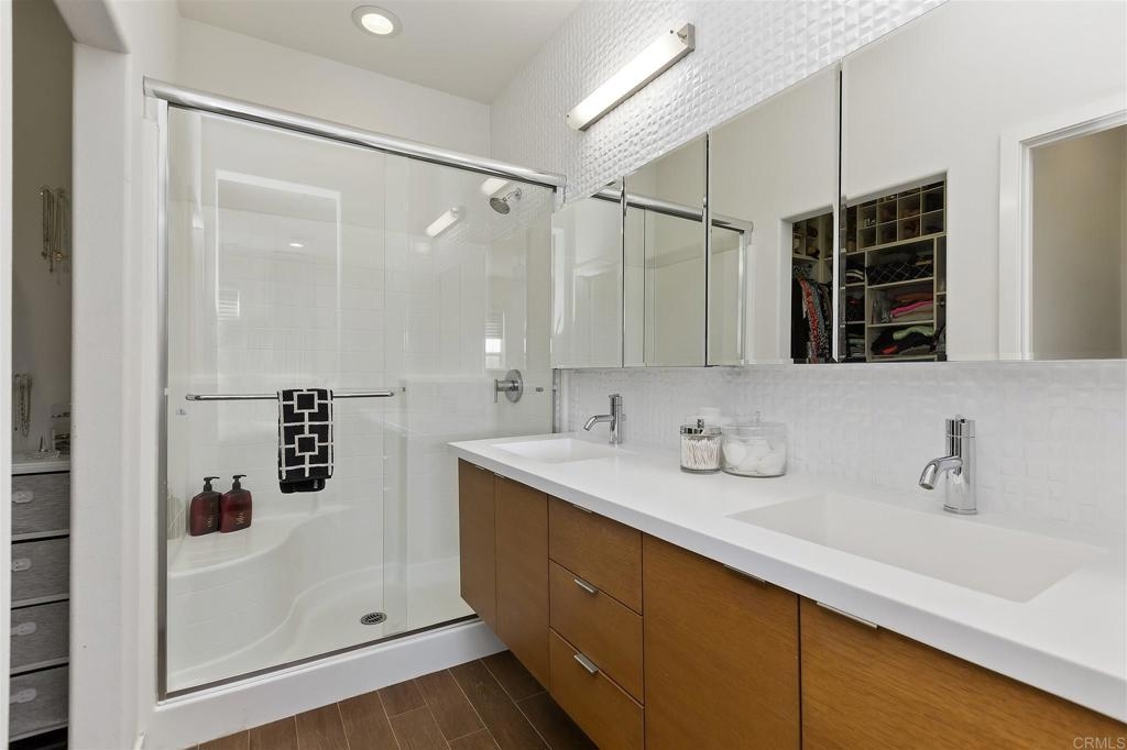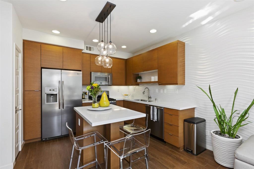 GORGEOUS FORMER MODEL IN SOLAIRE! Located in Solaire/Old Creek Ranch, near San Elijo Hills, this immaculate 3 Bedroom/ 2.5 Bath condo features gorgeous contemporary upgrades throughout incl. gourmet kitchen w/ Quartz counters, modern cabinets, backsplash & S/S appliances, accent walls, gorgeous tile flooring and upgraded carpet, ceiling fans, closets w/ built-in cabinetry, custom paint, A/C & so much more! The 2nd floor features an open kitchen, dining & living room plus one bedroom with built in desk and half bath. The 3rd floor offers two additional bedrooms, including the master and 2 full bathrooms. 1st floor entry with attached 2 car garage with extra storage space plus SmartHome Control 4 System. Great location near the pool and featuring a view balcony. Benefit from low Mello roos & HOA fees. Easy walk to shops, eateries, parks and trails. Solaire offers pool/spa/BBQ & more. Top schools of San Marcos Schools district: Carrillo Elementary, San Elijo Middle, San Marcos High. Room dimensions & square footage are approximate, per builder & assessor's record. Seller to select services. Mello-roos is estimated. All MLS & marketing info is approximate & not guaranteed. FHA Financing Approved Complex (S011073) & VA Financing Approved Complex (000080).