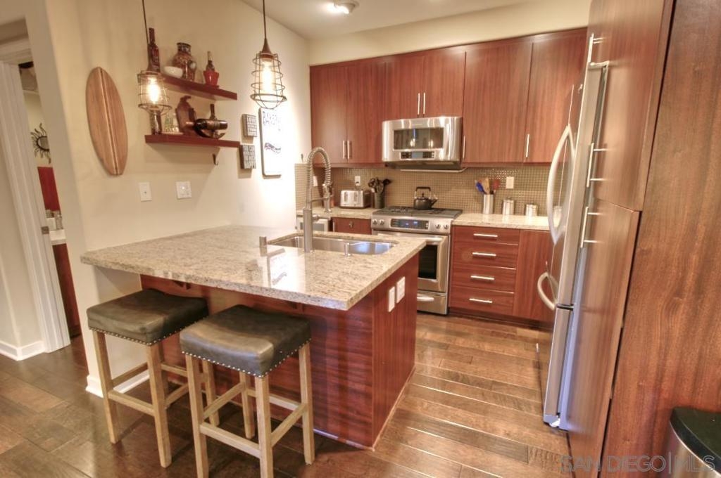Welcome Home to this lovely previously upgraded end unit in the well sought after neighborhood of Solaire. In between Carlsbad and San Elijo hills close to fine dining, shopping and all major freeways . This open and bright unit boasts Hardwood floors, stainless steel appliances including built in wine cooler, Berber carpet, granite counters, recessed LED lighting, 3 full bedrooms and 3 full baths. Quiet location. Close to the pool. Stacked washer and dryer. Steps away from the resort style pool and spa area where you can enjoy relaxing time with friends and family. Unit conveys smart home control 4 which can control lights, heating/cooling, music, tv and front door video monitoring 24 hours a day. Low HOA. One of the best school districts in San Diego County. Buyer and buyers agent to verify all information Motivated Sellers!!!!Welcome Home to this lovely previously upgraded end unit in the well sought after neighborhood of Solaire. In between Carlsbad and San Elijo hills close to fine dining, shopping and all major freeways . This open and bright unit boasts Hardwood floors, stainless steel appliances including built in wine cooler, Berber carpet, granite counters, recessed LED lighting, 3 full bedrooms and 3 full baths. Quiet location. Close to the pool. Stacked washer and dryer. Steps away from the resort style pool and spa area where you can enjoy relaxing time with friends and family. Unit conveys smart home control 4 which can control lights, heating/cooling, music, tv and front door video monitoring 24 hours a day. Low HOA. One of the best school districts in the San Diego County. Buyer and buyers agent to verify all information. Complex Features: ,,, Equipment: Dryer,Fire Sprinklers,Garage Door Opener, Range/Oven, Washer Sewer: Sewer Connected Topography: LL