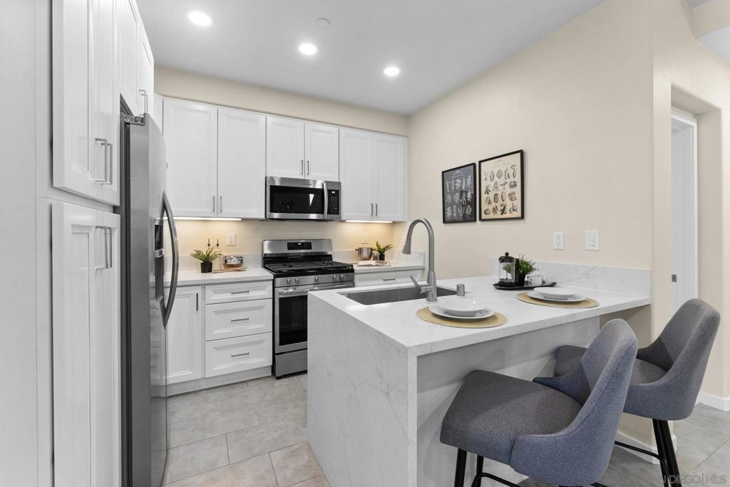 Pack your bags! Opportunity is knocking right now! Don't miss your chance to own this light, bright, & airy turnkey 3BR/3BA corner-unit townhome in Solaire! You'll love the 9' ceilings, walls of windows, smart upgrades & prime location between San Elijo Hills & La Costa/Carlsbad. Relish your tranquil hillside & treetop views and care-free lifestyle thanks to the updated kitchen & bath cabinets, quartz counters, low-maintenance modern tile flooring, & sleek LED lighting & fixture upgrades throughout. The kitchen features a stylish quartz waterfall edge, breakfast bar, & open layout to the living/dining areas. Newly installed SS microwave, dishwasher, & 5-burner smart range w/ Wi-Fi & voice control, packed w/ features sure to bring out your inner chef. The freshly painted interior, energy-efficient lighting, in-unit laundry, & attached 2-car garage add to the move-in-ready appeal. Top floor features both the primary suite & a secondary suite. The primary includes a spacious walk-in closet + all BR closets are outfitted w/ org shelving systems. Additional highlights include wiring for built-in speakers throughout + data/coaxial connections in the LR & all 3 BRs, ideal for modern living & working from home. Solaire offers a resort-style lifestyle w/ pool, spa, firepit, BBQ & dining area overlooking scenic hills. Just mins to hiking/biking trails, La Costa Town Center, San Elijo shops/cafés, CSUSM, top-rated schools, dining, grocery, gyms, & major retail. <10 mi to the beach & Batiquitos Lagoon and much more! Live the good life at Solaire. WOW! Welcome Home!