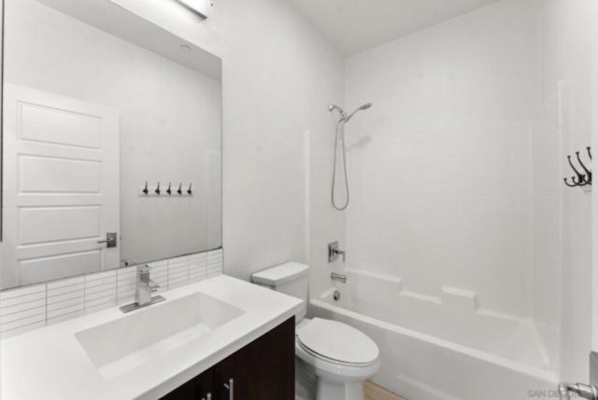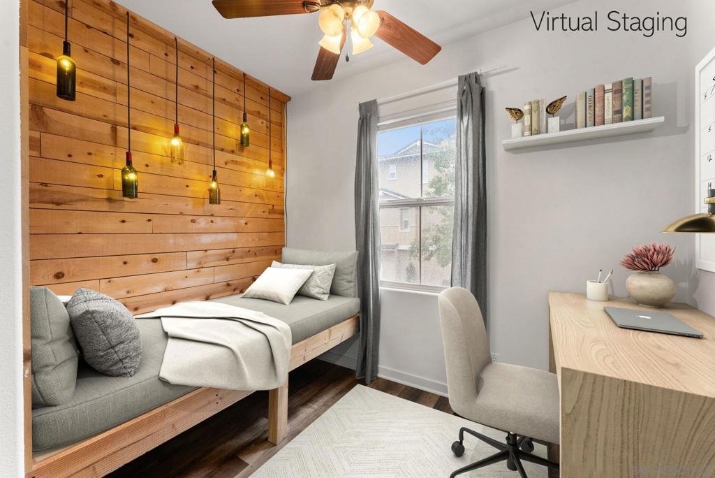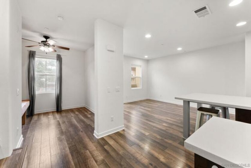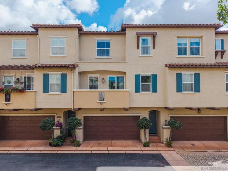 Located in one of the most desirable communities of San Marcos near San Elijo Hills, this elevated 2-bedroom with optional office, 2-bath luxury townhome offers 1,158 square feet of modern design and functionality. Built in 2012, this move-in-ready residence showcases wide-plank luxury vinyl flooring, recessed lighting throughout, and a seamless open-concept layout ideal for entertaining. The large kitchen features rich shaker cabinetry, a designer tile backsplash, stainless steel appliances, and an oversized white quartz island that anchors the space with clean architectural lines. Freshly painted and featuring dual-pane windows, this bright unit invites in natural light while maintaining energy efficiency. A versatile flex room functions beautifully as a home office, creative studio, children’s play area, or optional third bedroom space, meeting today’s remote work and hybrid lifestyle needs. The private balcony extends your living space outdoors and offers an open view, perfect for morning coffee or evening attach two-car garage includes a built-in electric vehicle charger and plenty of room for storage. With HOA dues of $303 per month, residents enjoy access to resort-style amenities including a sparkling community pool, firepit lounge, and BBQ gathering areas that elevate everyday living and provide inviting spaces to gather with friends and neighbors. Situated near award-winning SMUSD schools, scenic parks, hiking trails, and convenient access to the shops and dining of San Elijo Hills Town Center, this location offers the ideal balance of tranquility