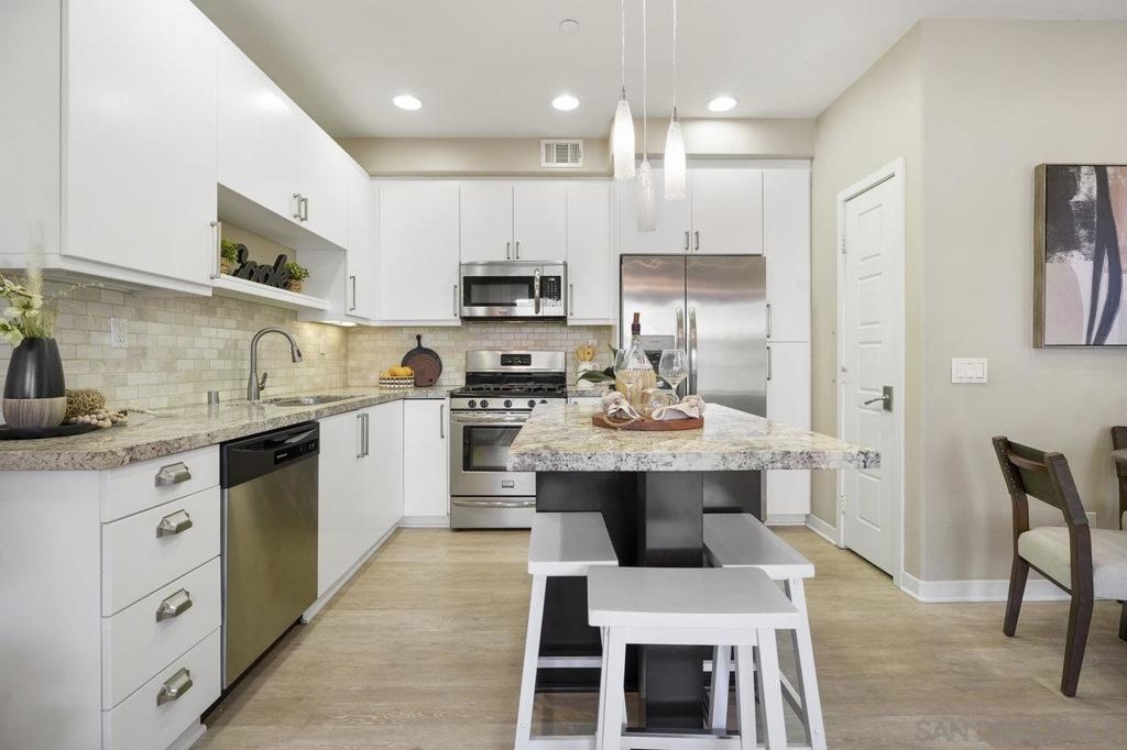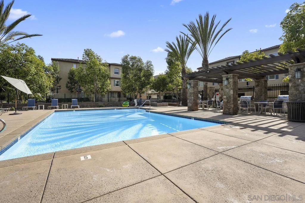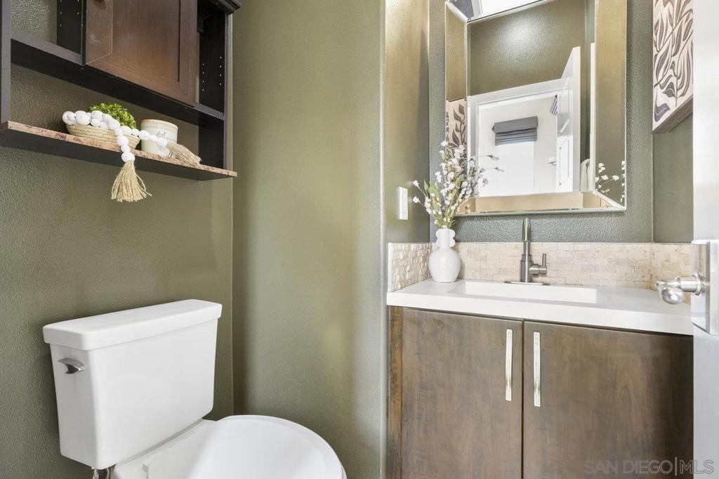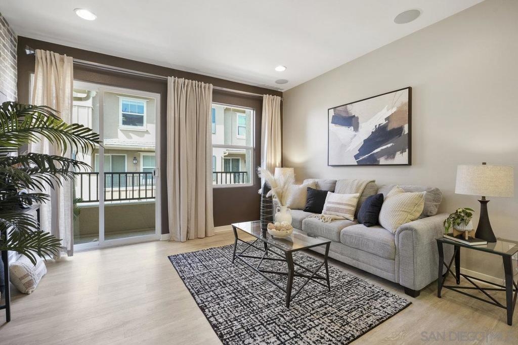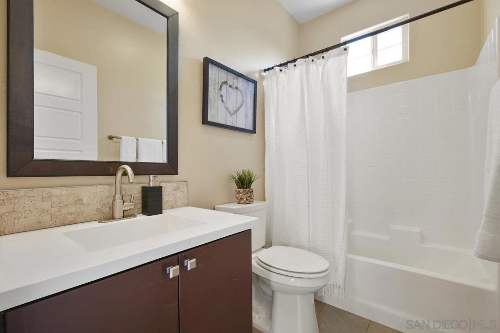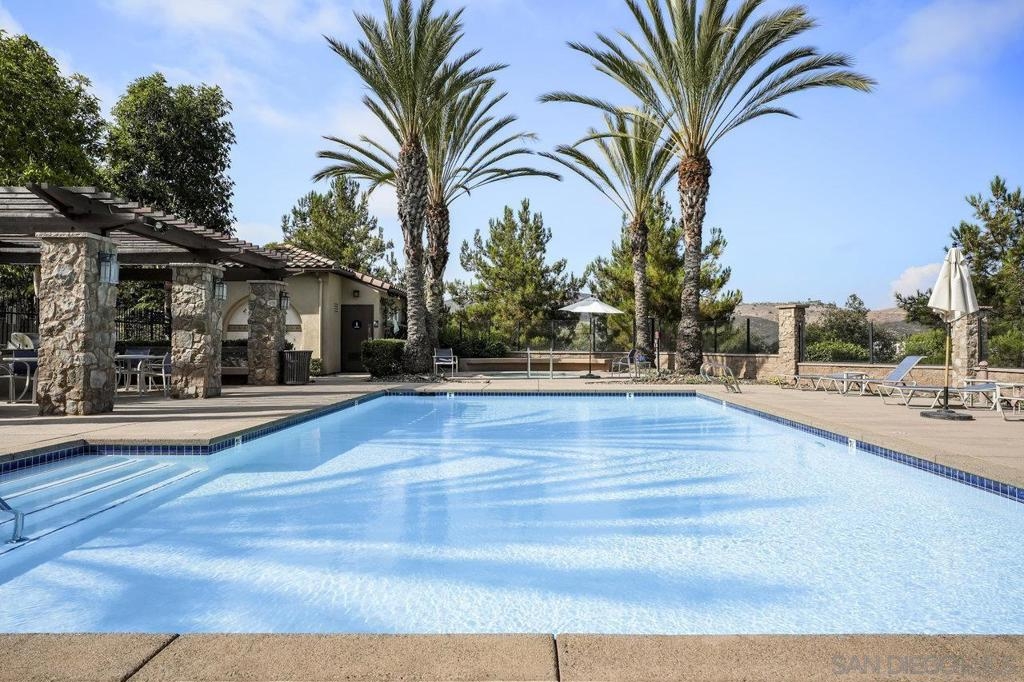 It's here! One of the finest homes in arguably THE best location within the tree-lined neighborhood of Solaire, this one is loaded with unique features that make it stand out from the rest. RARELY AVAILABLE! One of only two homes in the complex that is a true end unit facing the garden with an extra-large lower patio combined with a large upper balcony, making for memorable times entertaining inside and out. Step inside and you'll be equally blown away by the stunning finishes throughout. It shows like a model! The main floor features an open, airy feel with large windows that offer views and an abundance of natural light. Gorgeous kitchen remodel with new stainless-steel appliances and granite counters spanning the large prep space and center island. Tons of storage, including a dedicated pantry! Two brick feature walls make the space a stylish retreat. The elegant powder room is sure to impress. Impeccable layout that lives very much like a single-family home (only one shared wall and no one above or below). The main level bedroom makes a great office or guestroom. Upstairs, you'll find two additional spacious bedrooms and two full baths. The primary bedroom is large with a spa-like bath and walk-in closet. Don't forget the attached 2-car garage with direct access and custom storage cabinets. A short distance from San Elijo Hills & La Costa Town Center shopping, restaurants, hiking trails, parks, schools & beaches. The resort-like complex features a pool, spa and fire pit. This home checks all the boxes and provides a private retreat that is awaiting its lucky new owner.