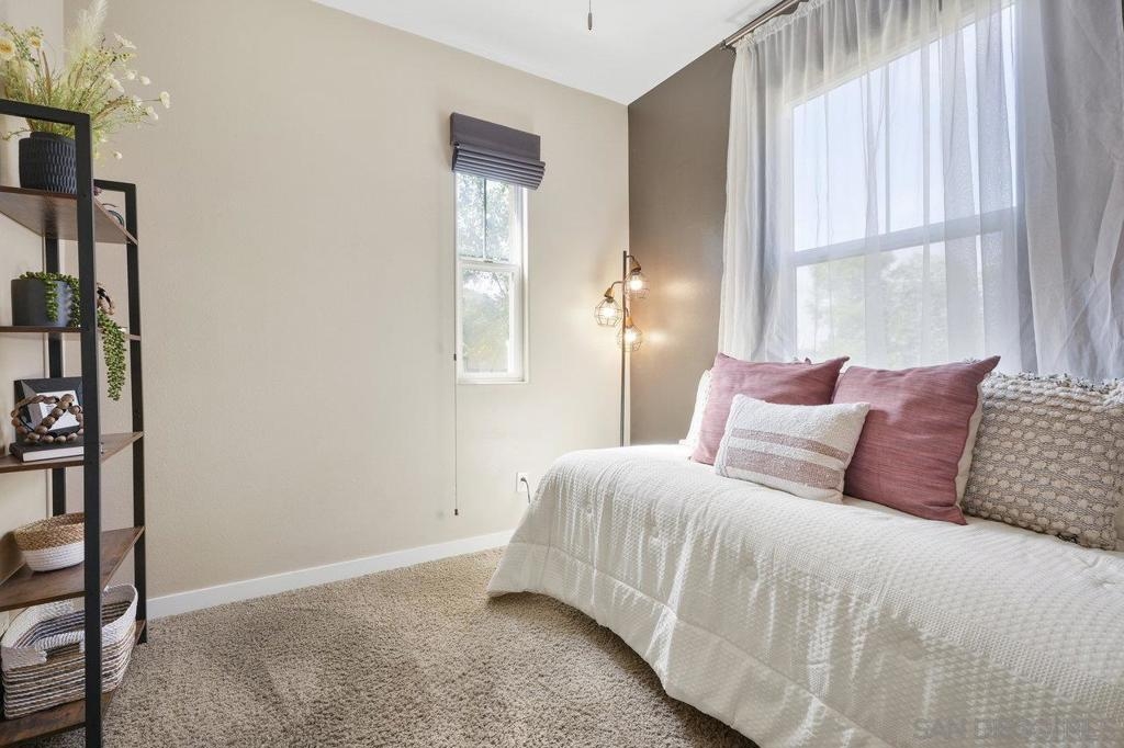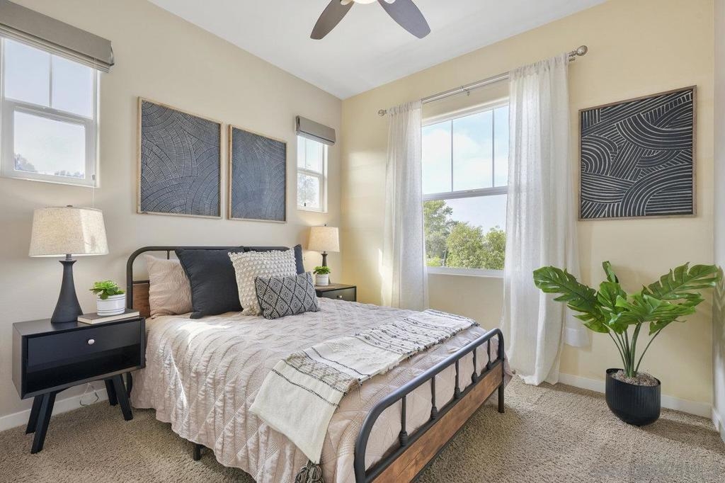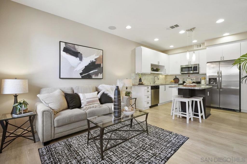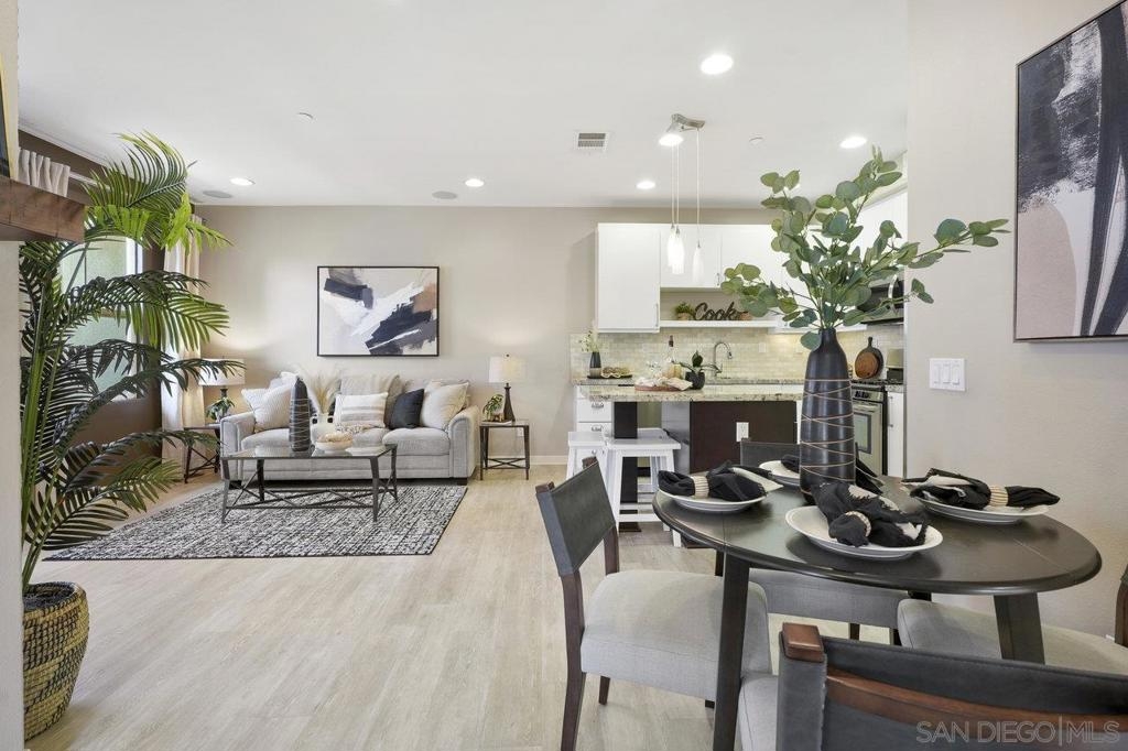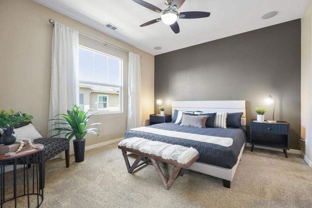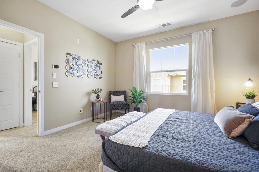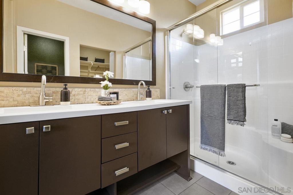 It's here! One of the finest homes in arguably THE best location within the tree-lined neighborhood of Solaire, this one is loaded with unique features that make it stand out from the rest. RARELY AVAILABLE! One of only two homes in the complex that is a true end unit facing the garden with an extra-large lower patio combined with a large upper balcony, making for memorable times entertaining inside and out. Step inside and you'll be equally blown away by the stunning finishes throughout. It shows like a model! The main floor features an open, airy feel with large windows that offer views and an abundance of natural light. Gorgeous kitchen remodel with new stainless-steel appliances and granite counters spanning the large prep space and center island. Tons of storage, including a dedicated pantry! Two brick feature walls make the space a stylish retreat. The elegant powder room is sure to impress. Impeccable layout that lives very much like a single-family home (only one shared wall and no one above or below). The main level bedroom makes a great office or guestroom. Upstairs, you'll find two additional spacious bedrooms and two full baths. The primary bedroom is large with a spa-like bath and walk-in closet. Don't forget the attached 2-car garage with direct access and custom storage cabinets. A short distance from San Elijo Hills & La Costa Town Center shopping, restaurants, hiking trails, parks, schools & beaches. The resort-like complex features a pool, spa and fire pit. This home checks all the boxes and provides a private retreat that is awaiting its lucky new owner.