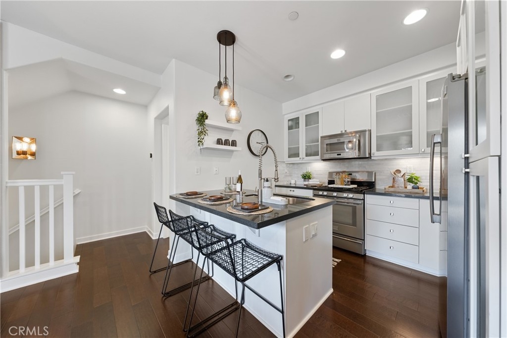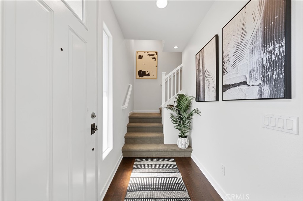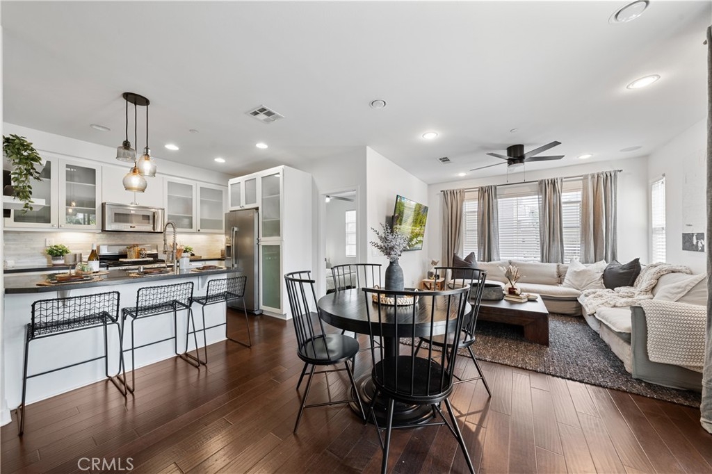 Nestled in the highly desirable Old Creek Ranch, right by San Elijo Hills, this beautifully upgraded end unit in the popular Solaire neighborhood offers a perfect blend of modern touches and convenience. The home features a bright and open concept living space, complete with a stylishly remodeled kitchen boasting stainless steel appliances, an eat-in bar, updated white cabinetry, and quartz countertops. The inviting wood flooring, accent wall, and updated lighting create a warm and contemporary atmosphere. Additional highlights include a Control4 Smart Home System, surround sound, and updated bathrooms. Enjoy the private balcony and the resort-style community pool and spa. Zoned for top-rated schools and conveniently close to everything, this turn-key home is ready for you to move in and make it your own.