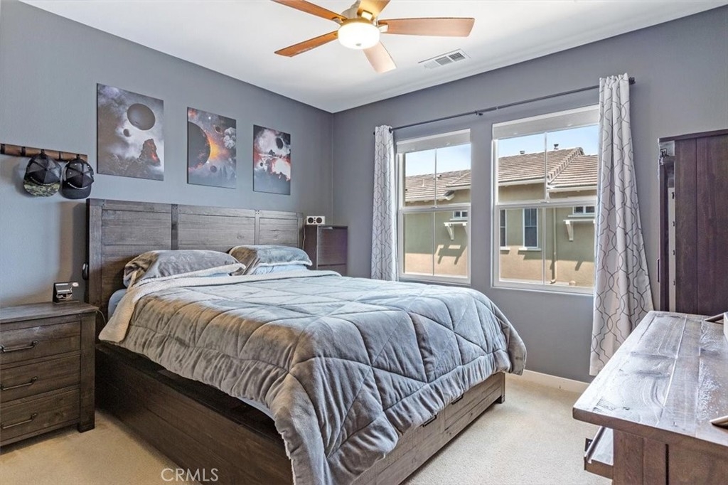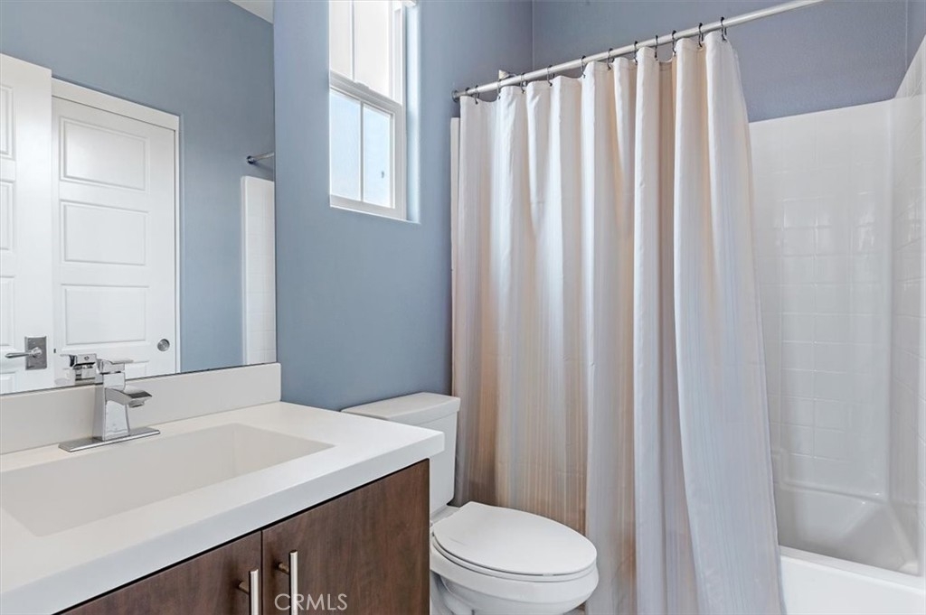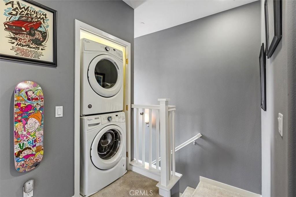 FABULOUS TURN-KEY END UNIT HOME WITH VIEW! Located in Solaire/Old Creek Ranch, near San Elijo Hills, this immaculate 3 Bedroom/ 3 Bath home features gorgeous contemporary upgrades throughout. Gourmet kitchen w/ new appliances, granite counters, modern cabinets & backsplash. Full bed & bathroom on the main level, open concept living room/dining room w/ views of hills/mountains & w/ private view balcony. Master bedroom w/walk-in closet, dual vanity & separate water closet. Additional bedroom w/ en-suite full bathroom. Full W/D in unit & included. 2-car attached direct access garage w/ storage, 220V & epoxy flooring. Neutral tile flooring, upgraded carpet, ceiling fans, custom paint, A/C, heater, SmartHome Control 4 System, Water Softener System & so much more! The Solaire complex features a community pool, spa, fire-pit & BBQ areas. Benefit from low Mello Roos & HOA fees. A short distance from San Elijo & La Costa shopping centers, hiking trails, parks, schools & beaches. You do not want to miss this opportunity!