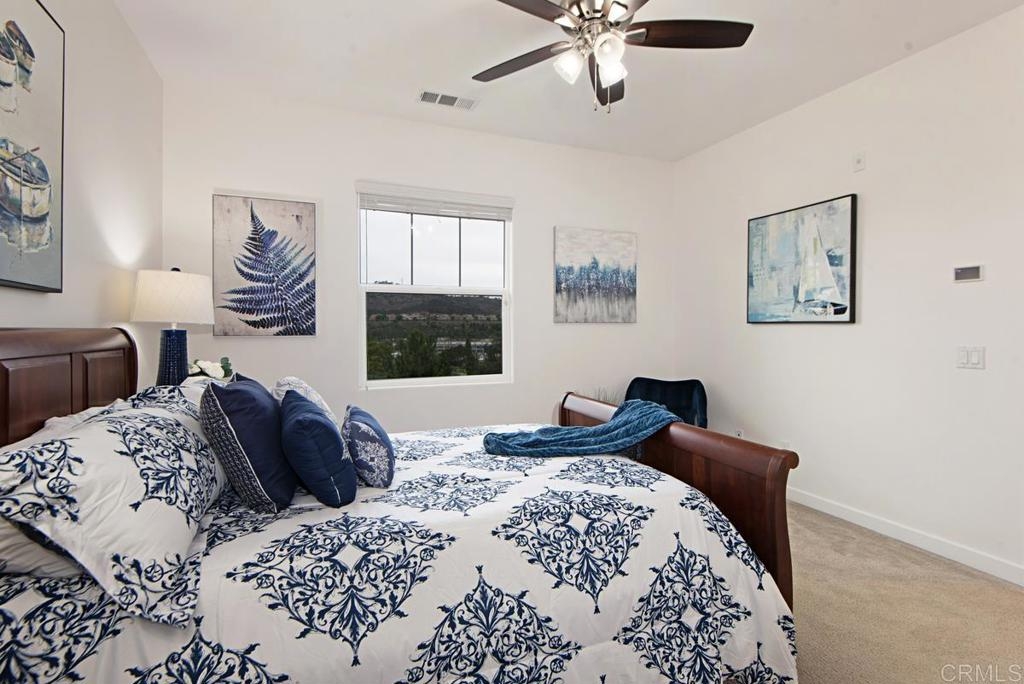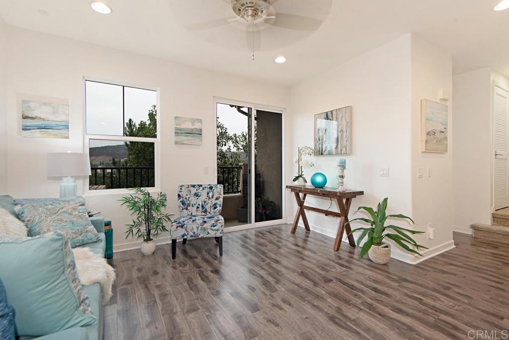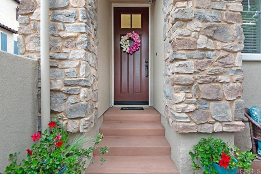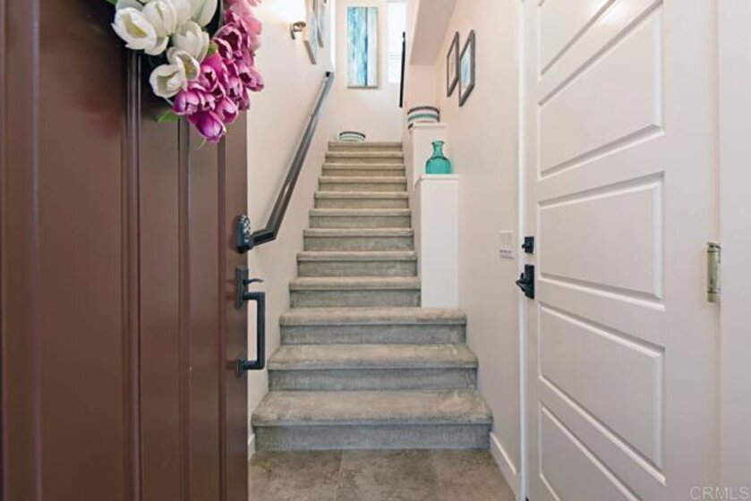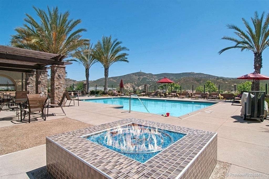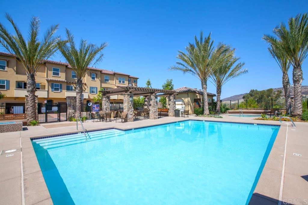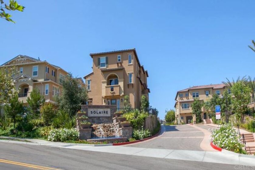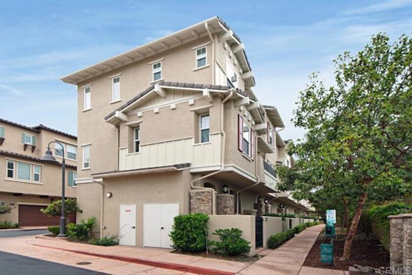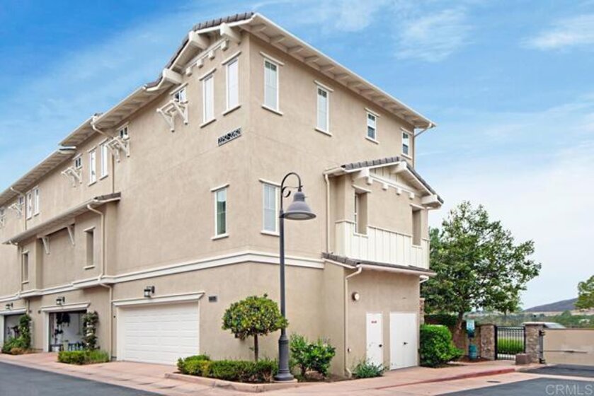 Finally, a Prime corner location with Stunning Mountain Views and a Great Pool and community area. 1 of only 6 units that have a downstairs porch, private sidewalk to entry, and those great views. 3 bedrooms, 2.5 baths, this 1201sf Beautiful Townhome has a direct access 2 car oversized garage. No neighbors above or below you. Built in 2013, it has been freshly painted with soft white custom paint and features dual pane windows, a tankless water heater, high-speed CAT 5 wiring, SmartHome Control 4 System, AC, SS appliances including a double door refrigerator. The Main level has open concept living room/dining room, kitchen, a bedroom with a close-by ½ bath. There is also a newer stacked large W/D in laundry closet, and a private view balcony. The kitchen features a separate pantry and island with breakfast bar seating overlooking the open living and dining area. Granite counters, designer backsplash and modern cabinets are in kitchen and baths, ceiling fans in all bedrooms and living area. The top floor features a Master bedroom with sensational views, dual sinks in bath, walk in closet and separate loo. There is a 3rd bedroom with views, and a stylish full hall bath. You will love this home for many reasons: Only minutes to I-5 & Encinitas/Carlsbad beaches. Low $217 HOA, and $930 yearly Mello Roos. Smart Home offers a coded smart front door lock, outside camera and smart monitor in the Master bedroom. This Solaire Community within Old Creek Ranch offers a large private community pool, spa, barbecue areas & gas fire pit with mountain views. Just step out the community gate to enjoy over 1,000 acres of open space and 19 miles of hiking/biking trails. This master planned community near San Elijo Hills provides easy access to all major freeways and beaches. The Award-winning local schools include: Rancho Carrillo Elementary School, San Elijo Middle School and San Marcos High School. Enjoy Morning breakfast at Mariah’s or just 2.4 miles west to the La Costa Town Square where you will find marketing at VONS, visit Petco, 24 hr fitness, Michaels, Jamba Juice, Chipotle, Jersey Mikes, Walgreens, Banks, Starbucks, movies at the Cinepolis, and much more. Wow! It's your lucky day.