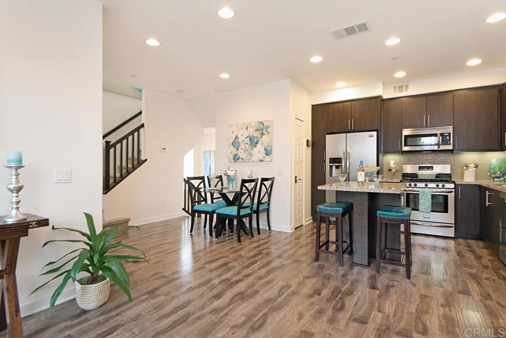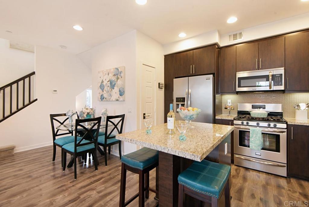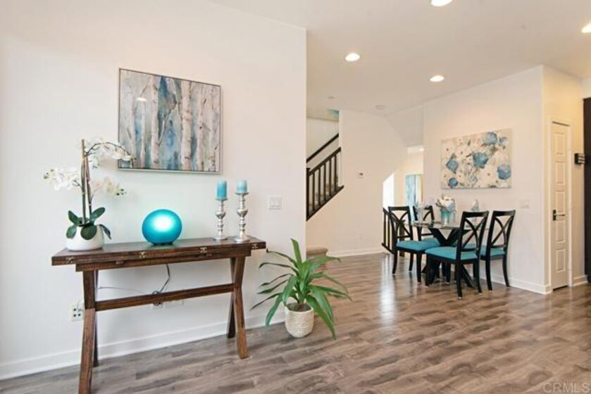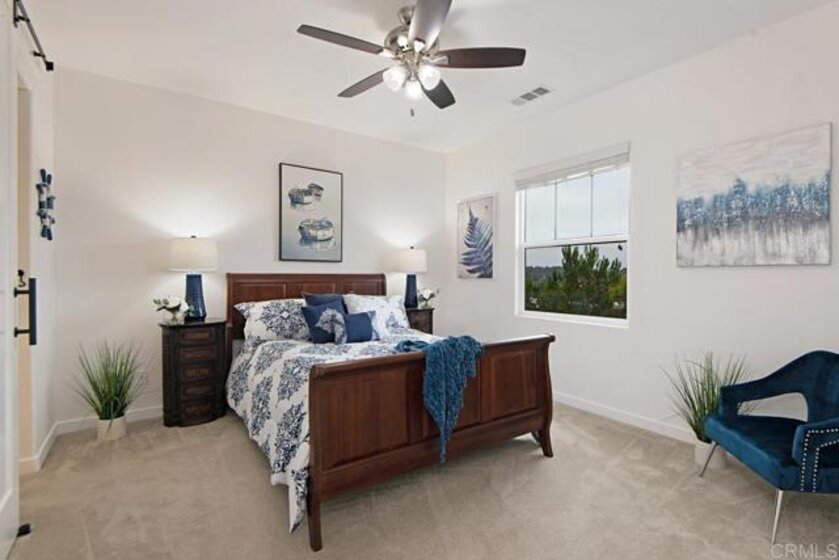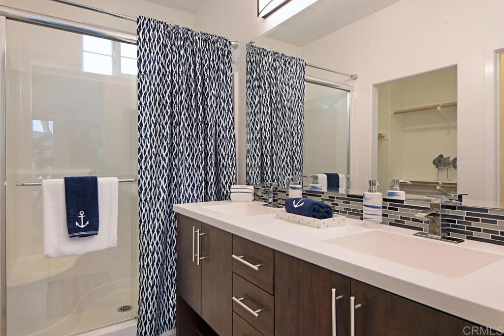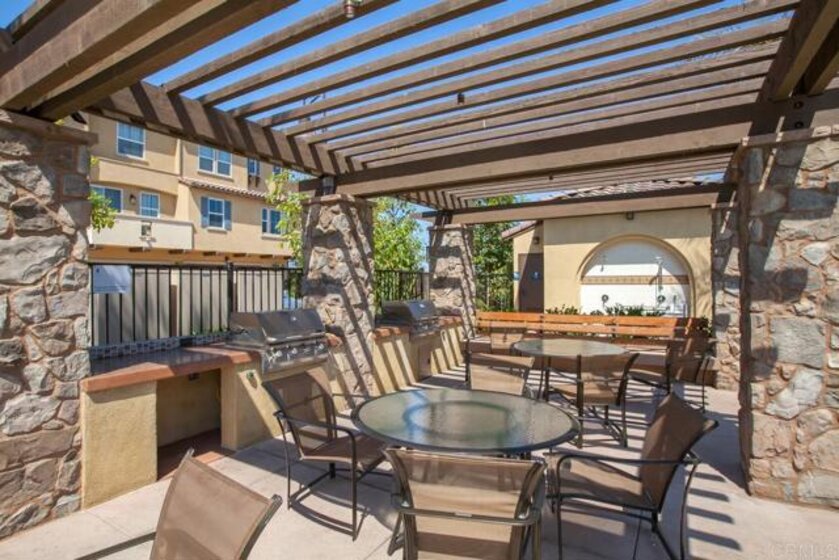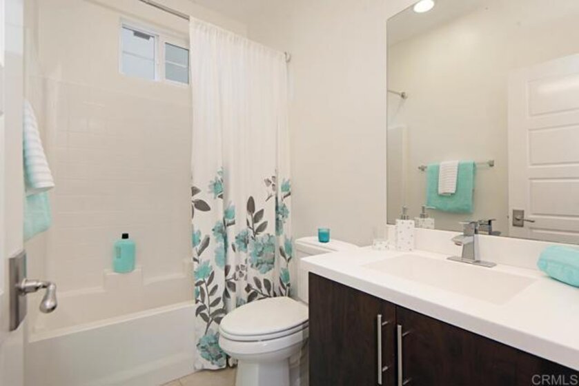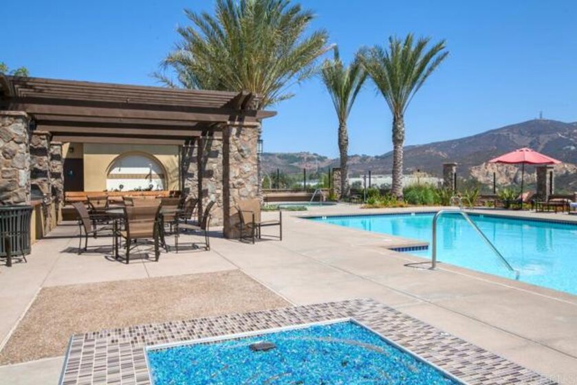 Finally, a Prime corner location with Stunning Mountain Views and a Great Pool and community area. 1 of only 6 units that have a downstairs porch, private sidewalk to entry, and those great views. 3 bedrooms, 2.5 baths, this 1201sf Beautiful Townhome has a direct access 2 car oversized garage. No neighbors above or below you. Built in 2013, it has been freshly painted with soft white custom paint and features dual pane windows, a tankless water heater, high-speed CAT 5 wiring, SmartHome Control 4 System, AC, SS appliances including a double door refrigerator. The Main level has open concept living room/dining room, kitchen, a bedroom with a close-by ½ bath. There is also a newer stacked large W/D in laundry closet, and a private view balcony. The kitchen features a separate pantry and island with breakfast bar seating overlooking the open living and dining area. Granite counters, designer backsplash and modern cabinets are in kitchen and baths, ceiling fans in all bedrooms and living area. The top floor features a Master bedroom with sensational views, dual sinks in bath, walk in closet and separate loo. There is a 3rd bedroom with views, and a stylish full hall bath. You will love this home for many reasons: Only minutes to I-5 & Encinitas/Carlsbad beaches. Low $217 HOA, and $930 yearly Mello Roos. Smart Home offers a coded smart front door lock, outside camera and smart monitor in the Master bedroom. This Solaire Community within Old Creek Ranch offers a large private community pool, spa, barbecue areas & gas fire pit with mountain views. Just step out the community gate to enjoy over 1,000 acres of open space and 19 miles of hiking/biking trails. This master planned community near San Elijo Hills provides easy access to all major freeways and beaches. The Award-winning local schools include: Rancho Carrillo Elementary School, San Elijo Middle School and San Marcos High School. Enjoy Morning breakfast at Mariah’s or just 2.4 miles west to the La Costa Town Square where you will find marketing at VONS, visit Petco, 24 hr fitness, Michaels, Jamba Juice, Chipotle, Jersey Mikes, Walgreens, Banks, Starbucks, movies at the Cinepolis, and much more. Wow! It's your lucky day.