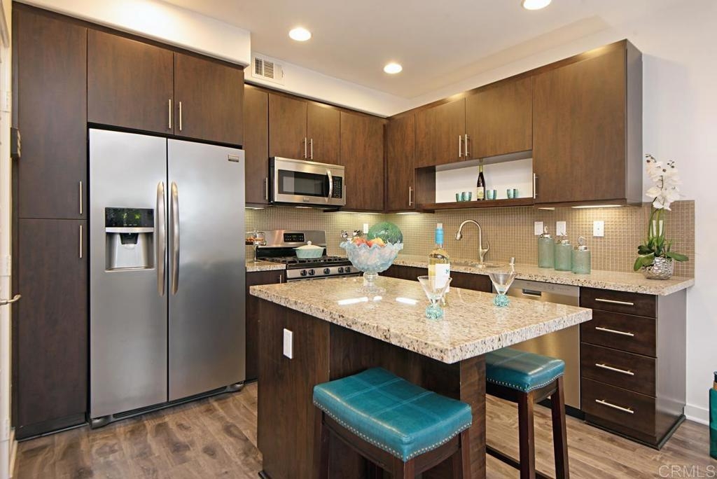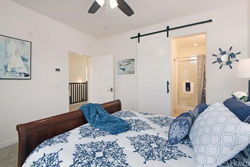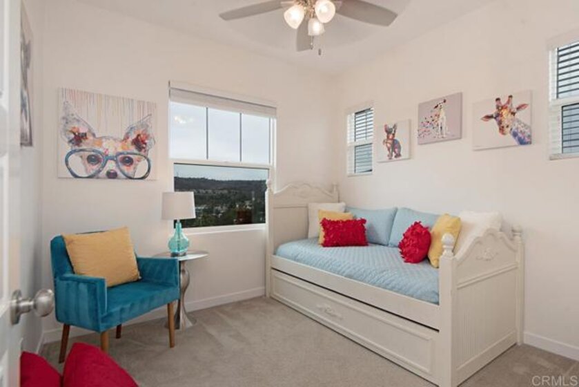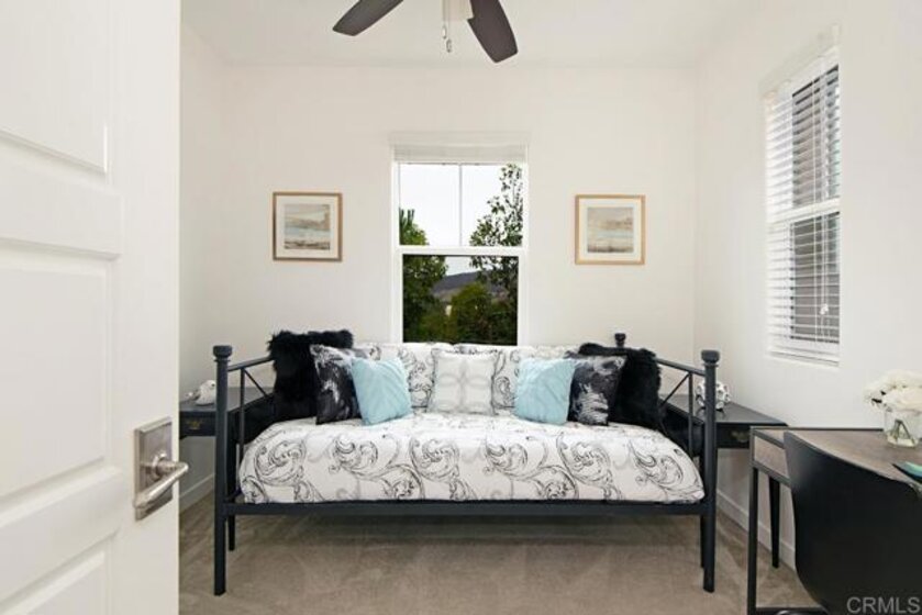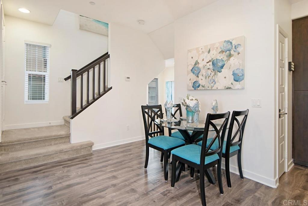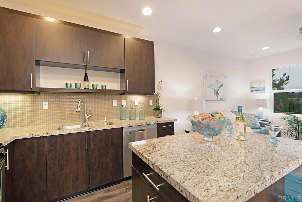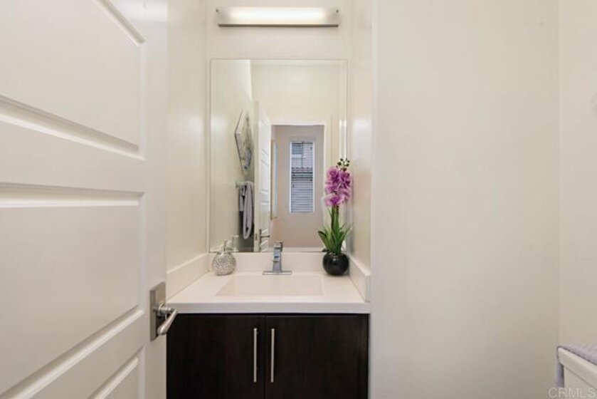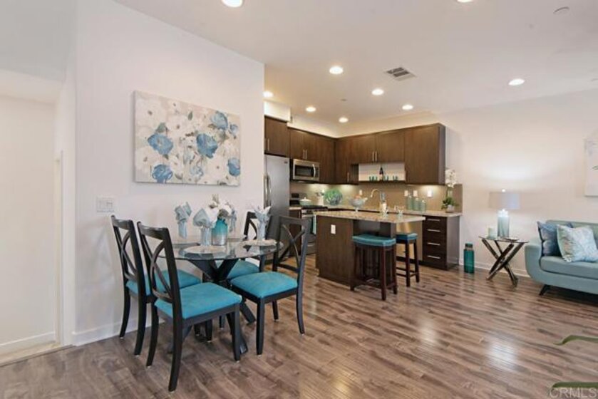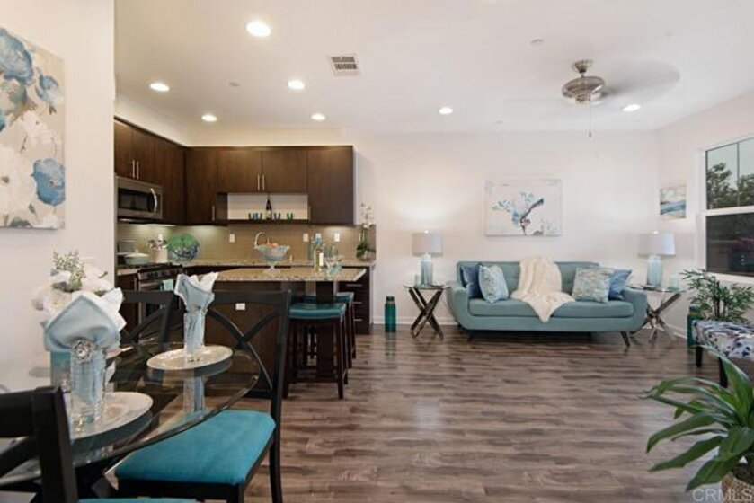 Finally, a Prime corner location with Stunning Mountain Views and a Great Pool and community area. 1 of only 6 units that have a downstairs porch, private sidewalk to entry, and those great views. 3 bedrooms, 2.5 baths, this 1201sf Beautiful Townhome has a direct access 2 car oversized garage. No neighbors above or below you. Built in 2013, it has been freshly painted with soft white custom paint and features dual pane windows, a tankless water heater, high-speed CAT 5 wiring, SmartHome Control 4 System, AC, SS appliances including a double door refrigerator. The Main level has open concept living room/dining room, kitchen, a bedroom with a close-by ½ bath. There is also a newer stacked large W/D in laundry closet, and a private view balcony. The kitchen features a separate pantry and island with breakfast bar seating overlooking the open living and dining area. Granite counters, designer backsplash and modern cabinets are in kitchen and baths, ceiling fans in all bedrooms and living area. The top floor features a Master bedroom with sensational views, dual sinks in bath, walk in closet and separate loo. There is a 3rd bedroom with views, and a stylish full hall bath. You will love this home for many reasons: Only minutes to I-5 & Encinitas/Carlsbad beaches. Low $217 HOA, and $930 yearly Mello Roos. Smart Home offers a coded smart front door lock, outside camera and smart monitor in the Master bedroom. This Solaire Community within Old Creek Ranch offers a large private community pool, spa, barbecue areas & gas fire pit with mountain views. Just step out the community gate to enjoy over 1,000 acres of open space and 19 miles of hiking/biking trails. This master planned community near San Elijo Hills provides easy access to all major freeways and beaches. The Award-winning local schools include: Rancho Carrillo Elementary School, San Elijo Middle School and San Marcos High School. Enjoy Morning breakfast at Mariah’s or just 2.4 miles west to the La Costa Town Square where you will find marketing at VONS, visit Petco, 24 hr fitness, Michaels, Jamba Juice, Chipotle, Jersey Mikes, Walgreens, Banks, Starbucks, movies at the Cinepolis, and much more. Wow! It's your lucky day.