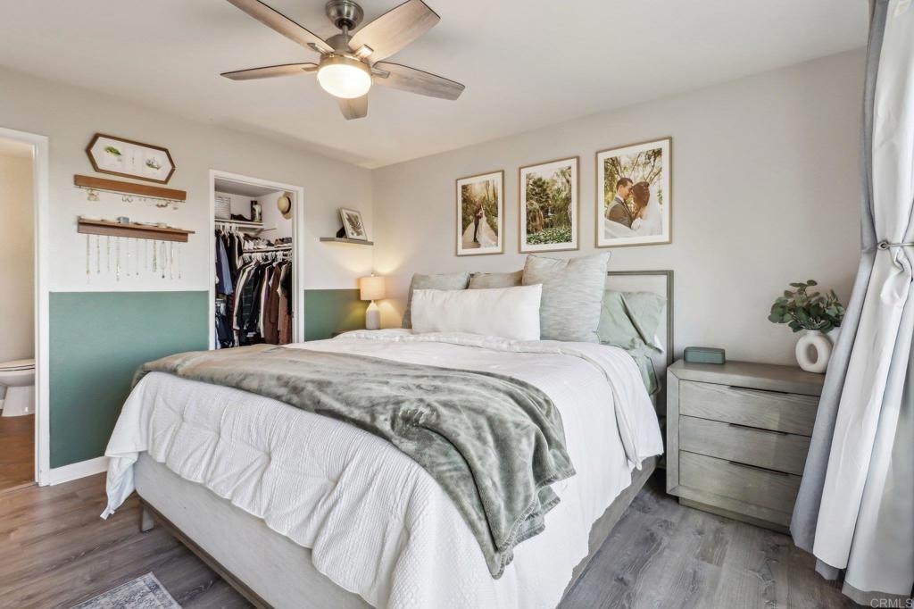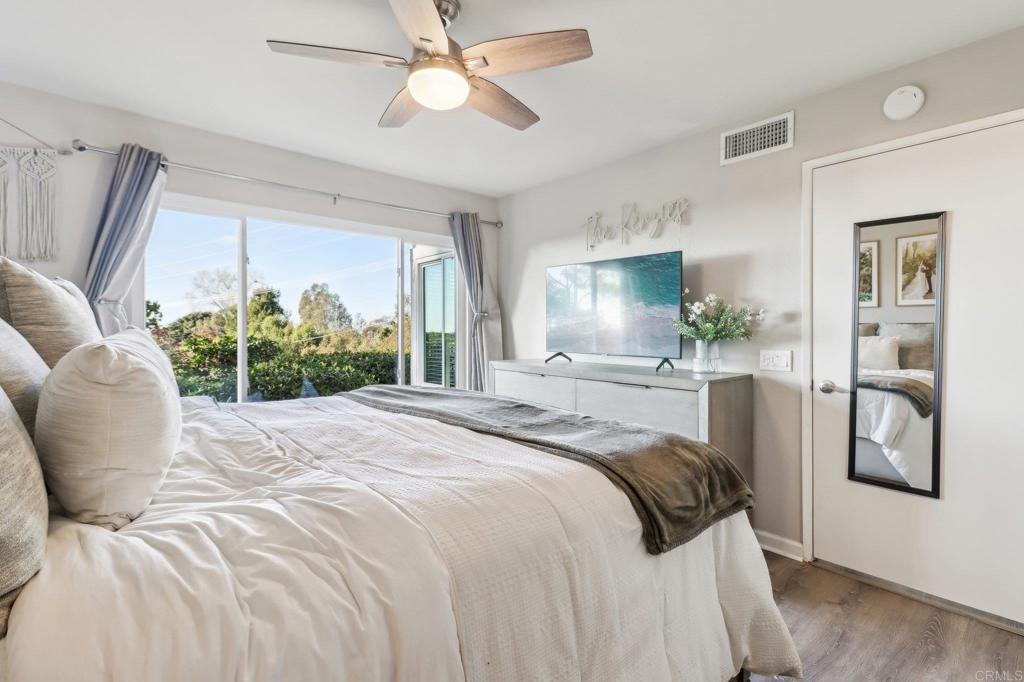 Stunning Ocean & Mountain View Condo in Sommerset, San Marcos!Discover this beautifully upgraded 2-bed, 2-bath condo in the highly sought-after Sommerset community. Enjoy breathtaking ocean and mountain views from your spacious patio. Inside, the open-concept design feels bright and modern, featuring luxury vinyl plank flooring and upgraded recessed lighting. The kitchen is equipped with stainless steel appliances, granite countertops, and white shaker cabinets. The primary suite offers incredible views, abundant natural light, and a spacious walk-in closet. The second bedroom is generously sized—perfect for guests, a home office, or a kids' space. A convenient hallway closet provides in-unit laundry and extra storage. This home includes a detached one-car garage plus an additional assigned parking spot. Community amenities feature a pool, tennis courts, a clubhouse/gym, and picnic areas. Located near top-rated schools, shopping, and freeway access—this is a must see!