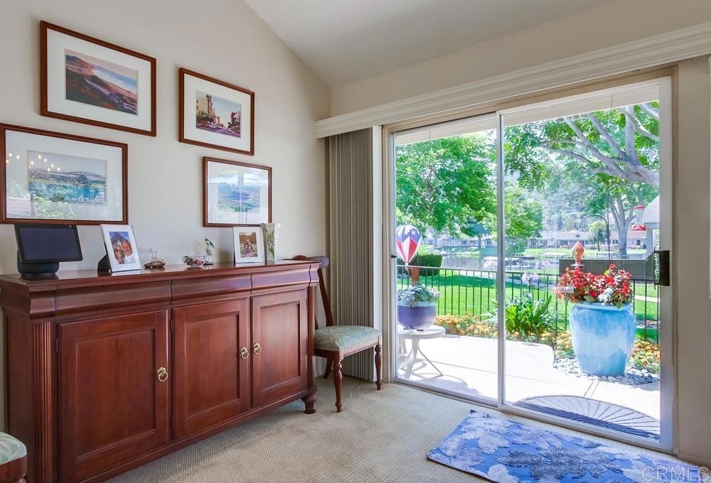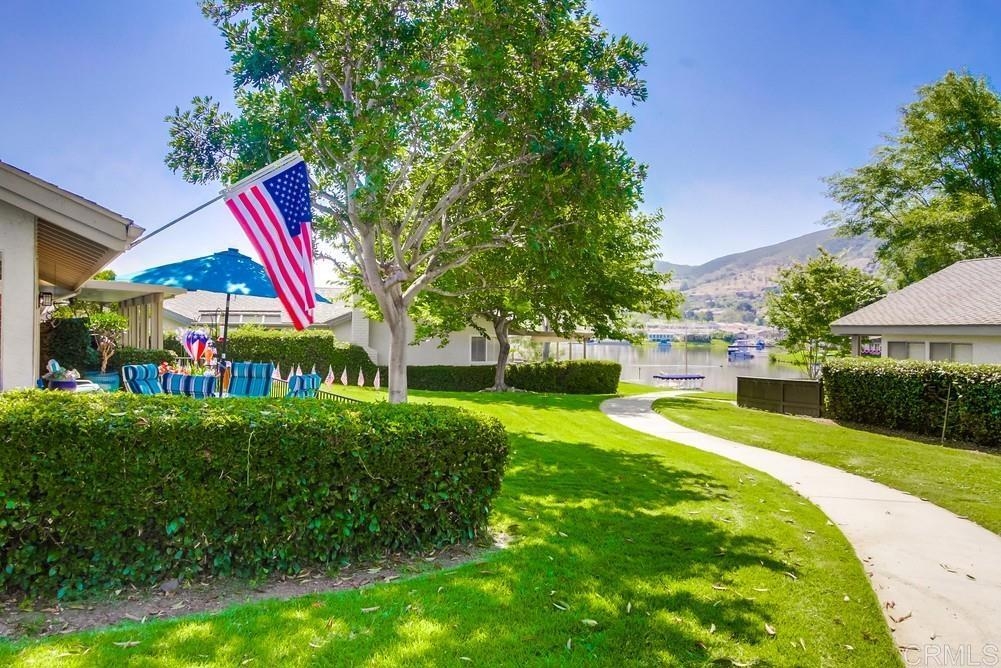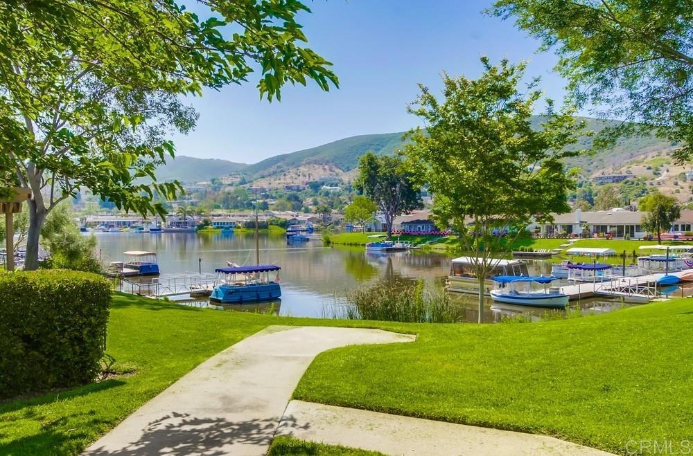 Peaceful lake & mountain views from the comfort of your living room, kitchen and patio await! Welcome to one of the best kept secrets within Lake San Marcos, Sunrise Pointe. Immaculatly maintained grounds and spacious greenbelts wandering throughout create a resort-like feel while also remaining around 10 miles from arguably the best beaches in the county. The Lake San Marcos community has become increasingly in demand with multiple highly rated restaurants, two golf courses, tennis & pickleball courts, along with available private boat docks all within walking distance of your font door. This two bedroom, two full bath twinhome only shares one wall with neighbor, and offers a premium location with water and lake views off the backside of the unit. Entering the property, you're greeted by soaring ceilings and an open living and dining room. Windows line the back of the home to highlight the views. The kitchen, though dated, offers plenty of potenial with it's spacious layout and access to the outdoor patio. A central atrium allows plenty of natural light and offers the potential to be enclosed for added sqare footage for use of a den or office. Each of the two bedrooms has a connected full bathroom and a sliding glass door to a common entry patio. Additonal features include a large two car attached garage, wrap around patio, central AC, full size laundry closet in hallway, and extended driveway for additional parking. The HOA includes exterior maintenance and front yard maintenance. Just a stones throw away from the Lake, this one won't last long!