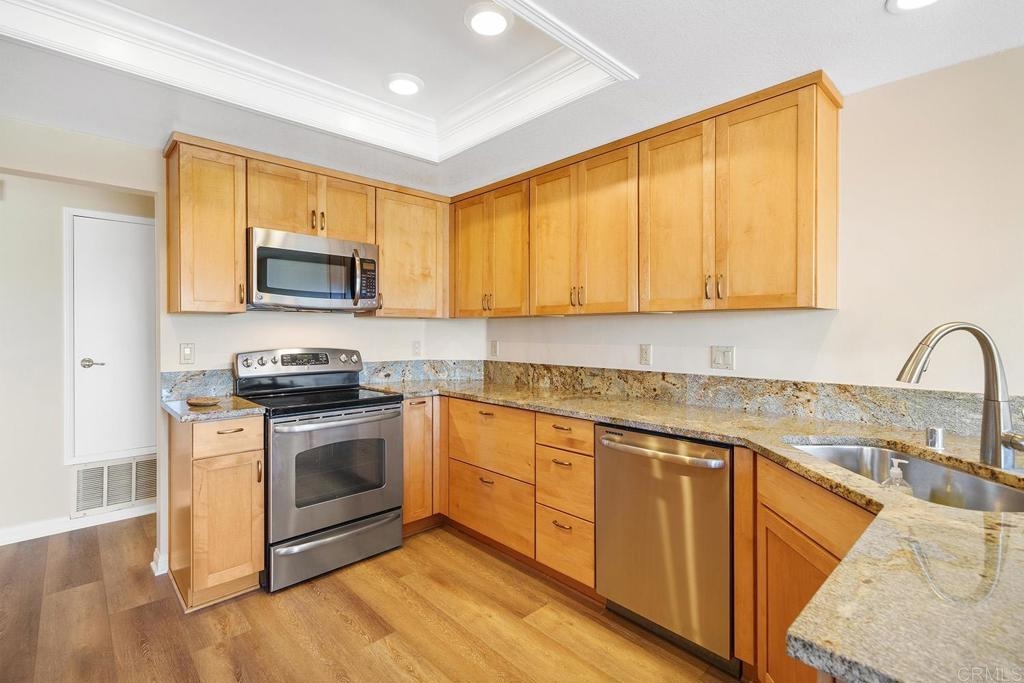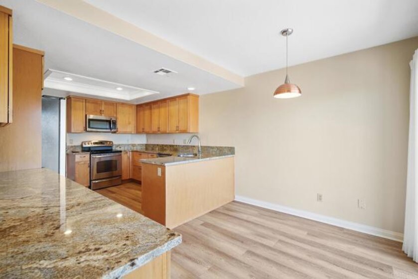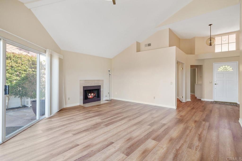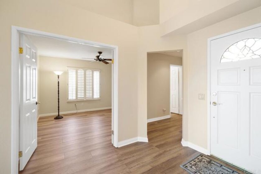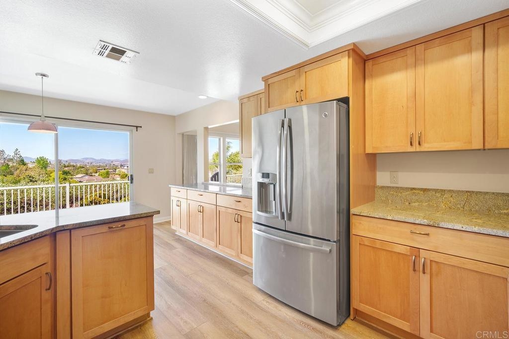 This is an absolutely beautiful single level home in the Colony subdivision, located in the Lake San Marcos Community. Outstanding elevated panoramic views of mountains, hills, golf course and a peek of the lake. This home has a a elegant modern style with high ceilings and an open floor plan. The interior of the home has just been completely painted and new beautiful flooring has just been installed. The kitchen has really nice granite with stainless steel appliances. The kitchen cabinets have roll out shelving and are in great conditioning. Kitchen allows for great views while preparing to entertain your guests. There is a wonderful fireplace and a two car garage. The back patio is perfect for a BBQ and entertaining your guests. The landscaping is really nice. Please note Lake San Marcos community has 2 golf courses, tennis/pickle ball courts, water sports, pool, picnic area, gym and workout area. This home is great, come quick it will not last.
