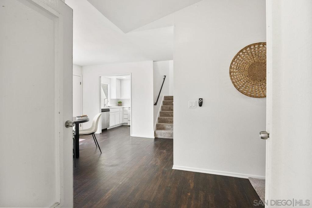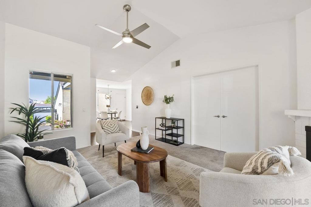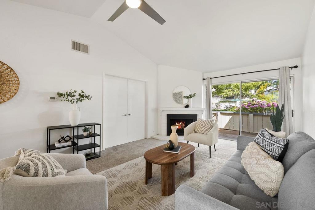 Freshly updated and full of charm, this FHA/VA approved 3-bedroom, 2-bath townhouse is ideally located in the heart of San Marcos. With 1,511 sq ft of living space, the open-concept layout features vaulted ceilings, stainless steel appliances, and an entry-level bedroom, offering flexibility and flow. Enjoy two private, gated outdoor areas, a courtyard between the home and detached 2-car garage, and a patio off the living room with views of the community pool. Upstairs offers two additional bedrooms, a full bath, and a built-in office nook, perfect for work or study. Recent updates include newer central A/C, fresh paint, and stainless steel appliances (2021), including a side-by-side washer/dryer, fridge, and dishwasher. Located just minutes from shops, schools, and freeways, this home blends comfort, convenience, and everyday ease. Some of the photos have been virtually staged (2 upstairs bedrooms and front patio).