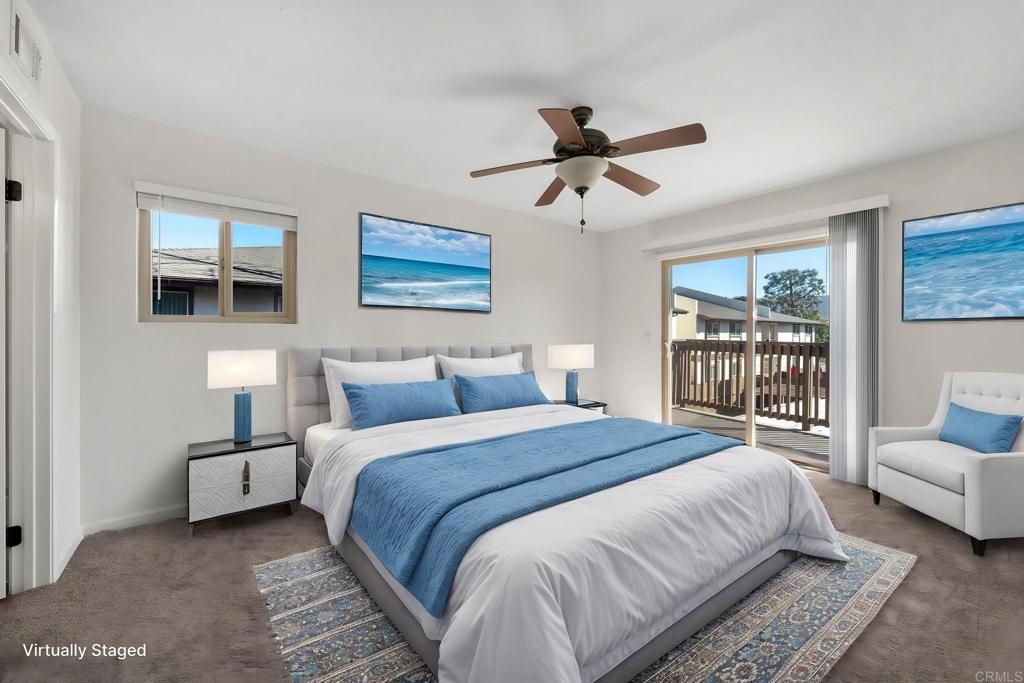 Welcome to this stunning turn-key unit in the highly sought-after Westlake Ranch community! This spacious 2-bedroom, 2.5-bathroom end unit boasts a bright and airy layout, perfect for comfortable living. Enjoy two generously sized bedrooms, including a primary suite with a private balcony, ideal for morning coffee or evening relaxation. This home has been fully updated with all-new carpet, fresh interior paint throughout (including doors, closets, ceilings, and baseboards), and brand-new appliances. Along with an inviting enclosed front porch and a small side yard, perfect for enjoying the beautiful San Marcos weather. Check out the hard to come by in unit laundry as well as 2 designated parking spots directly in front of the unit. One covered spot and one uncovered spot which are side by side. Enjoy all the community HOA has to offer including, water, sewer, trash, a gym, pool, hot tub, and lastly a community room! Located just steps away from Connors Park, as well as shopping and dining options, this unit offers both convenience and tranquility. The end unit design ensures added privacy and a peaceful atmosphere, situated away from the street. Don’t miss out on this incredible opportunity to own a beautiful home in a prime location!