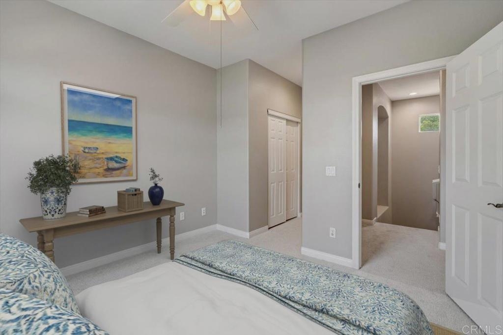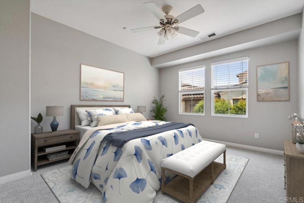 Welcome to this beautiful townhome in the heart of San Elijo Hills, where comfort, style, and convenience come together seamlessly. Thoughtfully designed, this home features two spacious upstairs primary suites—each with its own ensuite bath—and an open-concept layout ideal for modern living. Highlights include gorgeous wood flooring, new carpet, fresh paint, and a gourmet kitchen with stainless steel appliances, granite countertops, and ample cabinetry. Step outside to a private backyard living space, perfect for year-round entertaining. Situated in a meticulously maintained community with a resort-style pool, this home is just steps from parks, ball fields, and scenic trails. You'll love the proximity to top-rated schools, charming shops, local dining, and easy access to major freeways, top employers, and North County’s best beaches. This is a fabulous opportunity to own a beautifully upgraded home in one of the most desirable neighborhoods in the area.