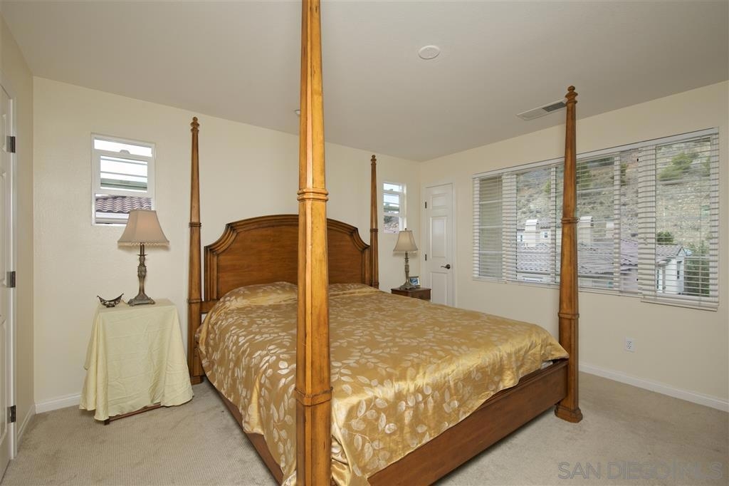 End unit with views of the hills. Located in the gated Westridge community of San Elijo Hills this immaculate property features an open concept floor plan with stylish laminate flooring in the living and dining rooms, S/S appliances, high ceilings & a cozy fireplace. The third floor master suite has a spacious bath and walk in closet. Enjoy the views of the hills from the covered private balcony located off the dining area. Community pool/spa. Walk to the parks, schools, town center and restaurants. Equipment: Dryer,Garage Door Opener, Washer Other Fees: 0 Sewer: Sewer Connected, Public Sewer Topography: LL