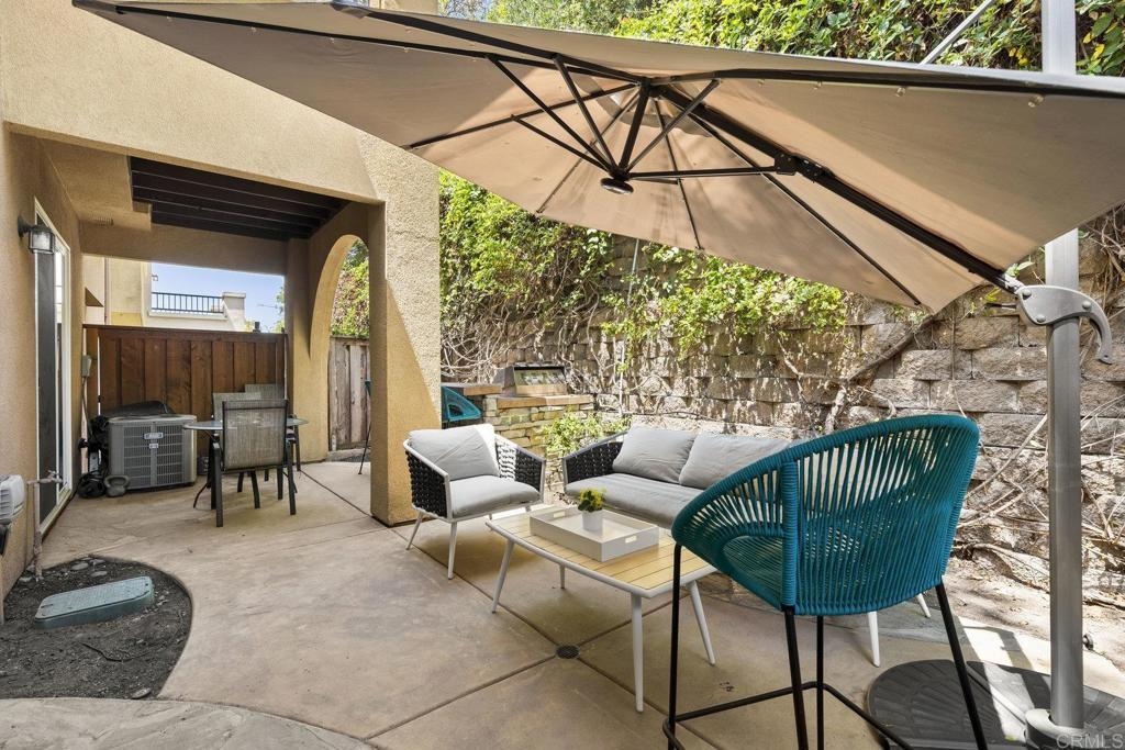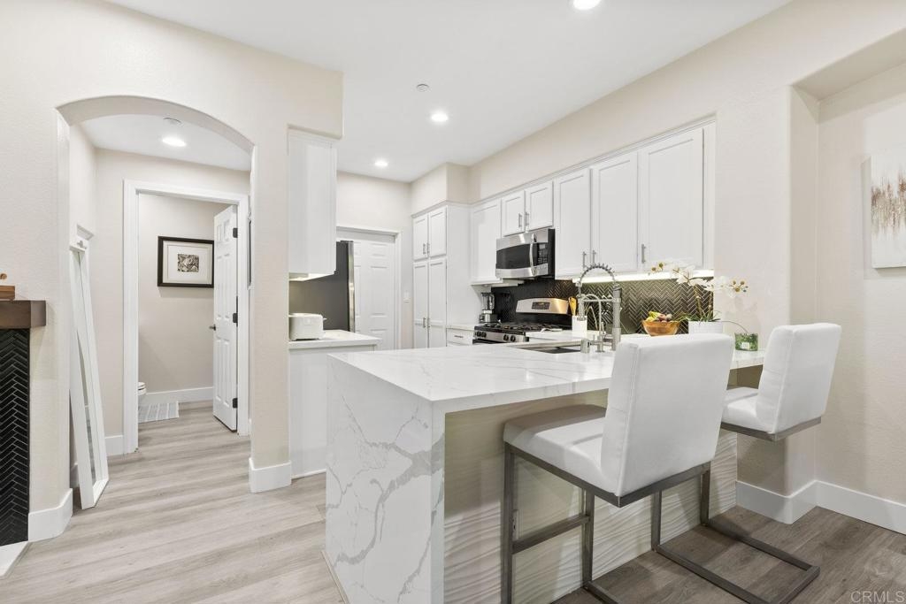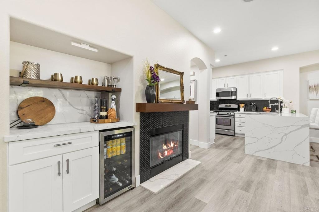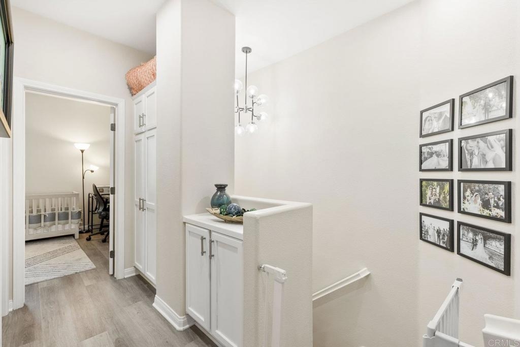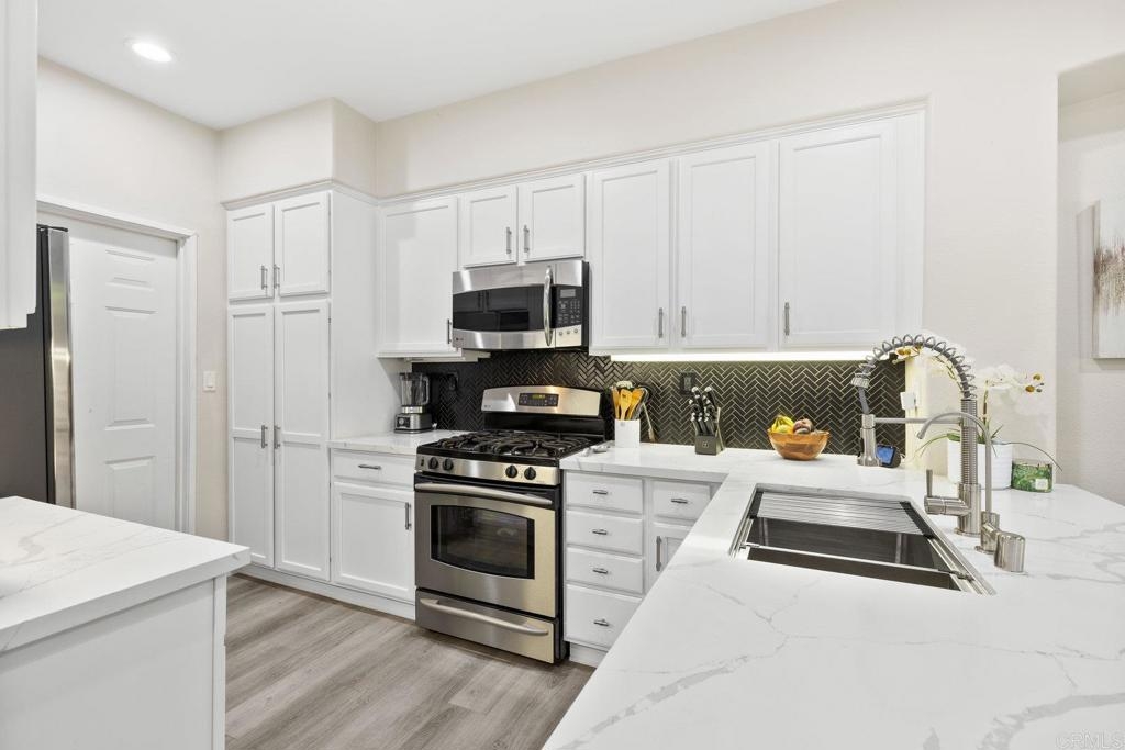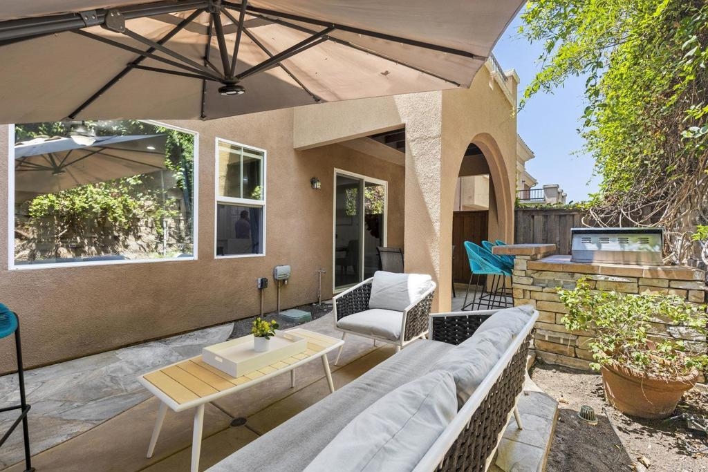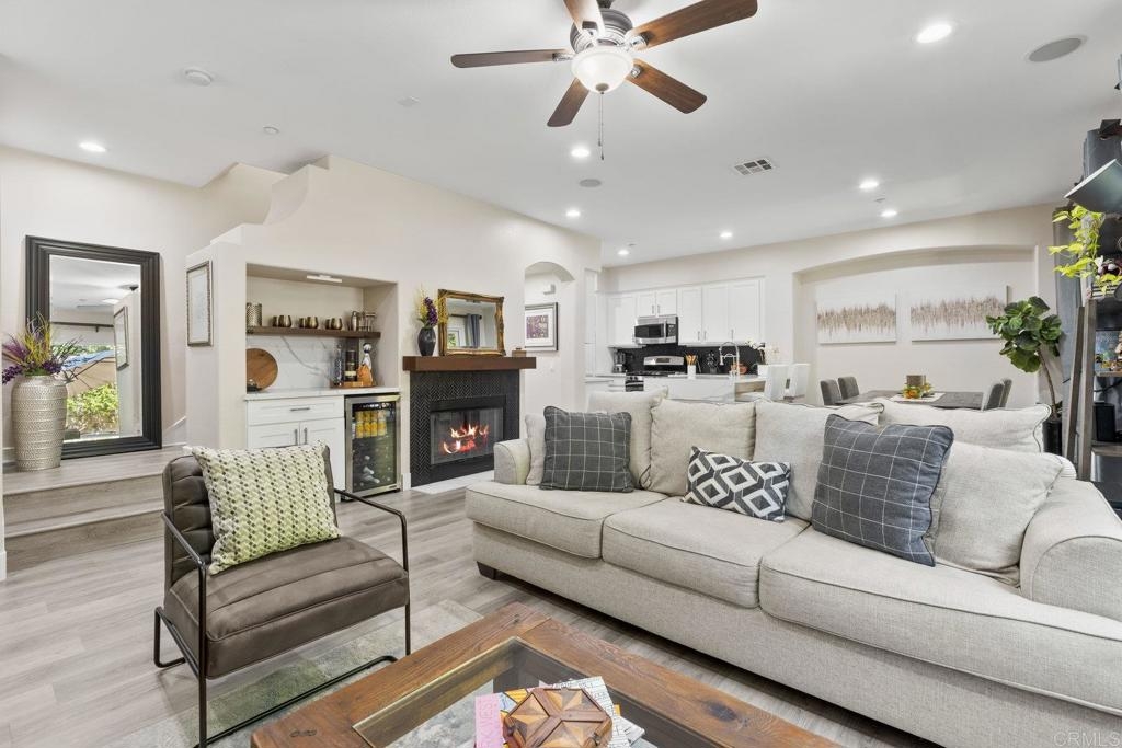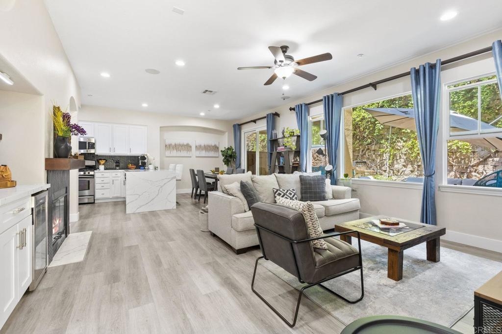 Upgraded San Elijo Townhome in a Perfect Location! This spacious open concept home flooded with natural light and ocean breezes is a must see in the highly sought after gated neighborhood of Westridge Village. Prime location in the heart of San Elijo Hills right near parks, town center, and top rated schools! Entertain friends or retreat to the sparkling resort style pool oasis and spa just a moment's stroll away but with enough distance to not hear any noise - a perfect balance! Sip a cup of morning coffee in your backyard or relax at night with a glass of wine from your second story master deck where you can watch the beautiful sunsets and catch an Ocean View. As you walk into the flowing floor plan, you cannot miss the high end updates that shine throughout the home featuring gorgeous luxury vinyl plank floors, ceramic herringbone fireplace, and newly built quartz mini bar with floating shelves and mini fridge. Sunlight fills the living room through a wall of windows. The chef's kitchen features stunning Carrara quartz countertops with waterfall edge, stainless appliances, large undermount sink, white soft close cabinets, and porcelain plank designer tile under the bar sitting area that creates a seamless flow throughout the home. You have plenty of outdoor space in your backyard showcasing a ledgestone built-in BBQ and outdoor eating area perfect for entertaining family and friends. The guest bath features a beautiful quartz vanity. Upstairs you will find additional rooms with a Jack and Jill bathroom, large linen closet, and views of greenery with natural light throughout. The master bath features a large walk-in closet, slate flooring, and dual vanity. Stroll by the San Elijo fountain to grab a cup of coffee, pick up groceries, or visit the local brewery. Open your front door and you are only steps away to dining at local restaurants or taking art and exercise classes. The community park right outside Westridge hosts summer movies in the park, weekend sports, holiday events, and more. Additional highlights include new hardware, owned water softener, recessed lighting with dimmers, designer window coverings, surround sound, custom chandelier, ceiling fans, and one-click gas fireplace. One of the closest neighborhoods in all of San Elijo Hills to the Elementary school makes this home a great long term investment! You will love this turn-key ready Westridge home in a perfect location! Just 8 miles to the beach and minutes to Cal State San Marcos! Conveniently close to the incredible amenities of living in the San Elijo Hills community: lighted ballparks, soccer fields, picnic tables, BBQ's, playgrounds, dog park, splash ground, community center, all within walking distance! Enjoy the new restaurants and shops along with 18 miles of trails, 19 acres of parks, & 1000 acres of open space. Zoned for award winning San Elijo Elementary, San Elijo Middle and San Marcos High School.