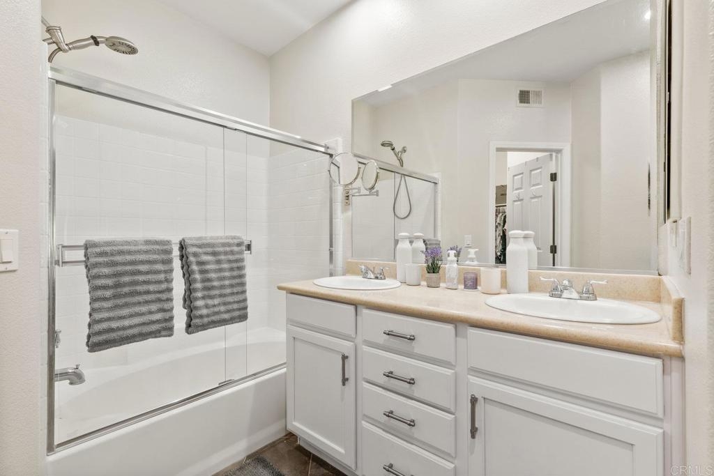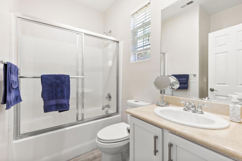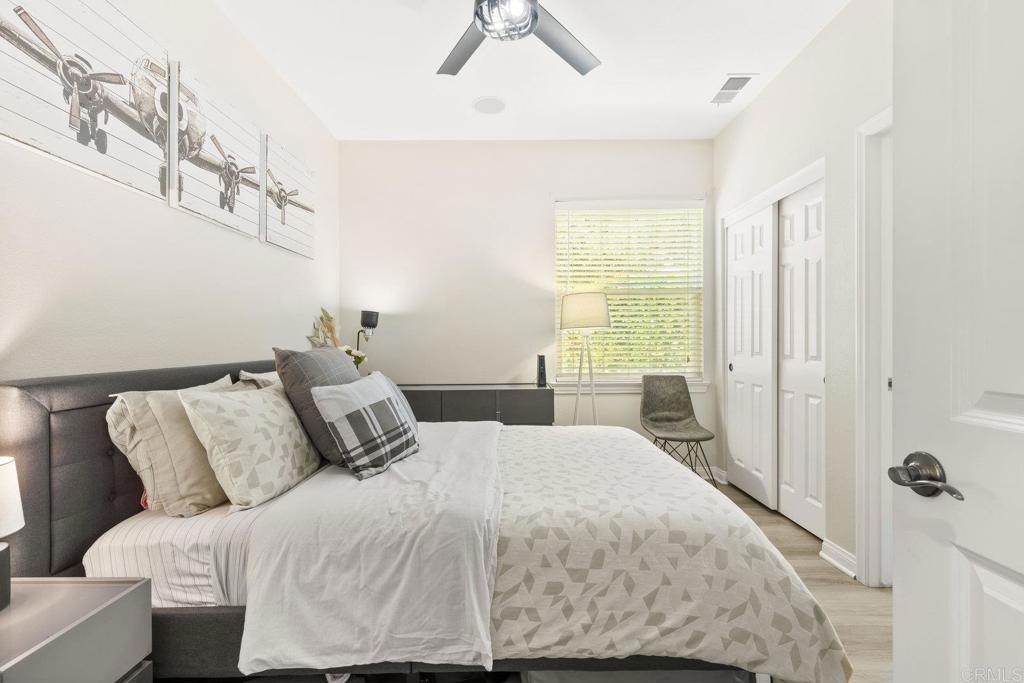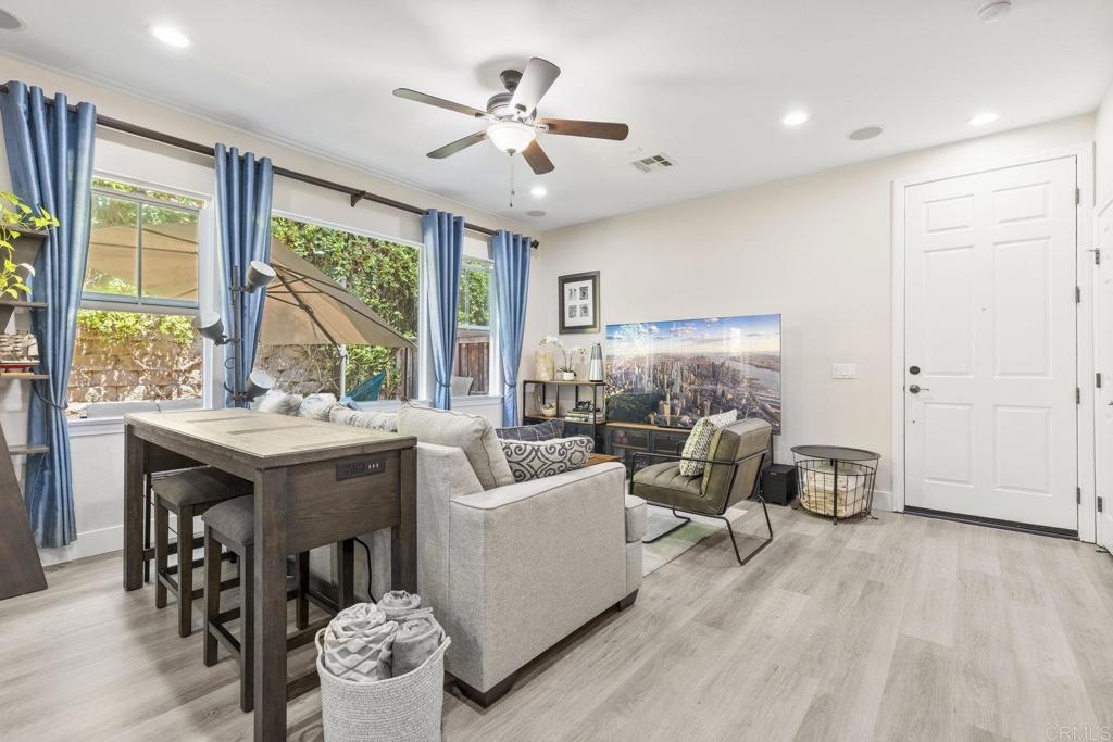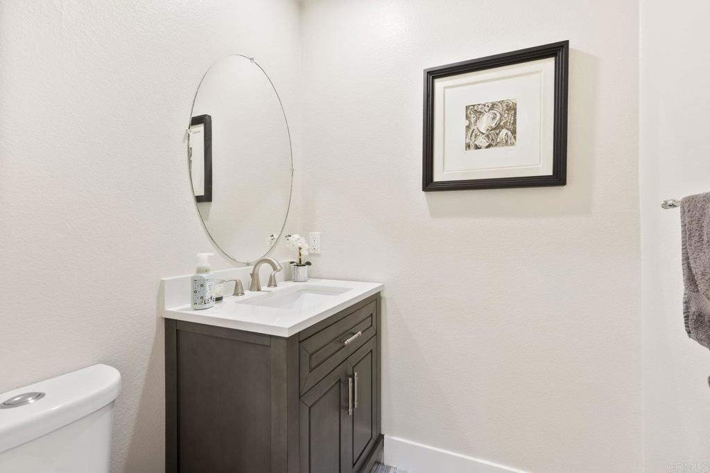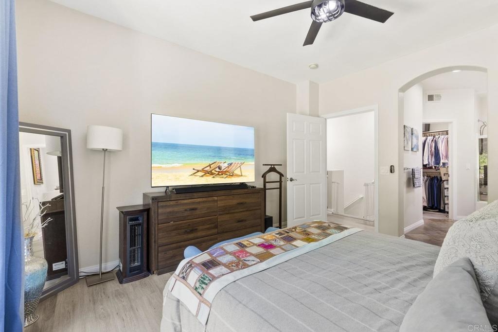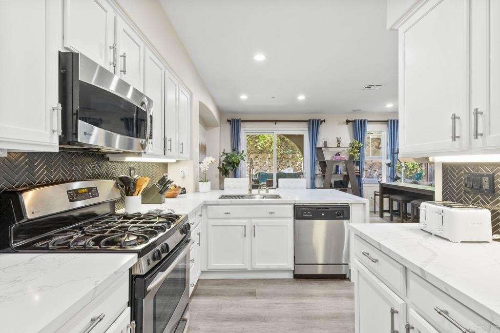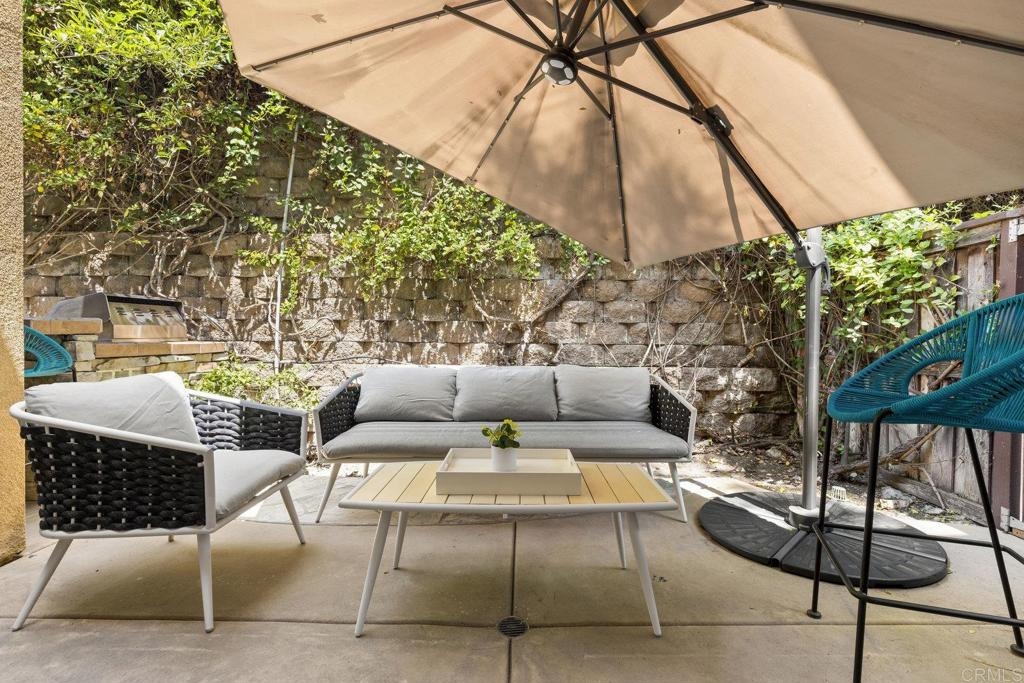 Upgraded San Elijo Townhome in a Perfect Location! This spacious open concept home flooded with natural light and ocean breezes is a must see in the highly sought after gated neighborhood of Westridge Village. Prime location in the heart of San Elijo Hills right near parks, town center, and top rated schools! Entertain friends or retreat to the sparkling resort style pool oasis and spa just a moment's stroll away but with enough distance to not hear any noise - a perfect balance! Sip a cup of morning coffee in your backyard or relax at night with a glass of wine from your second story master deck where you can watch the beautiful sunsets and catch an Ocean View. As you walk into the flowing floor plan, you cannot miss the high end updates that shine throughout the home featuring gorgeous luxury vinyl plank floors, ceramic herringbone fireplace, and newly built quartz mini bar with floating shelves and mini fridge. Sunlight fills the living room through a wall of windows. The chef's kitchen features stunning Carrara quartz countertops with waterfall edge, stainless appliances, large undermount sink, white soft close cabinets, and porcelain plank designer tile under the bar sitting area that creates a seamless flow throughout the home. You have plenty of outdoor space in your backyard showcasing a ledgestone built-in BBQ and outdoor eating area perfect for entertaining family and friends. The guest bath features a beautiful quartz vanity. Upstairs you will find additional rooms with a Jack and Jill bathroom, large linen closet, and views of greenery with natural light throughout. The master bath features a large walk-in closet, slate flooring, and dual vanity. Stroll by the San Elijo fountain to grab a cup of coffee, pick up groceries, or visit the local brewery. Open your front door and you are only steps away to dining at local restaurants or taking art and exercise classes. The community park right outside Westridge hosts summer movies in the park, weekend sports, holiday events, and more. Additional highlights include new hardware, owned water softener, recessed lighting with dimmers, designer window coverings, surround sound, custom chandelier, ceiling fans, and one-click gas fireplace. One of the closest neighborhoods in all of San Elijo Hills to the Elementary school makes this home a great long term investment! You will love this turn-key ready Westridge home in a perfect location! Just 8 miles to the beach and minutes to Cal State San Marcos! Conveniently close to the incredible amenities of living in the San Elijo Hills community: lighted ballparks, soccer fields, picnic tables, BBQ's, playgrounds, dog park, splash ground, community center, all within walking distance! Enjoy the new restaurants and shops along with 18 miles of trails, 19 acres of parks, & 1000 acres of open space. Zoned for award winning San Elijo Elementary, San Elijo Middle and San Marcos High School.