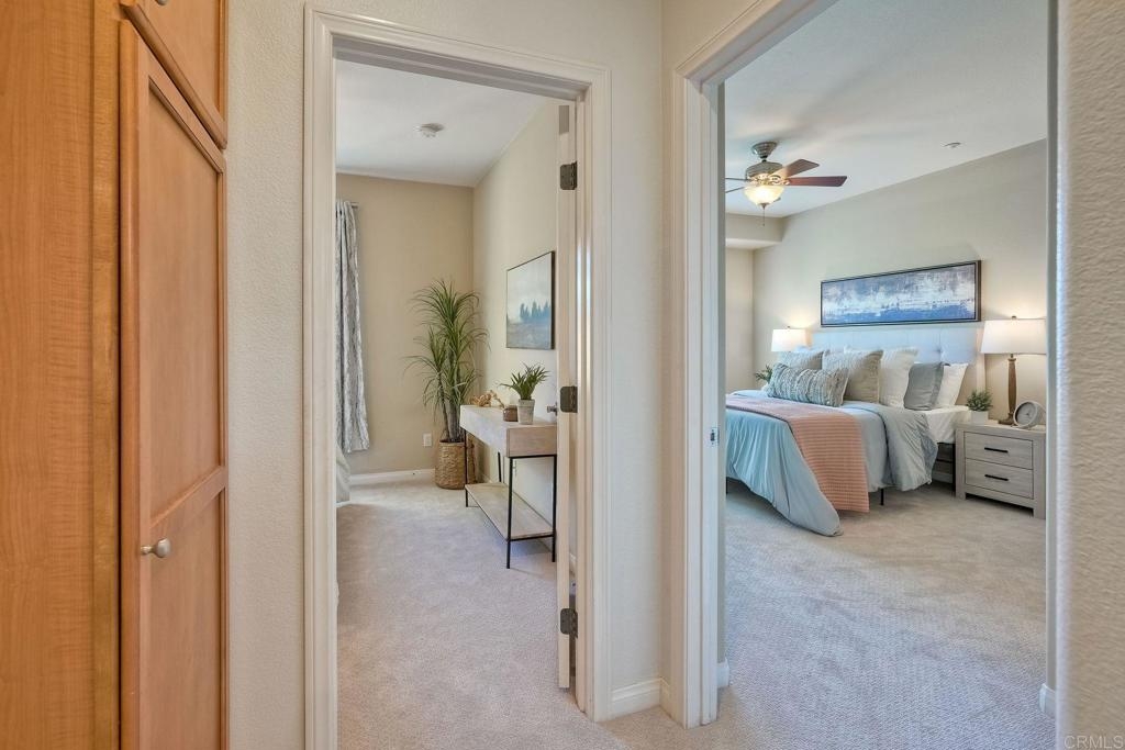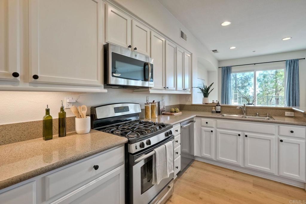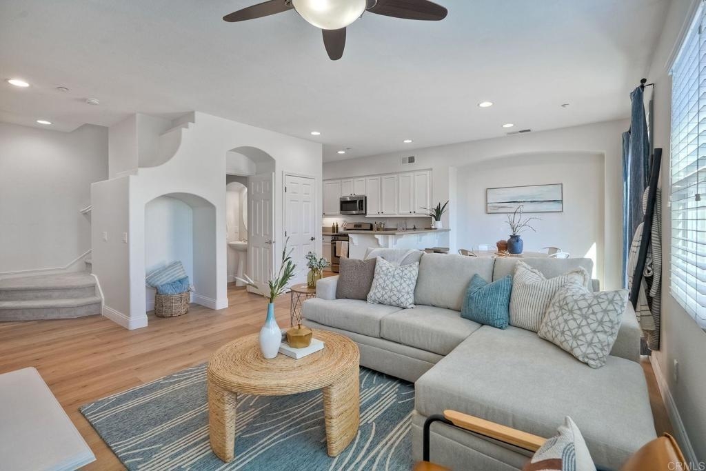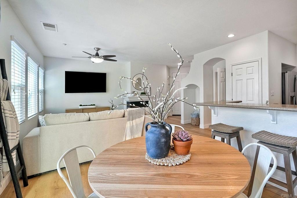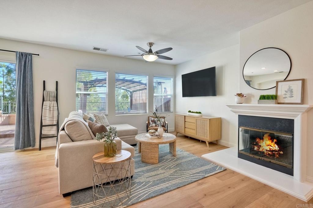 Your chance to own in beautiful San Elijo Hills. More photos March 7. Walk to parks, hiking and biking trails, award winning schools, shopping, parks and recreation and dining. Only 20 minutes to fabulous beaches. This spacious 2 bedroom townhouse features a lovely Primary Bedroom and bathroom with dual sinks. And a second en suite bedroom and bath upstairs. The functional kitchen opens to a family room and a gorgeous outdoor living space that boasts sunset, mountain and peak ocean views. An attached 2 car garage is an added bonus. This is the best affordable option in San Elijo Hills and a beautiful place to call home.