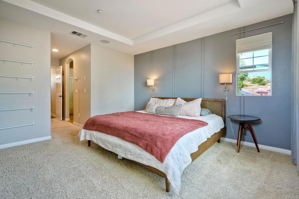 Discover a modern 3-bed, 2-bath, 3-story Westridge townhome in coveted San Elijo Hills. The main level offers two bedrooms, an open-plan kitchen/living area, and a deck. Ascend to the third-floor primary suite with high ceilings and peek-a-boo ocean views. Built in 2004, this gated community features a pool, spa, and BBQ area. Residents enjoy the award-winning town center, top-rated schools, 18 miles of trails, spacious parks, and sweeping ocean-to-mountain vistas including Double Peak Park.