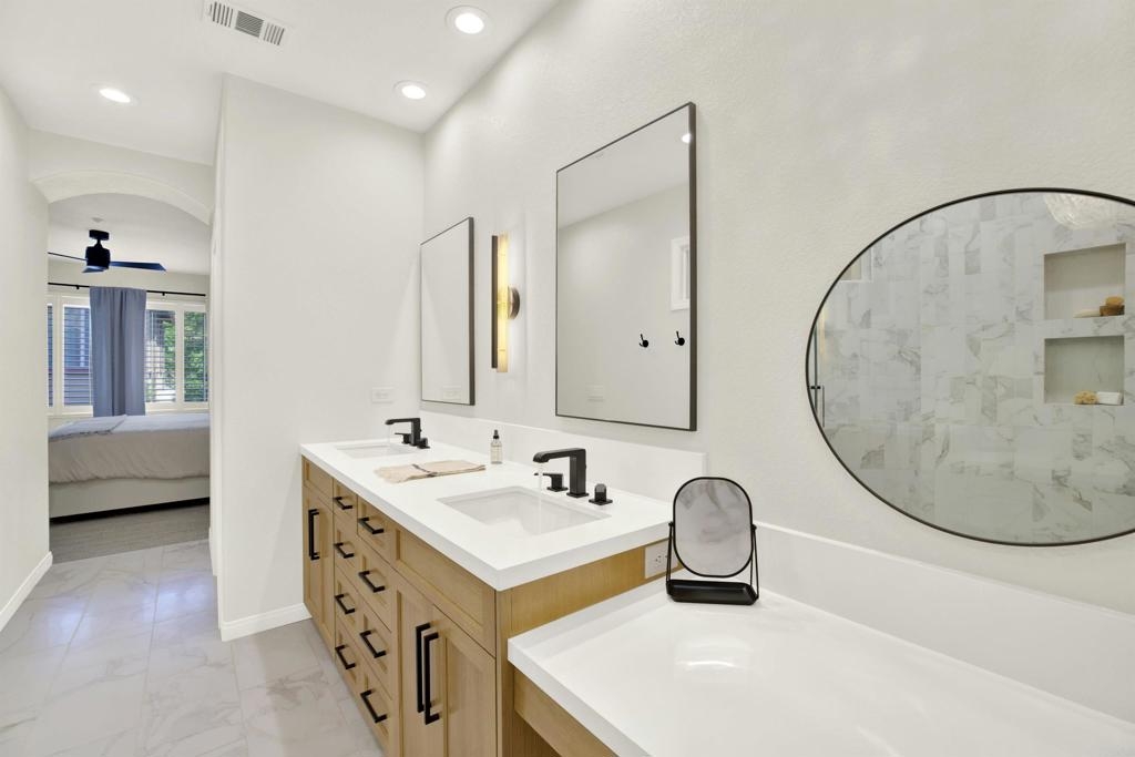 San Elijo Hills living in a fully remodeled Townhome! Upgraded end-unit 3-bedroom, 2.5-bathroom townhome located in the gated community of San Elijo Hills. Remodeled with the help of a professional designer, this home blends timeless style with thoughtful functionality throughout. Downstairs, the expanded, upgraded kitchen features ample storage, sleek finishes, and a seamless flow into the dining and living areas—perfect for daily living and effortless entertaining. A spacious under-stair closet adds flexibility, ideal for coats, extra storage, or even a hidden play nook. Upstairs, all three bedrooms offer comfort and privacy. The gorgeous primary suite includes a spa-like en suite bathroom and a generous walk-in closet, creating a serene retreat. The attached garage is finished with epoxy flooring and abundant built-in storage, making it as functional as it is clean and organized. Outside, enjoy a private backyard that’s just the right size for al fresco dining, playtime, or letting pets roam. Located in a highly sought-after Westridge community with gated access, a pool and spa, and just minutes from San Elijo Park, San Elijo Elementary, and the vibrant town center, this home offers the best of North County living. If you're looking for a home that has it all, style, space, location, and community—this is the one.