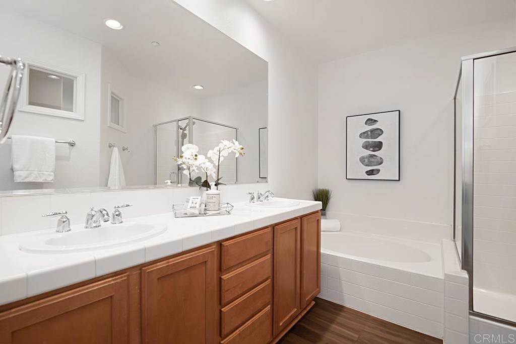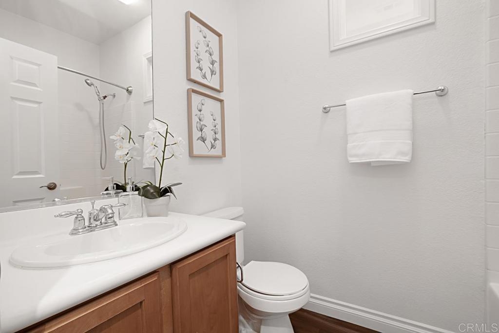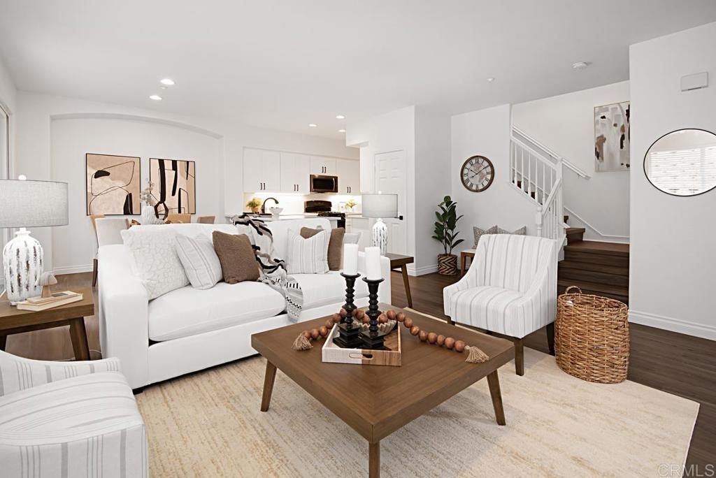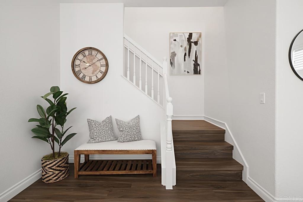 Welcome to your private retreat in the heart of San Elijo Hills! This unique corner-end unit located in the highly sought-after community of West Ridge offers an abundance of warmth and charm. The spacious, light and bright home features 3 bedrooms, 2.5 bathrooms, and attached 2 car garage. Boasting a beautifully upgraded kitchen with new, top-quality cabinetry and an oversized kitchen sink! Additional upgrades include beautiful new "wood-like" flooring throughout that is both stylish and durable. Enjoy the spacious outdoor private patio, great for hosting parties, barbecuing, gardening, or simply relaxing. The private location provides ample parking for guests and family. Embrace the vibrant San Elijo Hills lifestyle all within walking distance to nearby shops, entertainment, scenic trails, and parks. The gated community offers resort-style amenities, including a pool, spa, and additional features, outside the private gates, include a fountain, splash pad, and barbecue area. Enjoy a tranquil living environment close to all + great schools nearby, San Elijo Elementary, San Elijo Middle and San Marcos High School.
