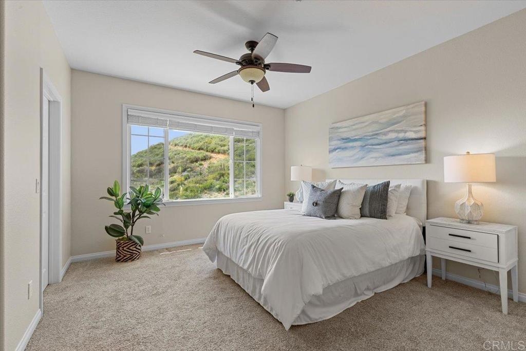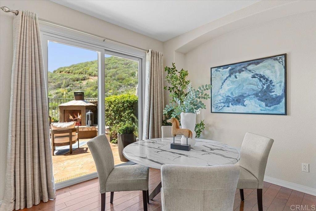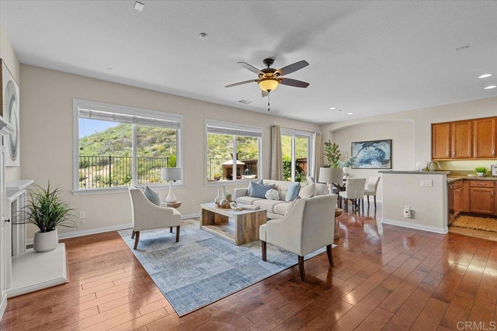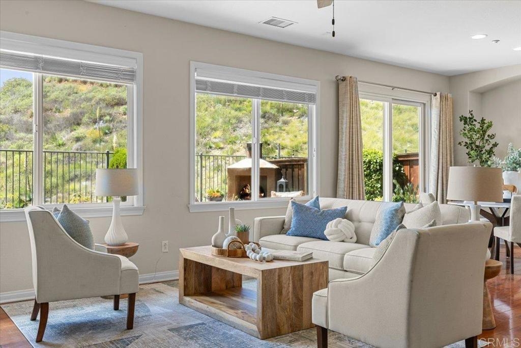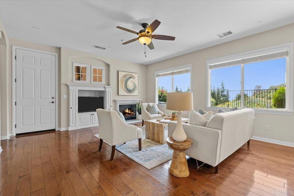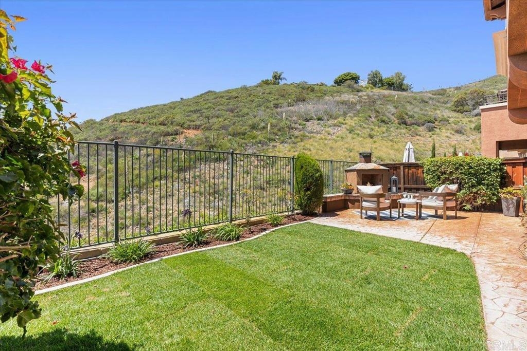 Highly Sought after end unit location overlooking the mountains & city lights in the WestRidge gated community of picturesque San Elijo Hills. This popular two-story townhome features 1,469 square feet with 3 bedrooms, 2.5 bathrooms, a spacious yard with built-in fireplace & endless opportunities for outdoor enjoyment. The open concept floor plan is flooded with natural light & includes a large living room with gas fireplace, hardwood flooring, tumbled travertine, indoor laundry, kitchen with stainless appliances, 2 car attached garage & a generous primary with en-suite bathroom & walk in closet. The gated community offers access to the resort style pool, spa & serene water feature. The development of San Elijo Hills exudes small town charm. Steps away from top-rated San Elijo schools, parks, playgrounds, ball fields, dog park, shops, restaurants, grocery store & access to 18 miles of maintained trails, perfect for outdoor adventures.