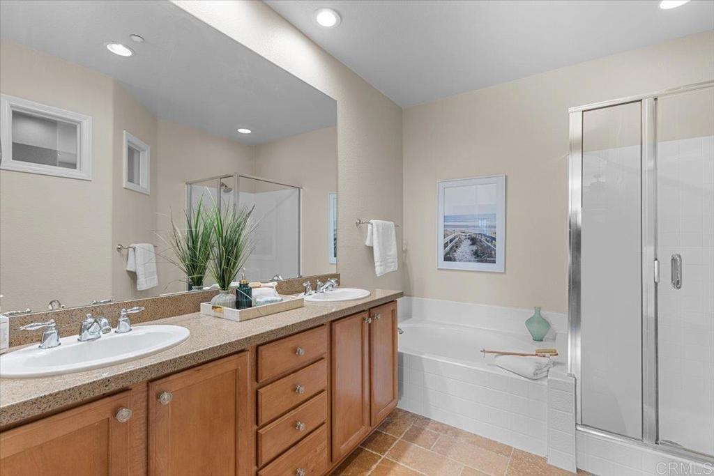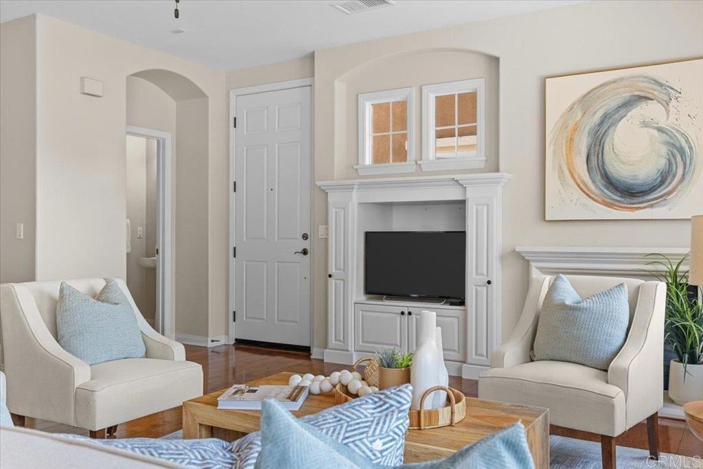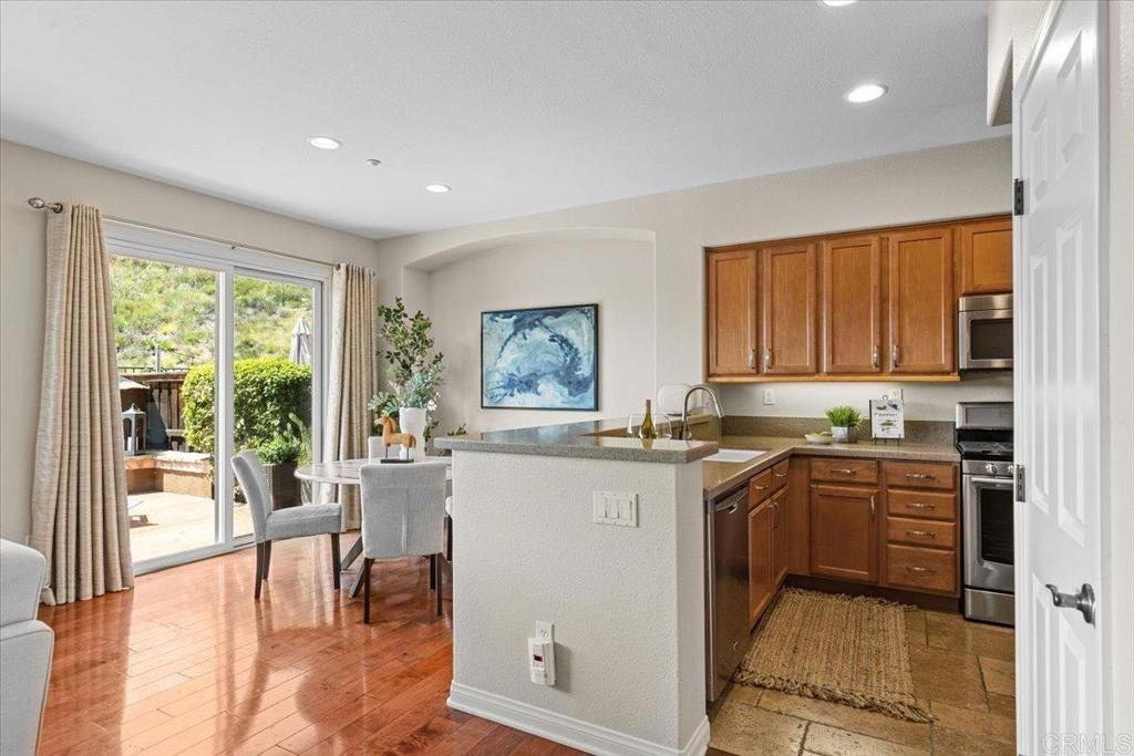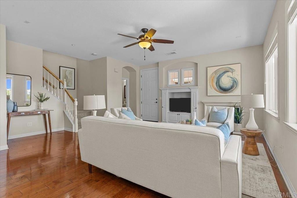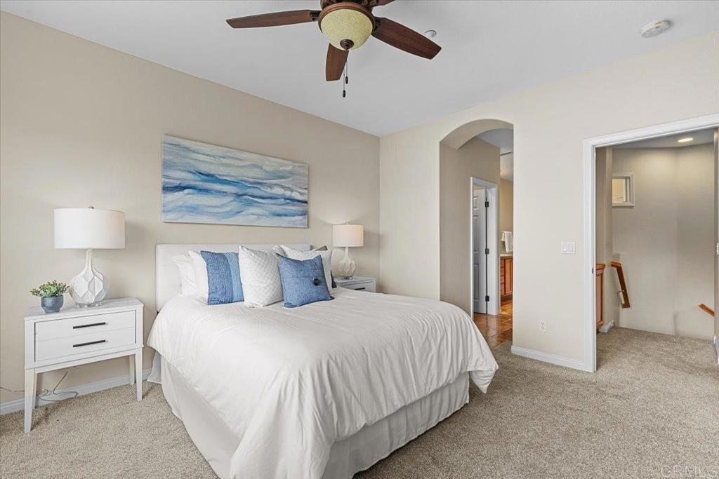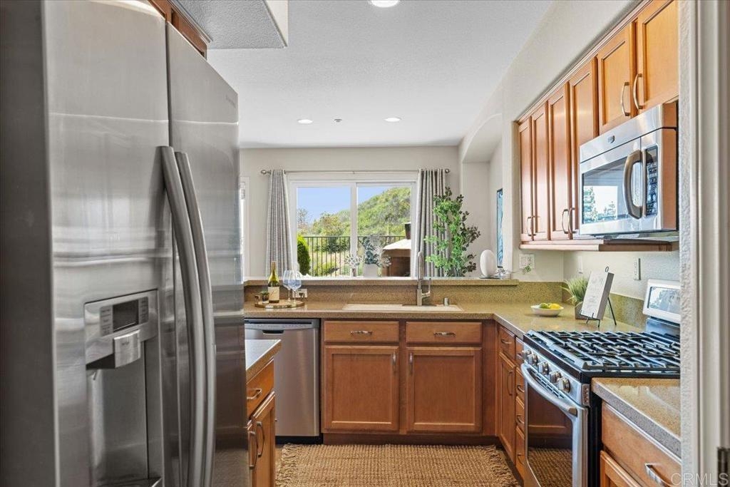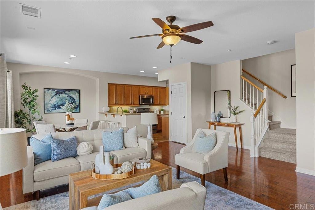 Highly Sought after end unit location overlooking the mountains & city lights in the WestRidge gated community of picturesque San Elijo Hills. This popular two-story townhome features 1,469 square feet with 3 bedrooms, 2.5 bathrooms, a spacious yard with built-in fireplace & endless opportunities for outdoor enjoyment. The open concept floor plan is flooded with natural light & includes a large living room with gas fireplace, hardwood flooring, tumbled travertine, indoor laundry, kitchen with stainless appliances, 2 car attached garage & a generous primary with en-suite bathroom & walk in closet. The gated community offers access to the resort style pool, spa & serene water feature. The development of San Elijo Hills exudes small town charm. Steps away from top-rated San Elijo schools, parks, playgrounds, ball fields, dog park, shops, restaurants, grocery store & access to 18 miles of maintained trails, perfect for outdoor adventures.