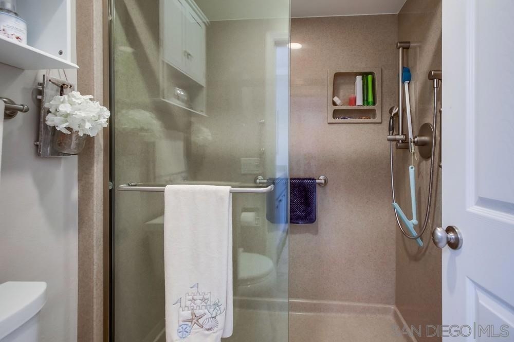 Come and live in the beautiful community of Lake San Marcos. This lovely 2bed/2bath home boosts views of the Double Peak Mountains and city lights at night. The morning sunshine will lift your spirits and brighten the start of your day over a cup of joe. Kitchen has Corian counter tops, Curio Cabinet, Plantation blinds in kitchen, custom shades in the living room and both bedrooms, cozy gas fireplace in the living room for those crisp winter nights. Moisture barrier carpeting in both bedrooms, dining and living room. Porcelain tile in entry, hall and bathrooms. All room entertainment intercom system. Crown molding throughout. Epoxy floors in garage and custom cabinets. Low maintenance backyard. Walking distance to the lake, pickle ball, golf courses, boating and fishing at the lake and top notch restaurants. Close to all