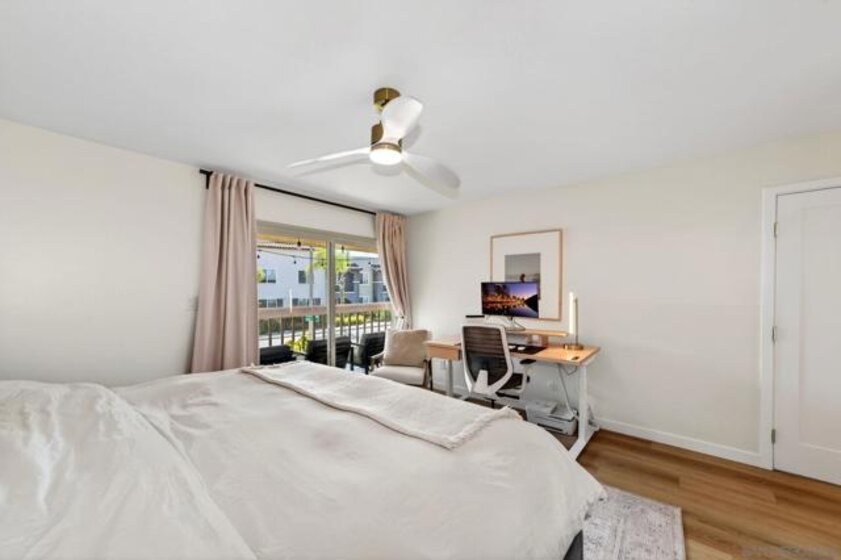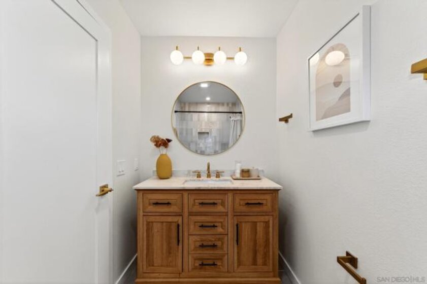 Fully renovated upper-level end unit in the highly desirable Lake San Marcos community. This 2-bedroom, 2-bath residence offers approximately 1,200 sq ft of thoughtfully redesigned living space with abundant natural light and balcony views. The completely remodeled kitchen features quartz countertops, shaker cabinetry, an oversized sink, and GE stainless steel appliances. Upgrades throughout include new flooring, updated bathrooms, modern cabinetry, and dual-pane windows. The functional layout offers dual primary suites with a built in closet organizer, ideal for privacy, guests, or flexible living arrangements. Enjoy indoor-outdoor living with a private balcony and close proximity to golf, dining, and local amenities. Conveniently located within walking distance to The Links at Lakehouse golf course and nearby restaurants. Located in the highly desirable top rated San Marcos school district.